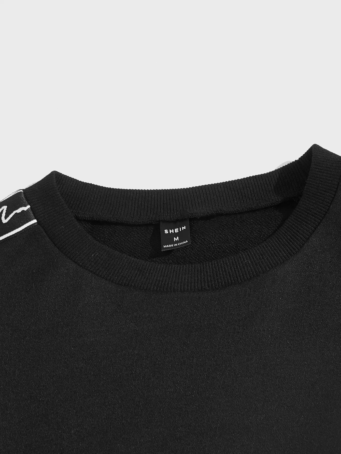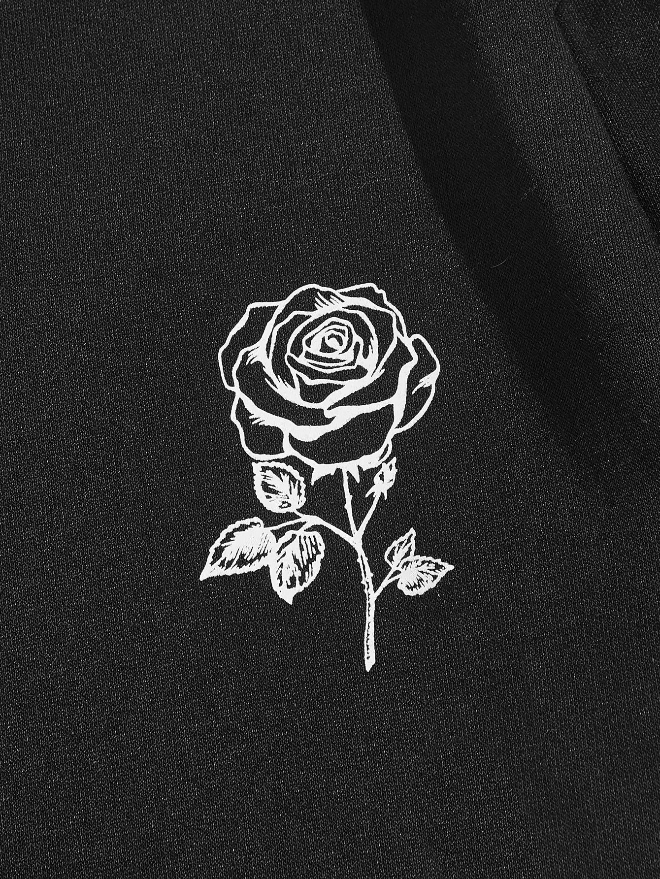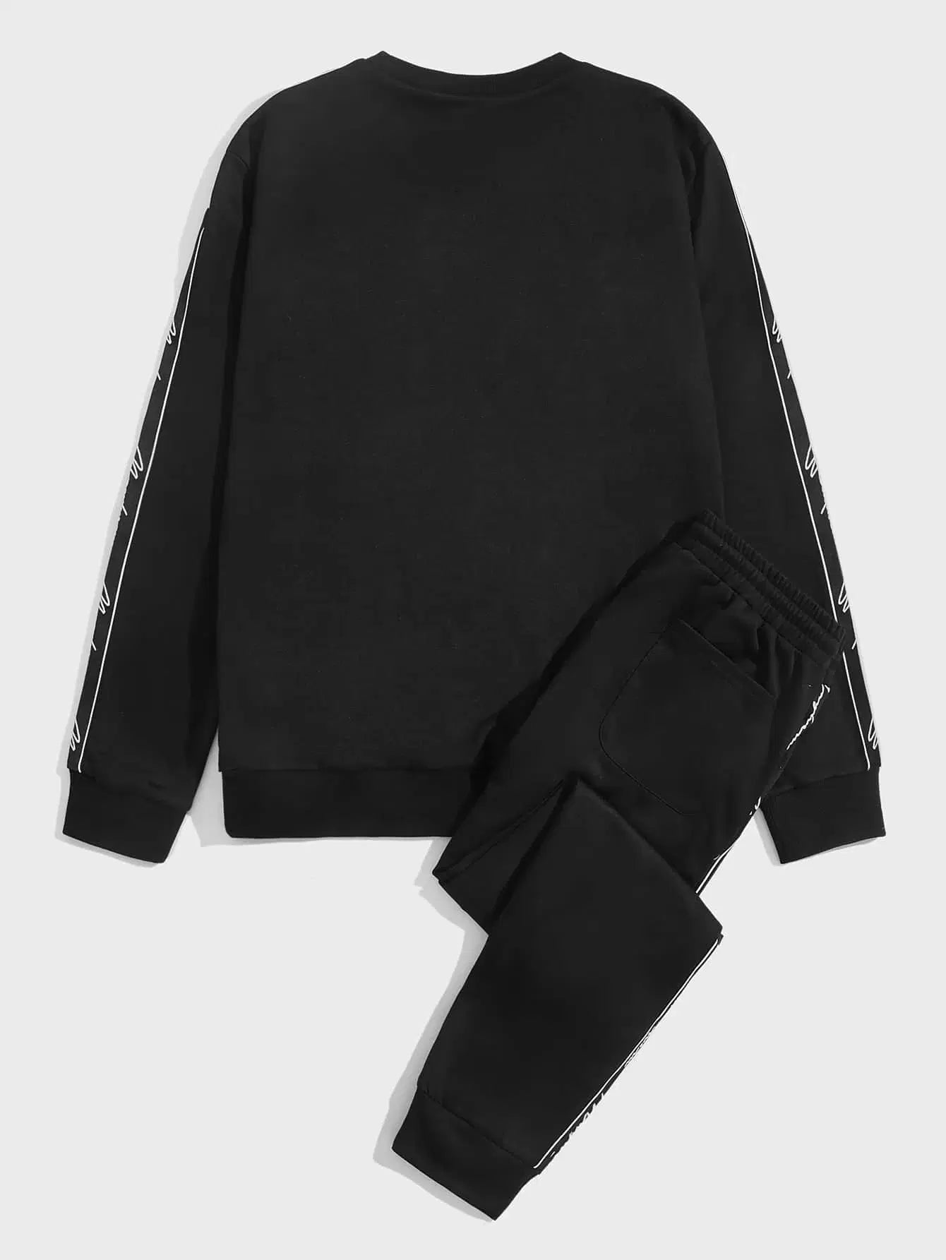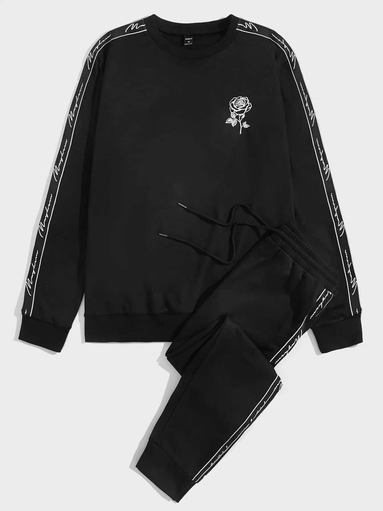 طقم سويت شيرت وبنطال رياضي للرجال مزين برسومات الأزهار والحروف