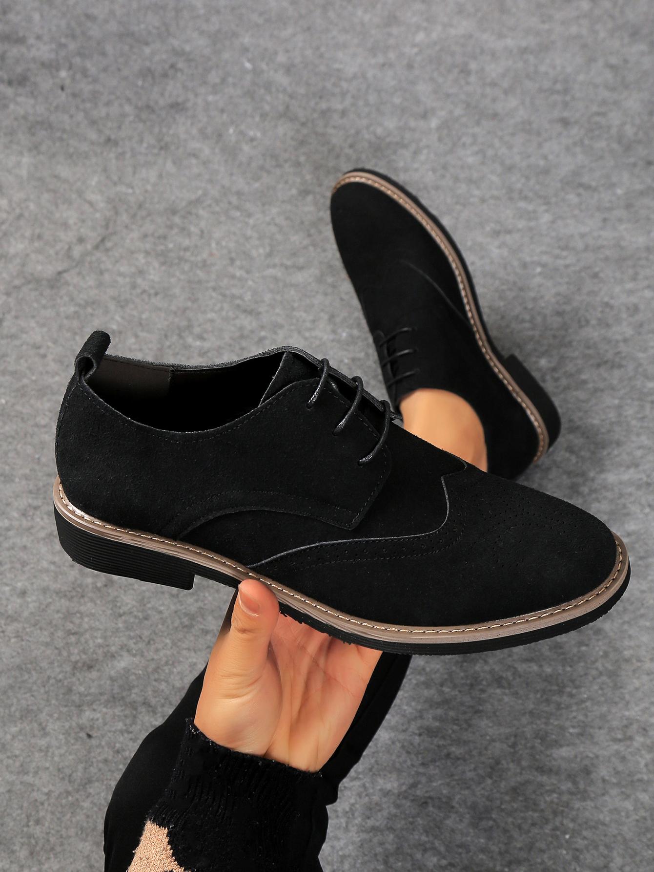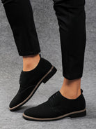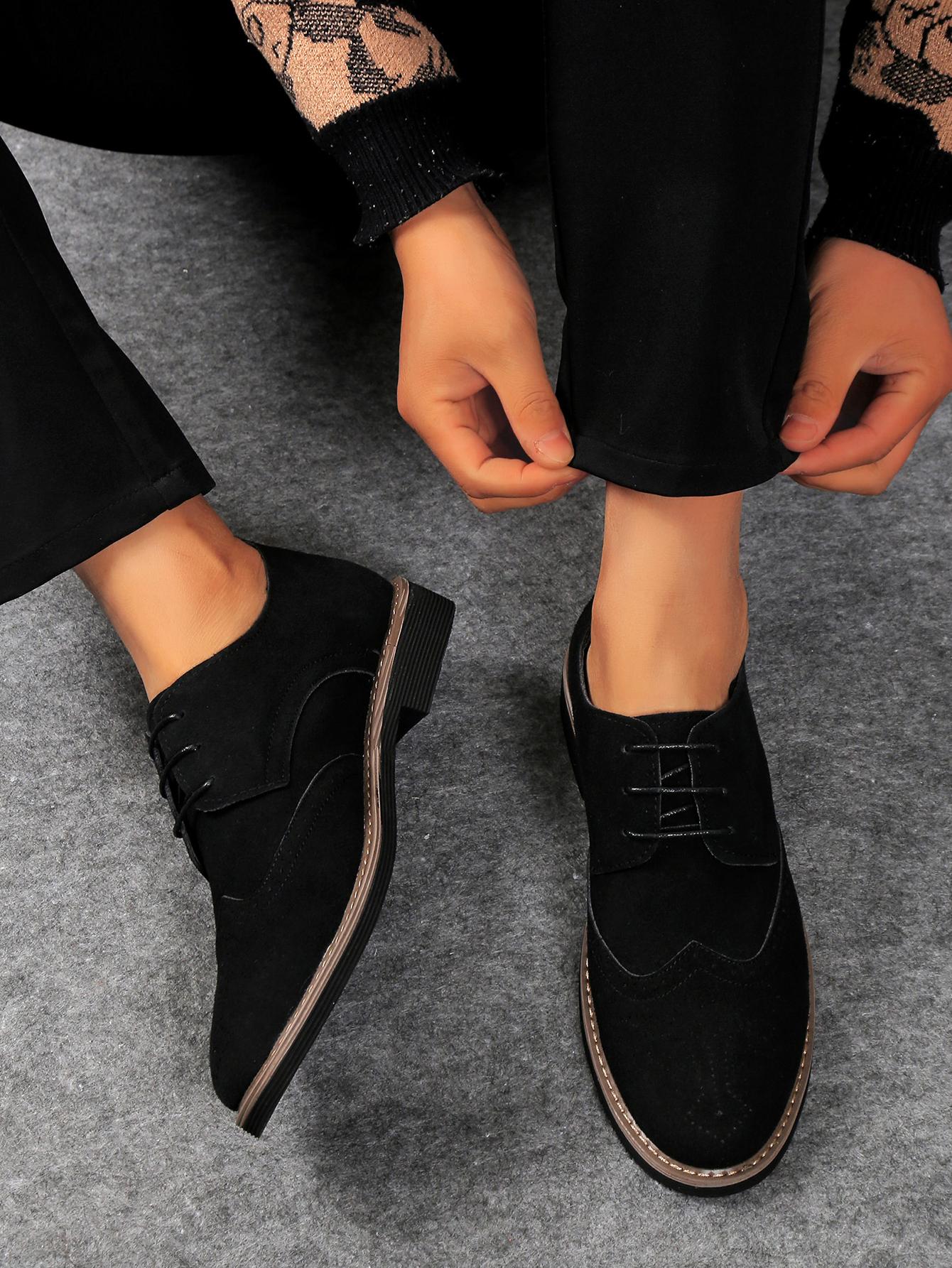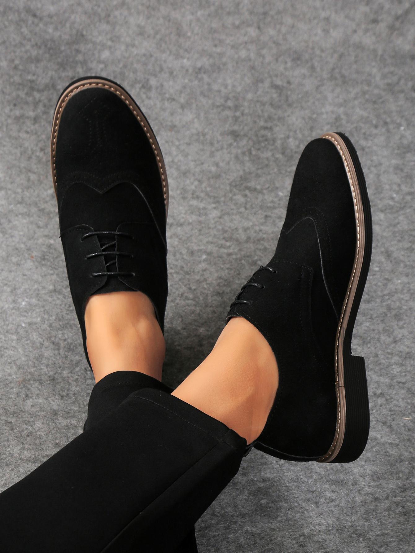 men Men's Lightweight Matte Block Carved Round Toe Lace-Up Low-Heel Leather Shoes For Casual