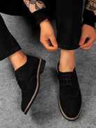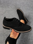 حذاء رجالي خفيف الوزن من الجلد غير اللامع ذو مقدمة مستديرة وكعب منخفض ورباط للارتداء الكاجوال