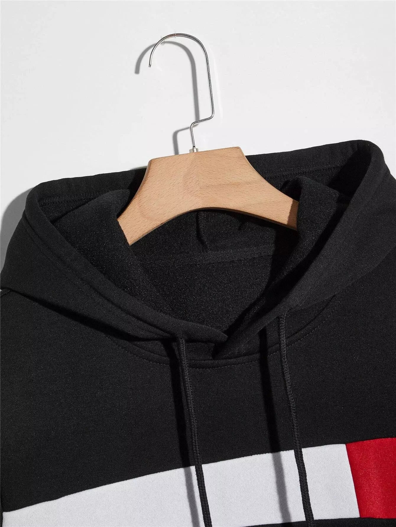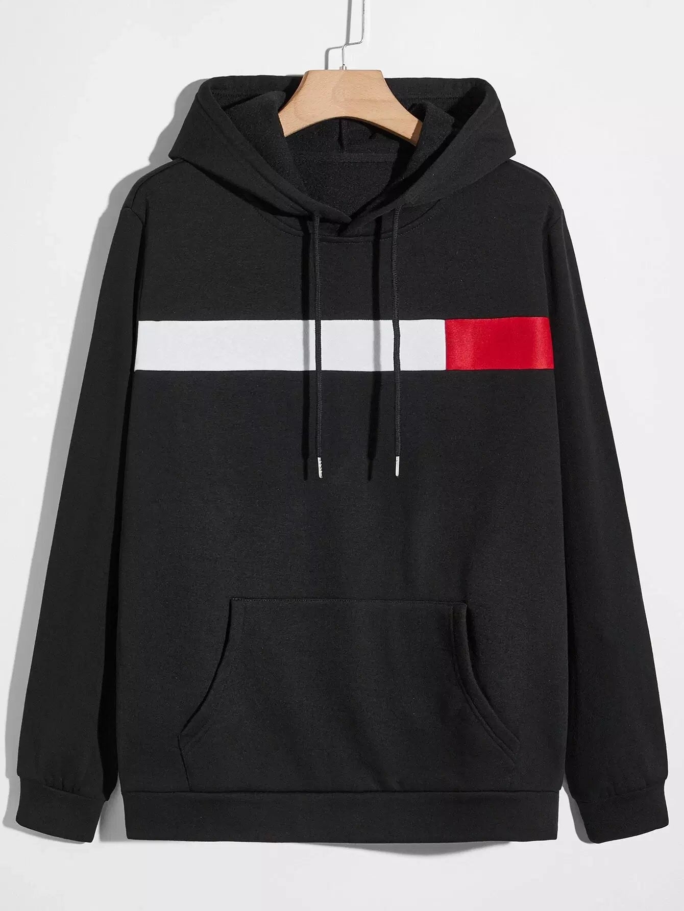كنزة بقلنسوة بجيب كانجارو ملونة للرجال