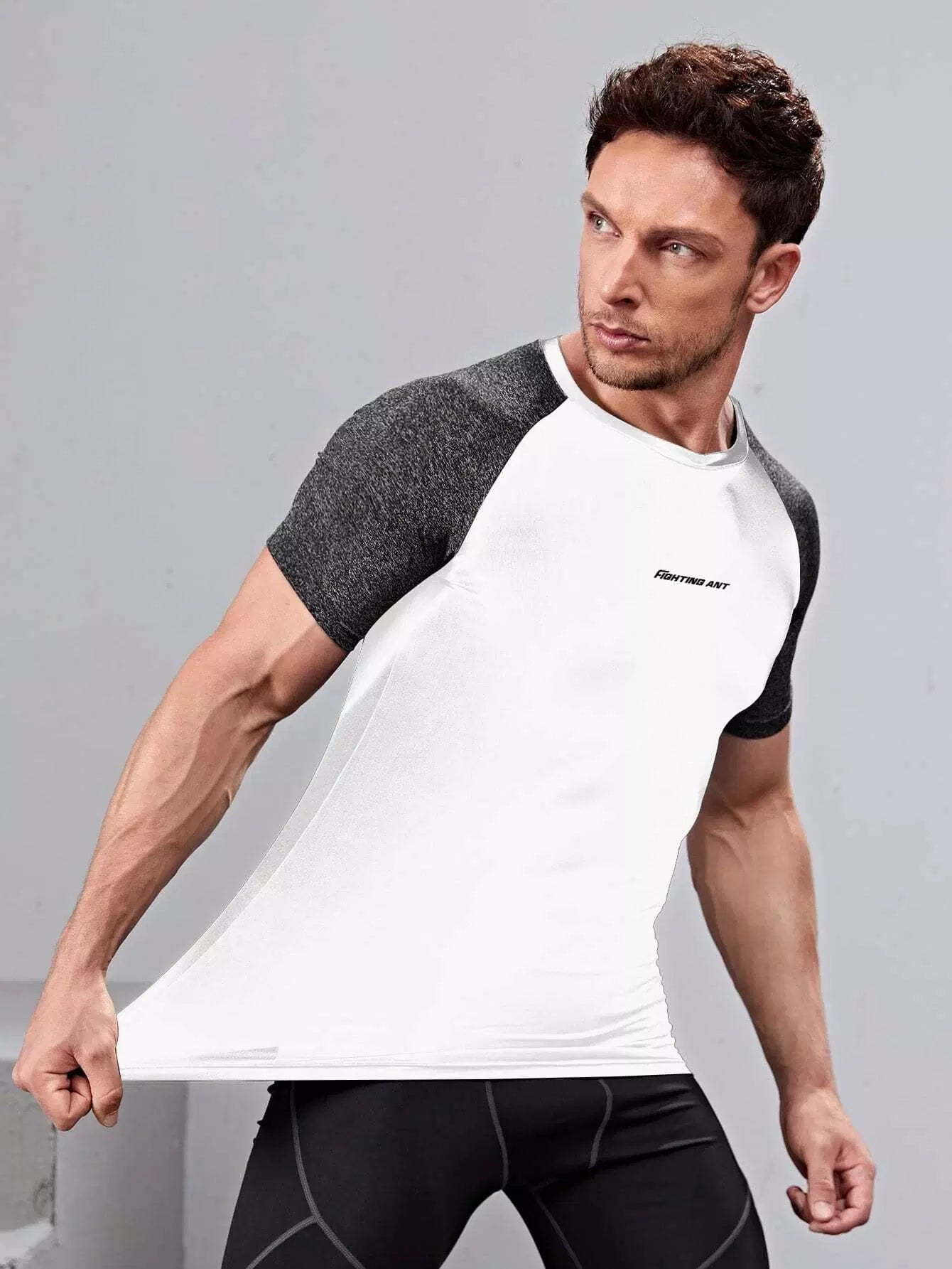 تي شيرت رياضي بأكمام راجلان برسومات رجالية