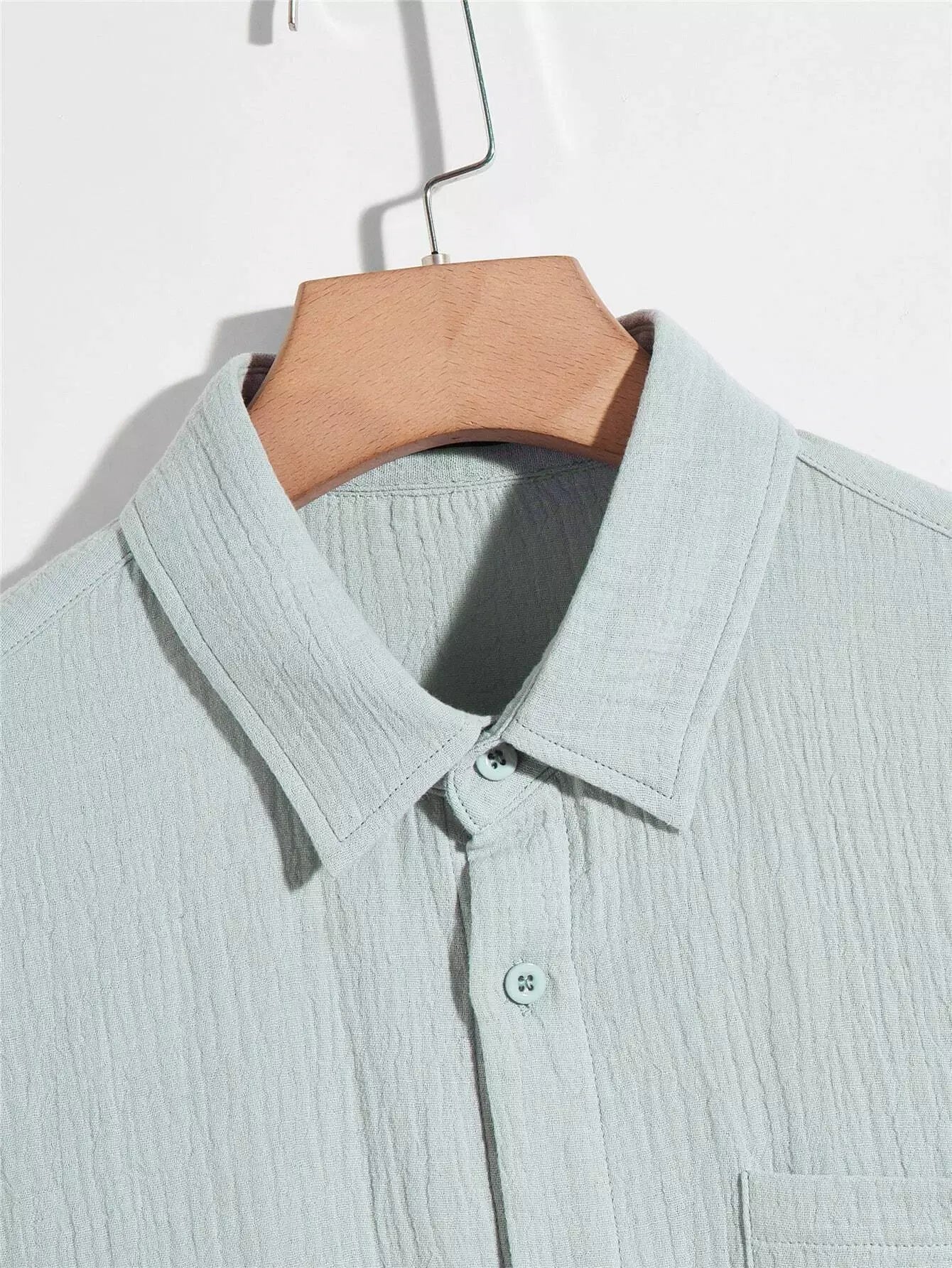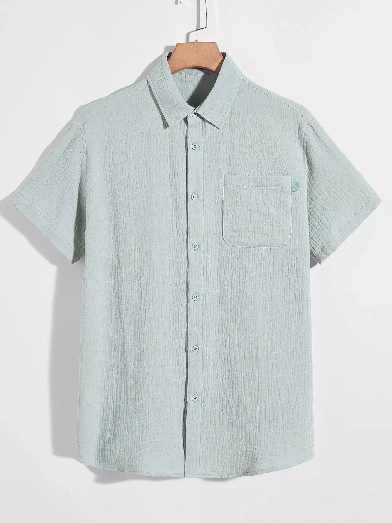 قميص رجالي مرقع الجيب ذو أزرار مرقعة