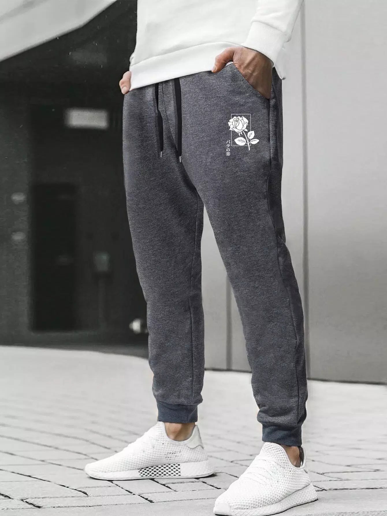 بنطلون رياضي بخصر برباط جرافيك بحروف يابانية للرجال