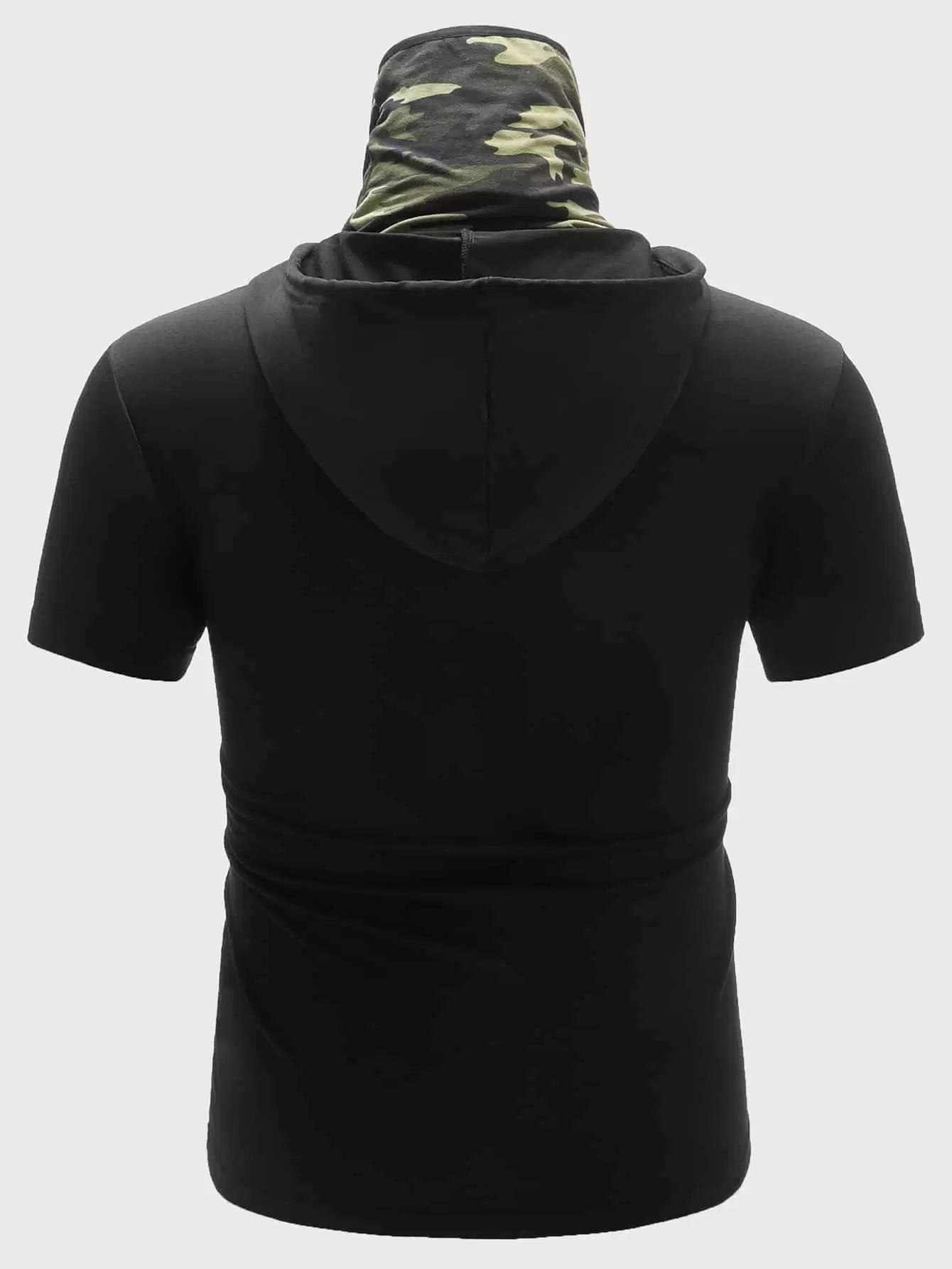 تي شيرت رجالي بأكمام قصيرة بقلنسوة مع واقي رقبة مموه