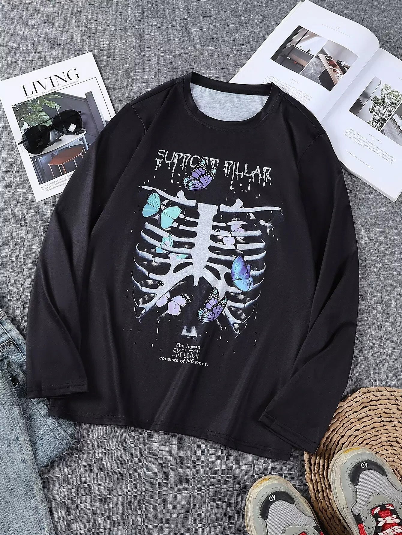 الرجال - تي شيرت برسوم هيكل عظمي وأحرف للرجال