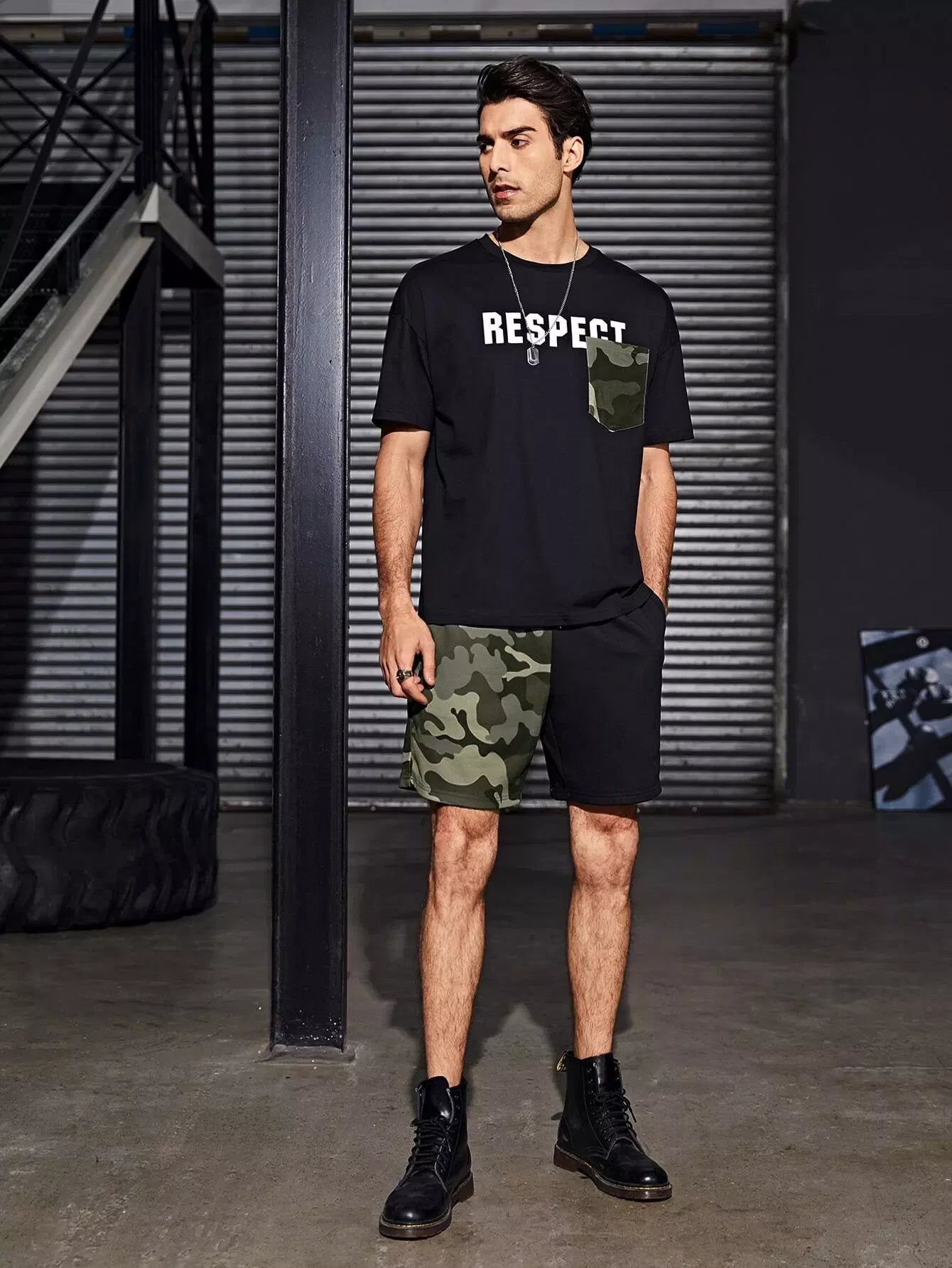 شورت رياضي رجالي بطبعة كامو مجزّع للرجال