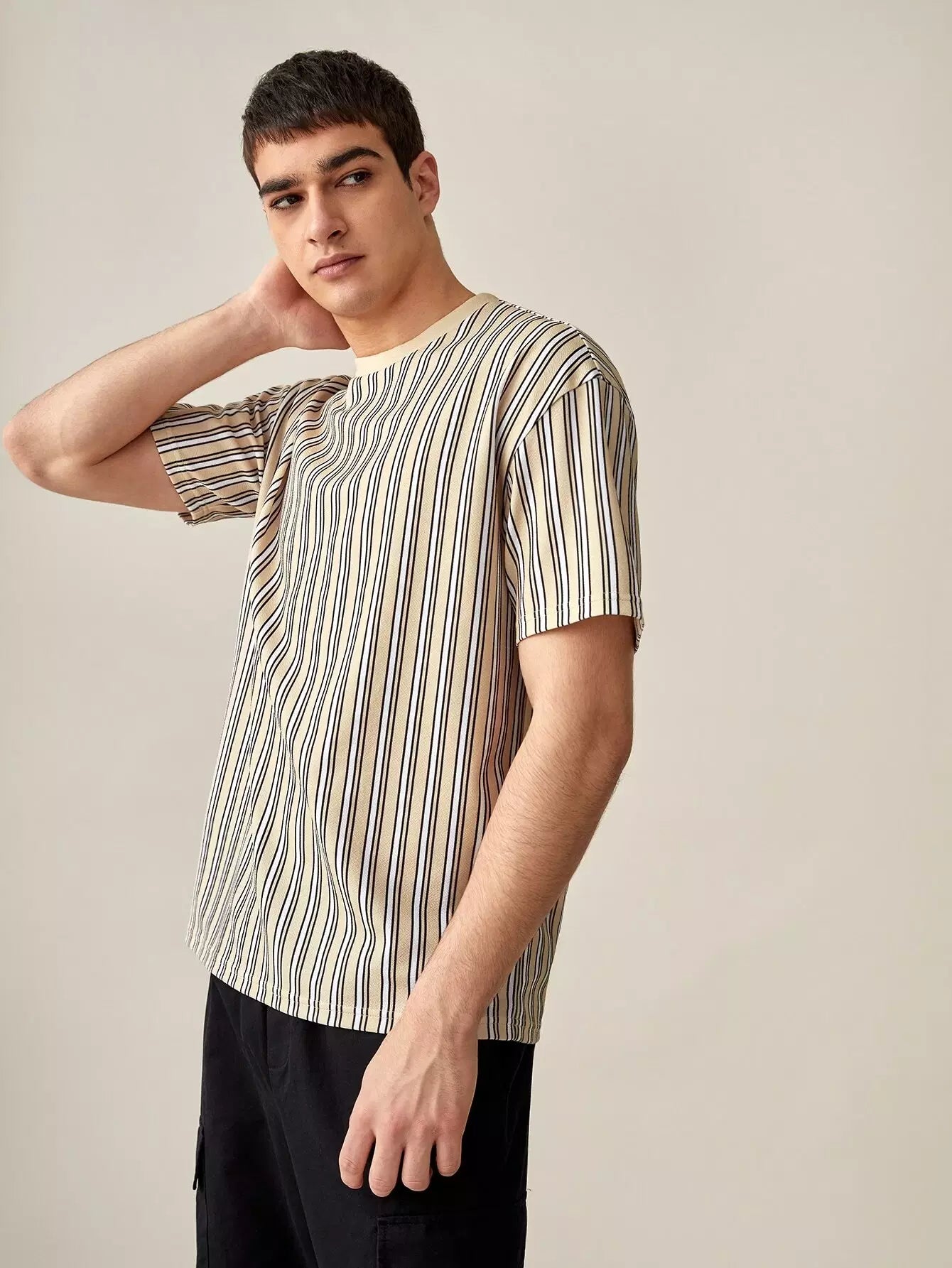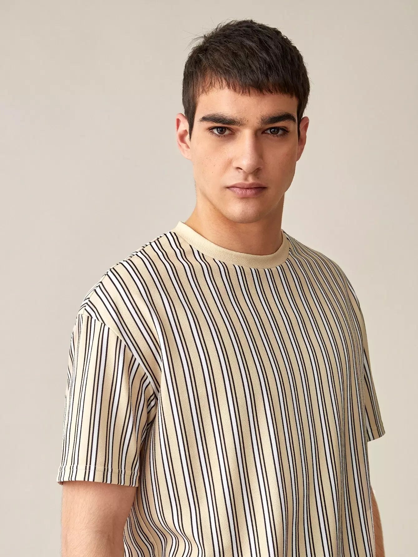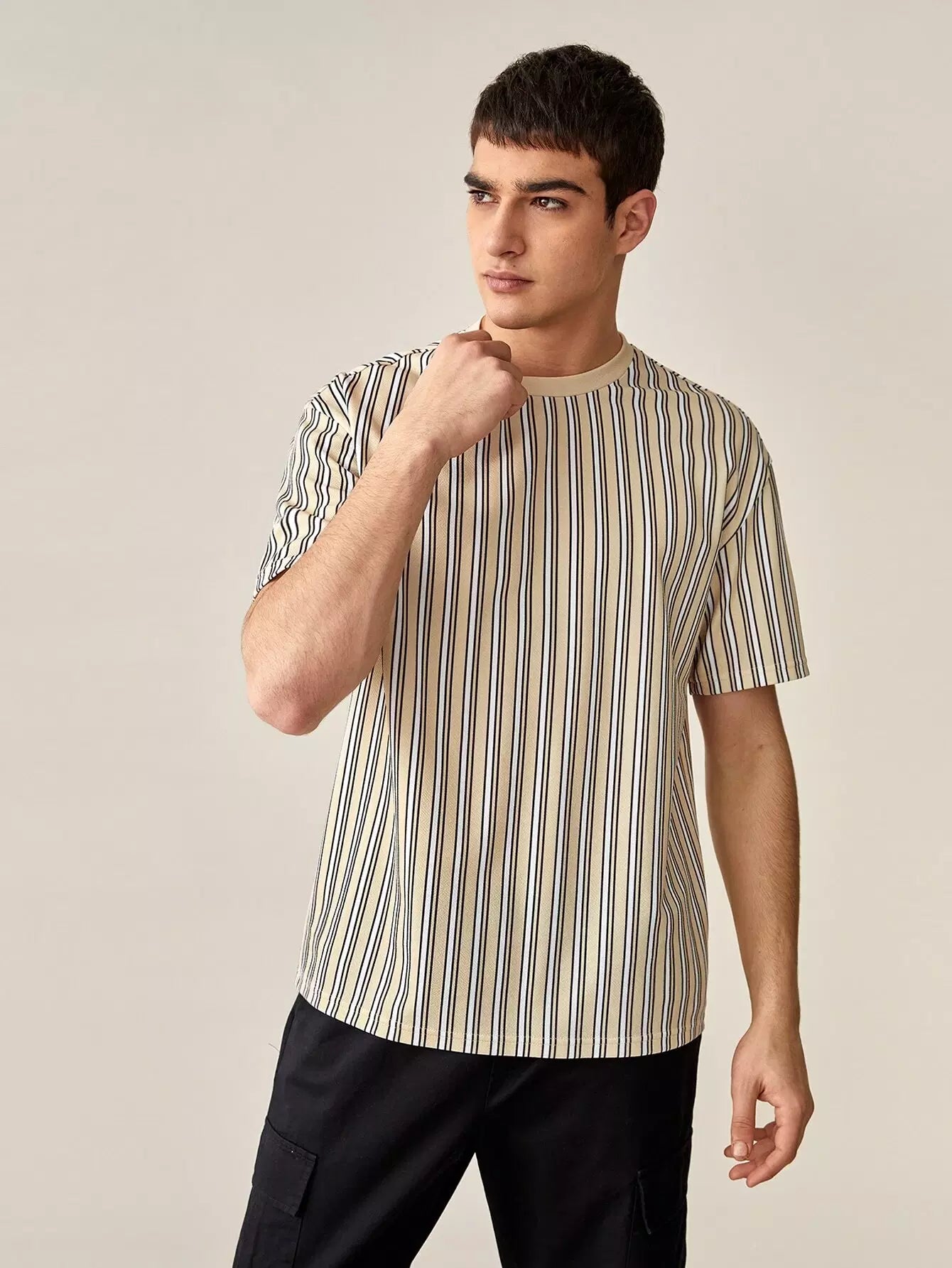 تي شيرت رجالي مخطط بأكمام منسدلة