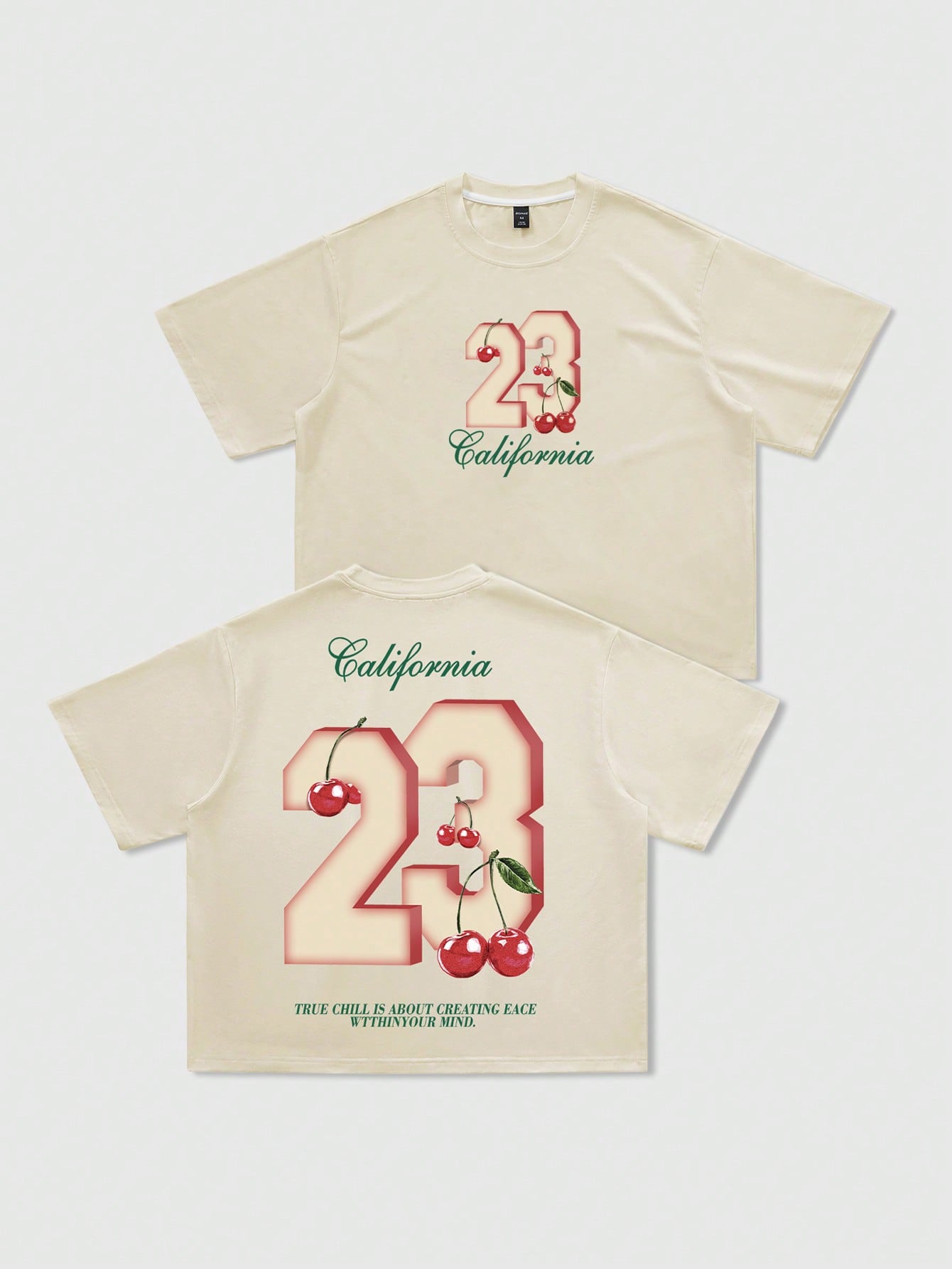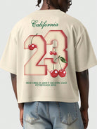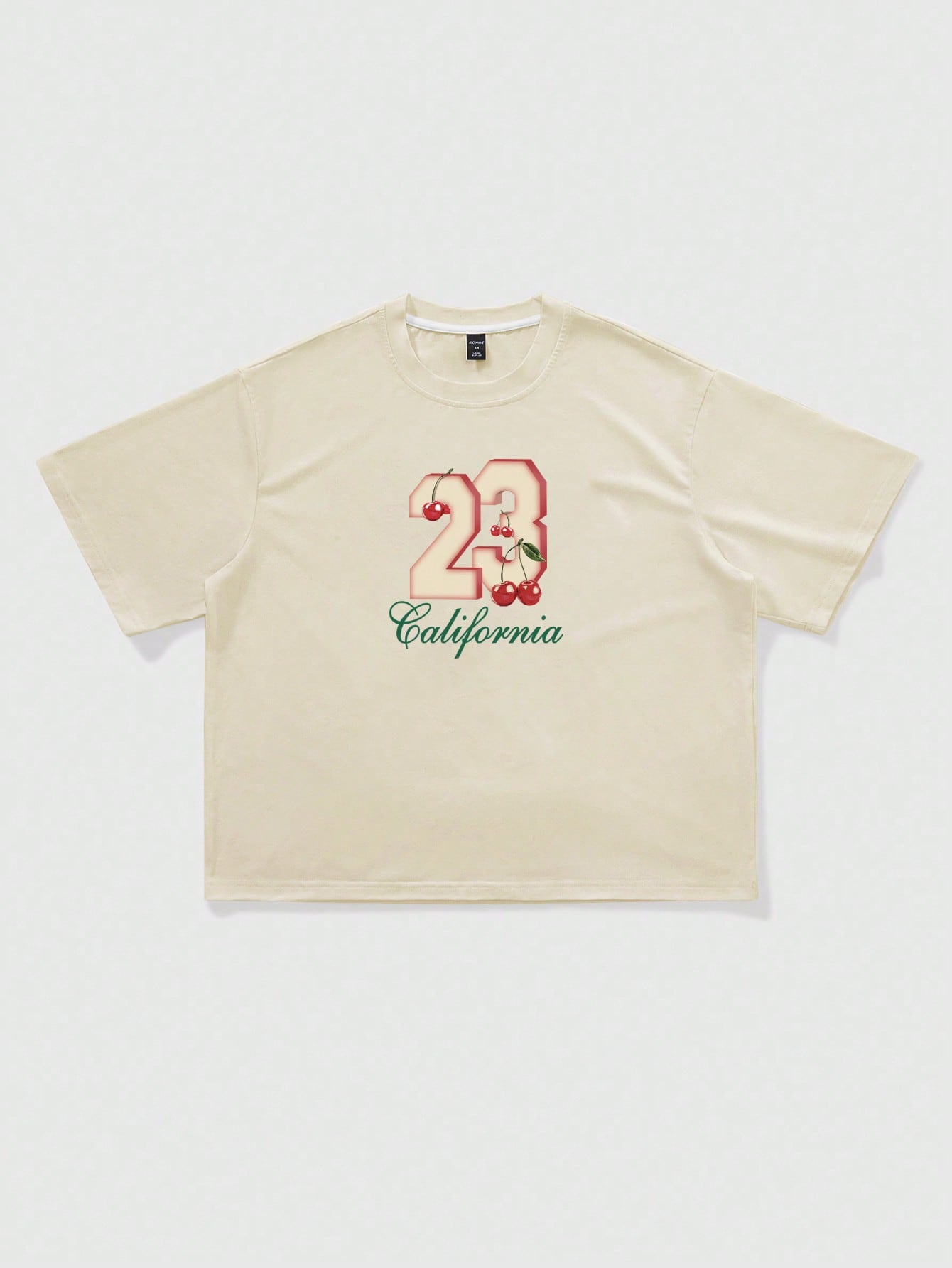 ROMWE MEN Prep Men's Y2K Streetwear US City Name Slogan & Cherry Fruit Print Short Sleeve T-Shirt, Suitable