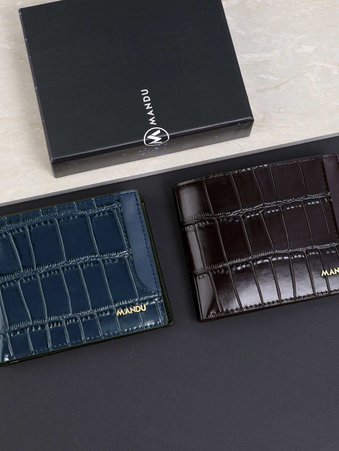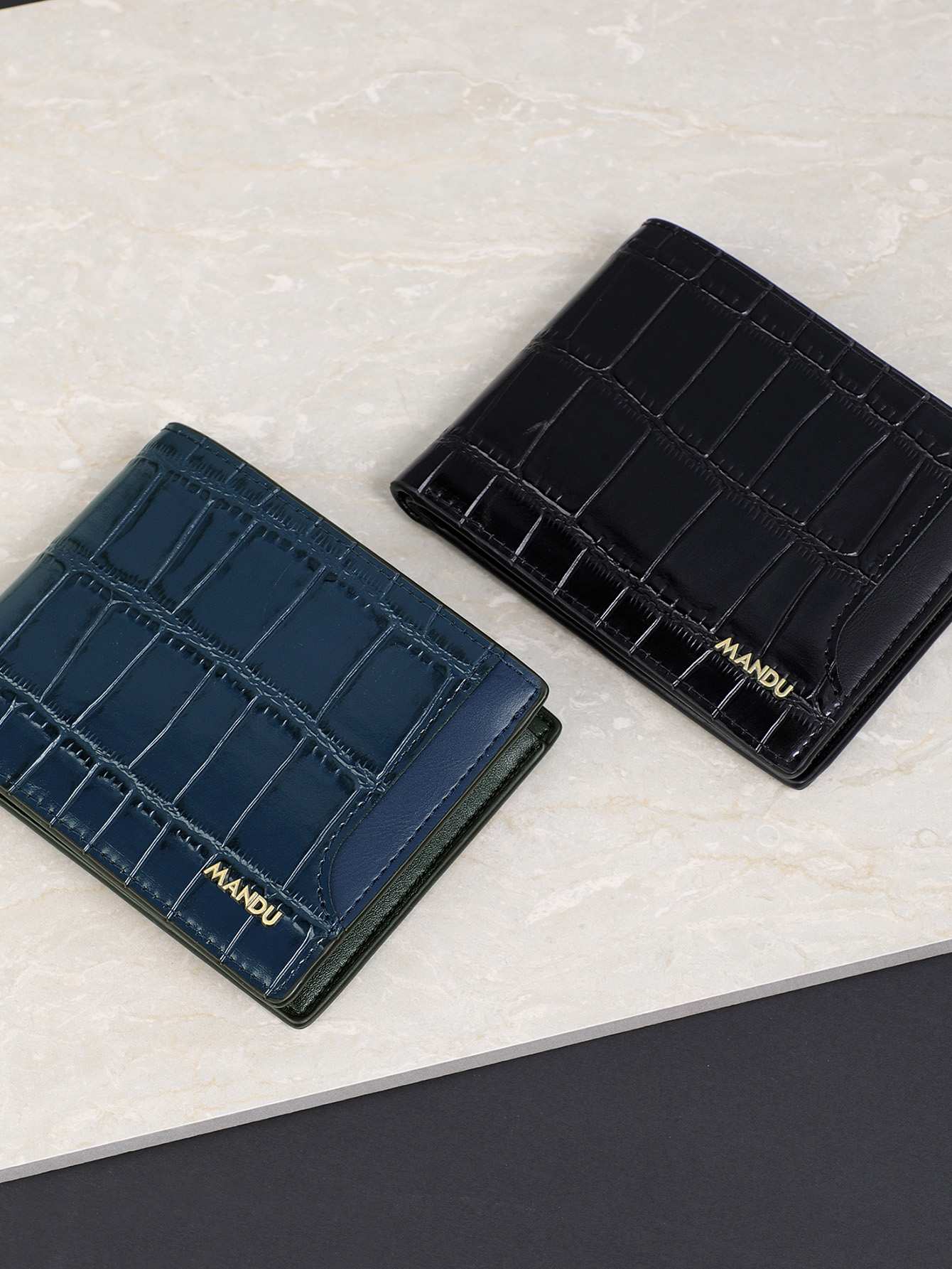 محفظة رجالية من الجلد المنقوش بنقشة جلد التمساح - أسود