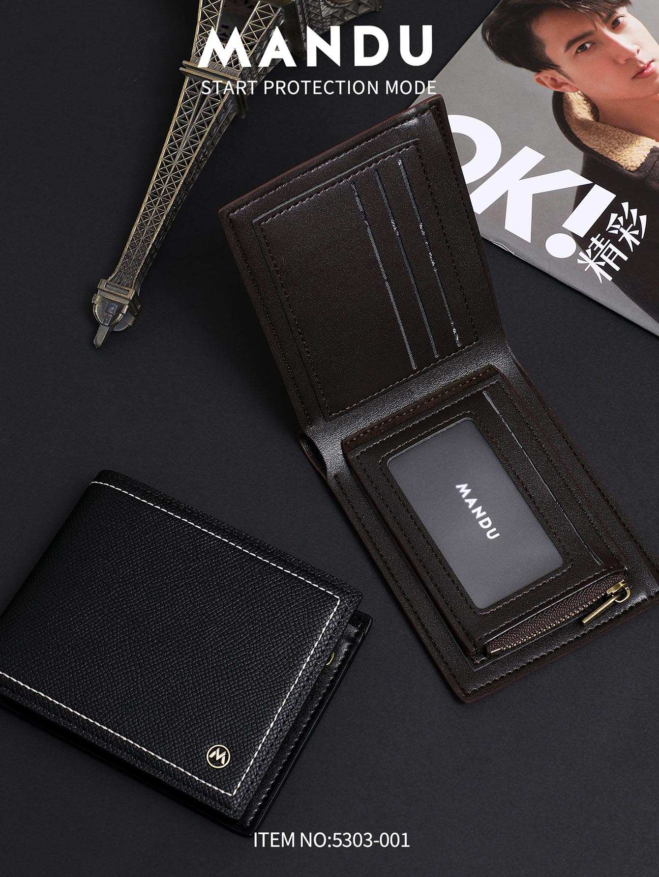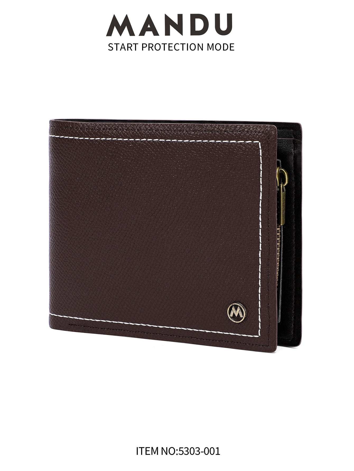 الرجال - محفظة رجالية بتأثير جلدي وخياطة بيضاء - بني قهوة