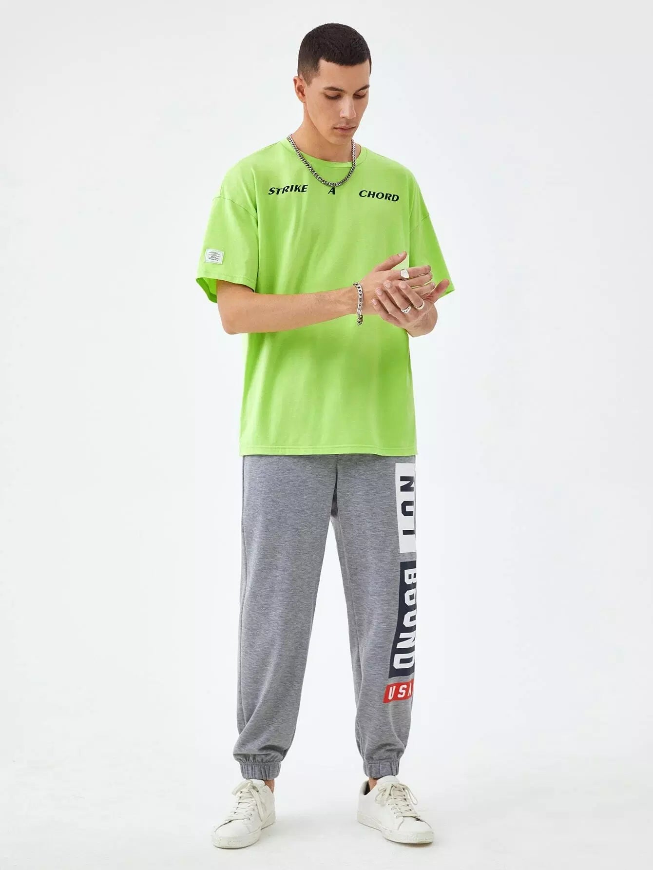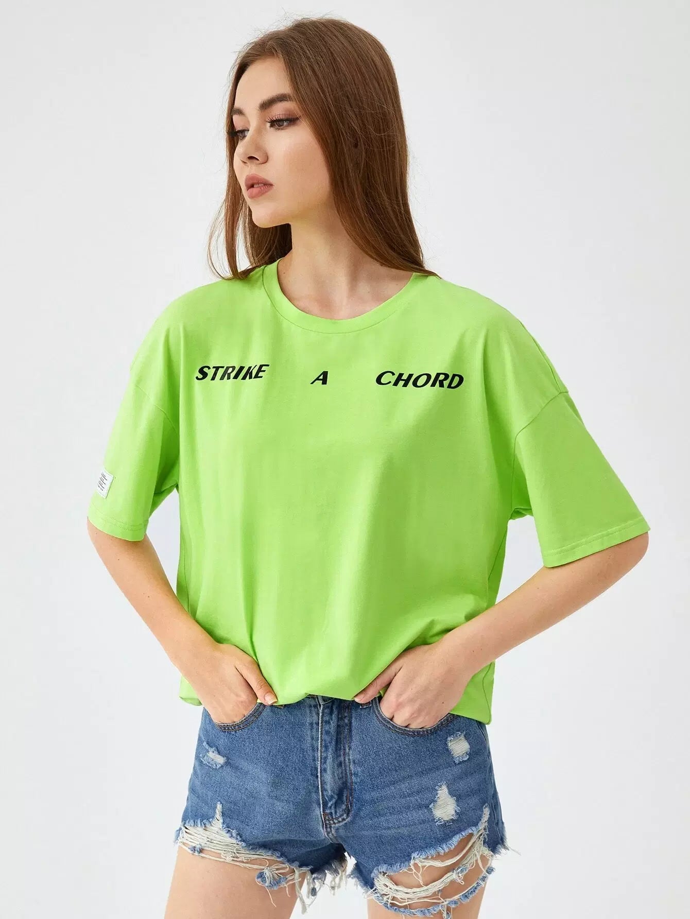 1 قطعة تي شيرت منسدل الكتف بشعار جرافيك منسدل