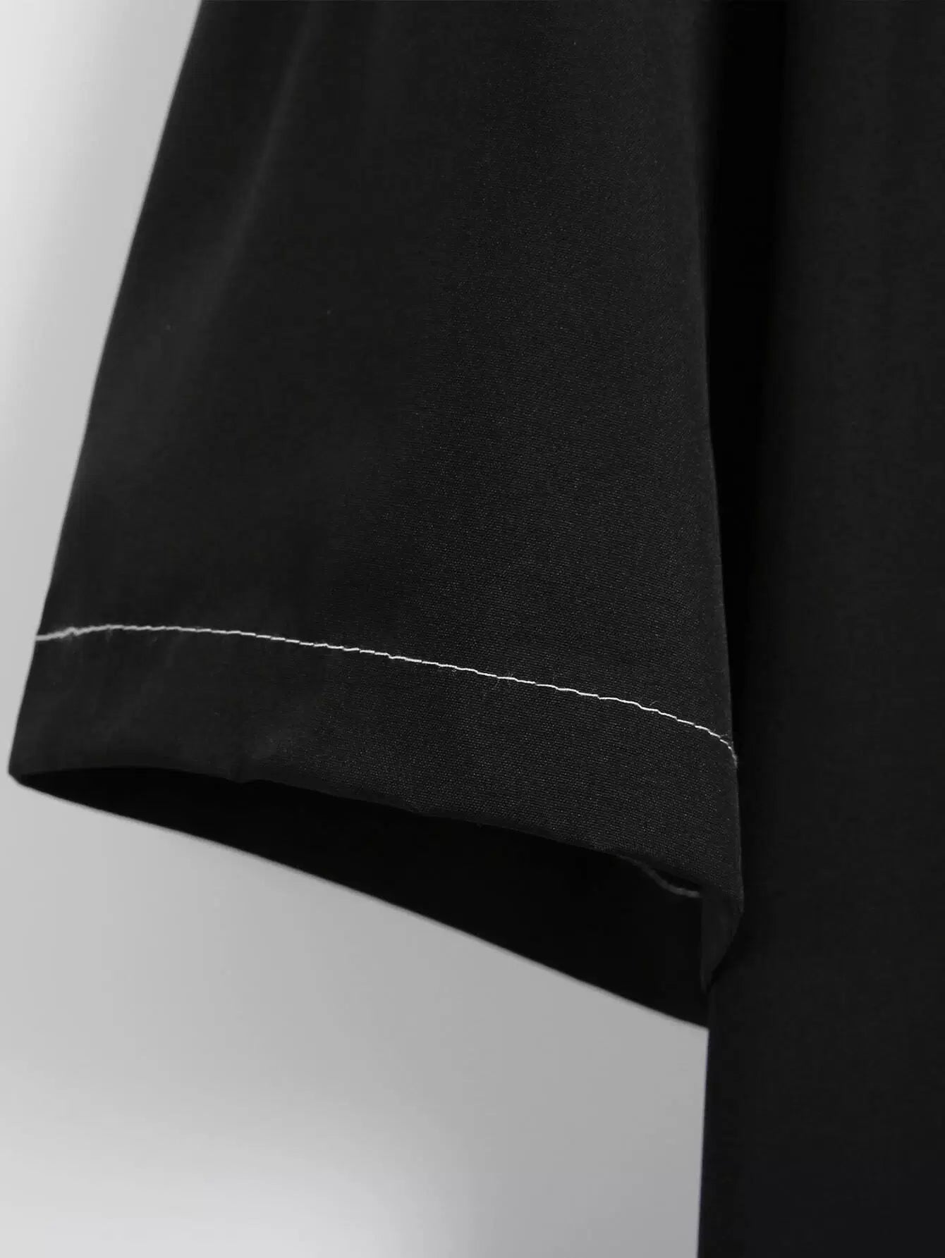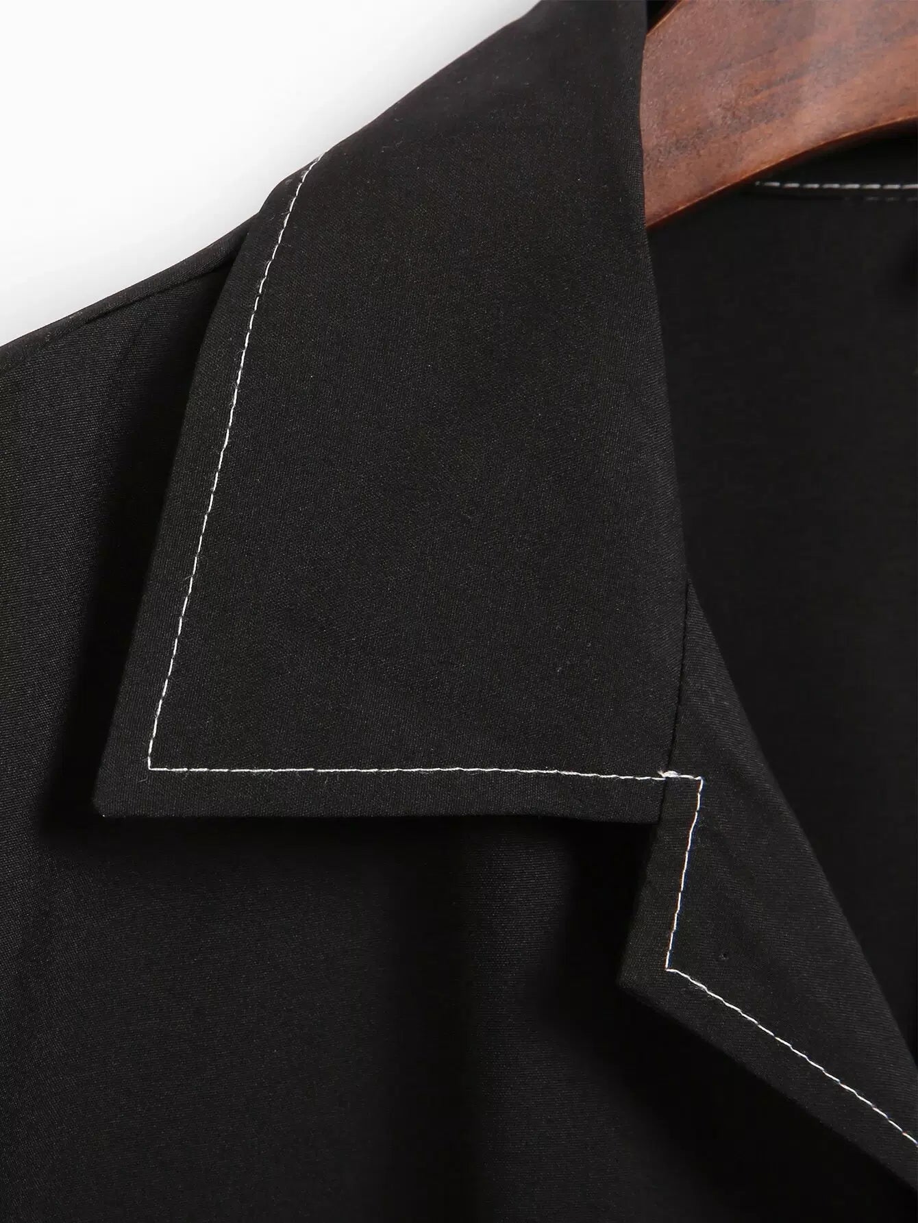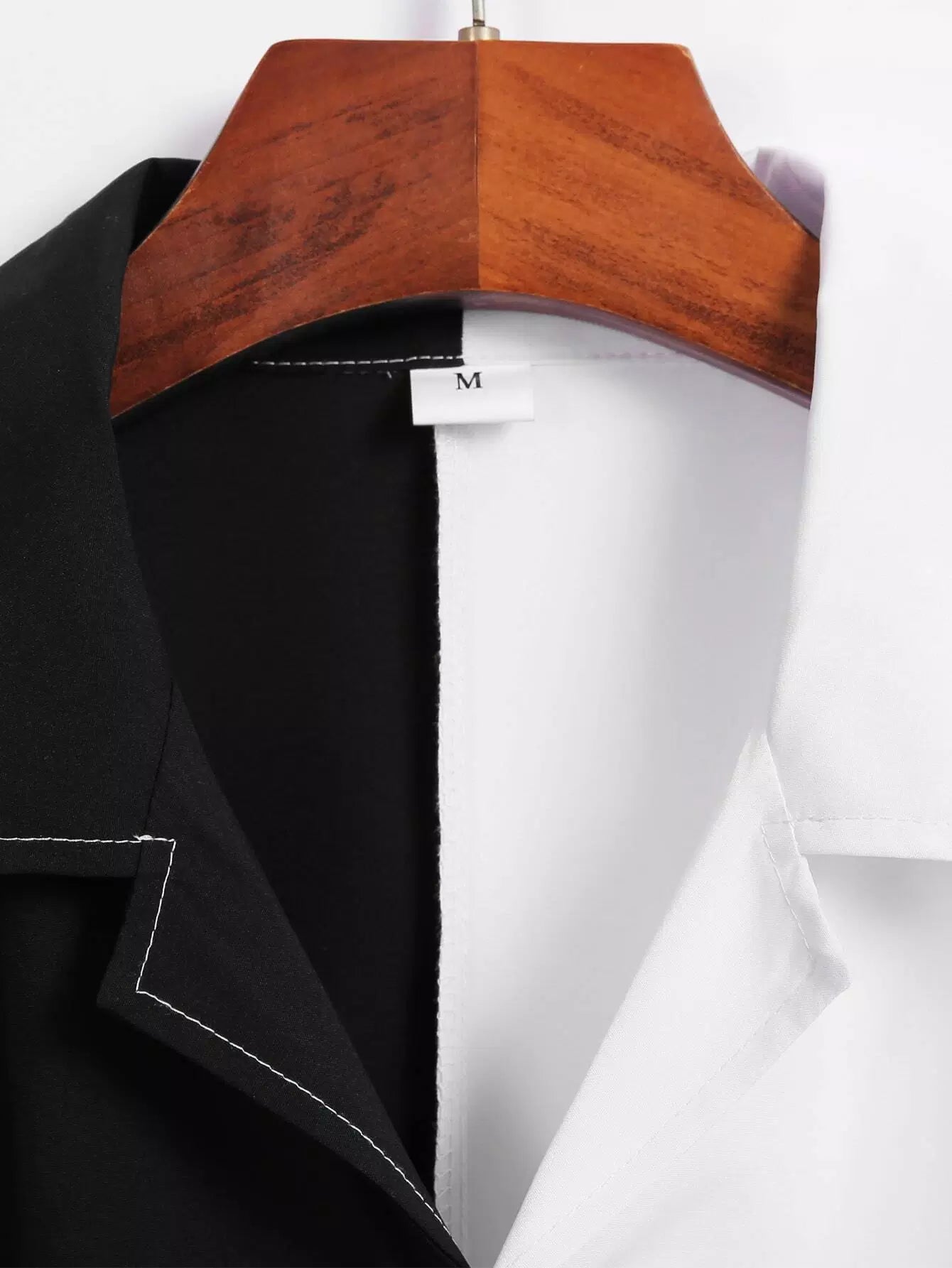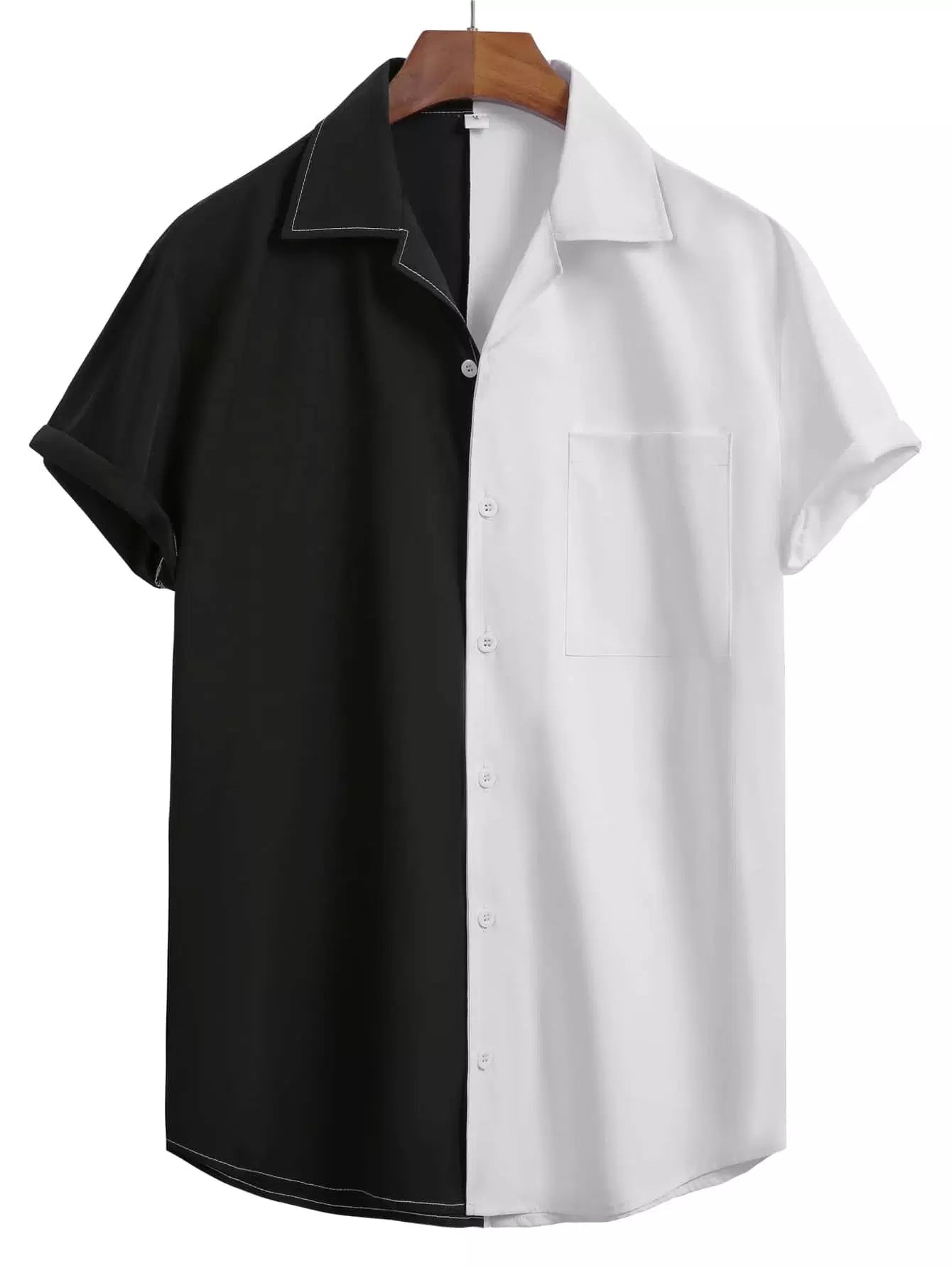 قميص رجالي ثنائي اللون مع أزرار أمامية وجيوب أمامية
