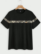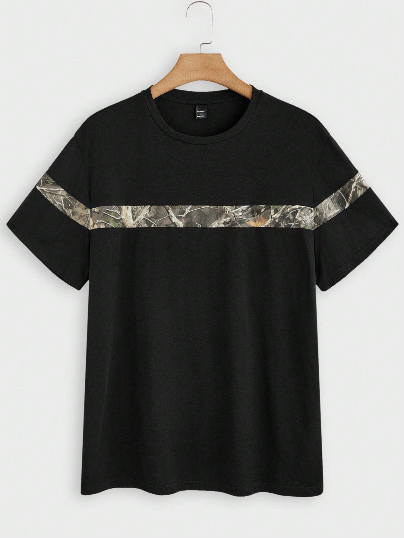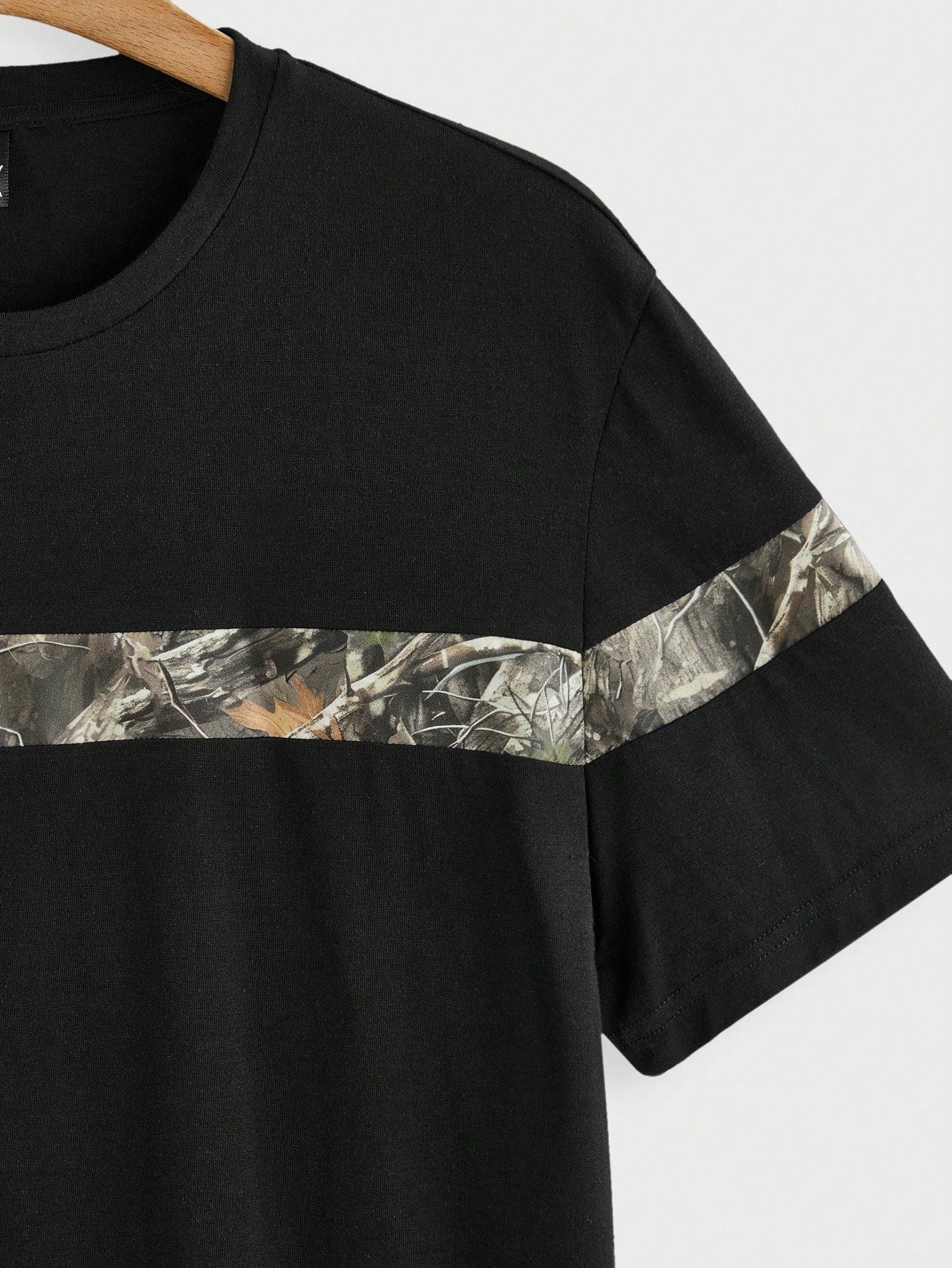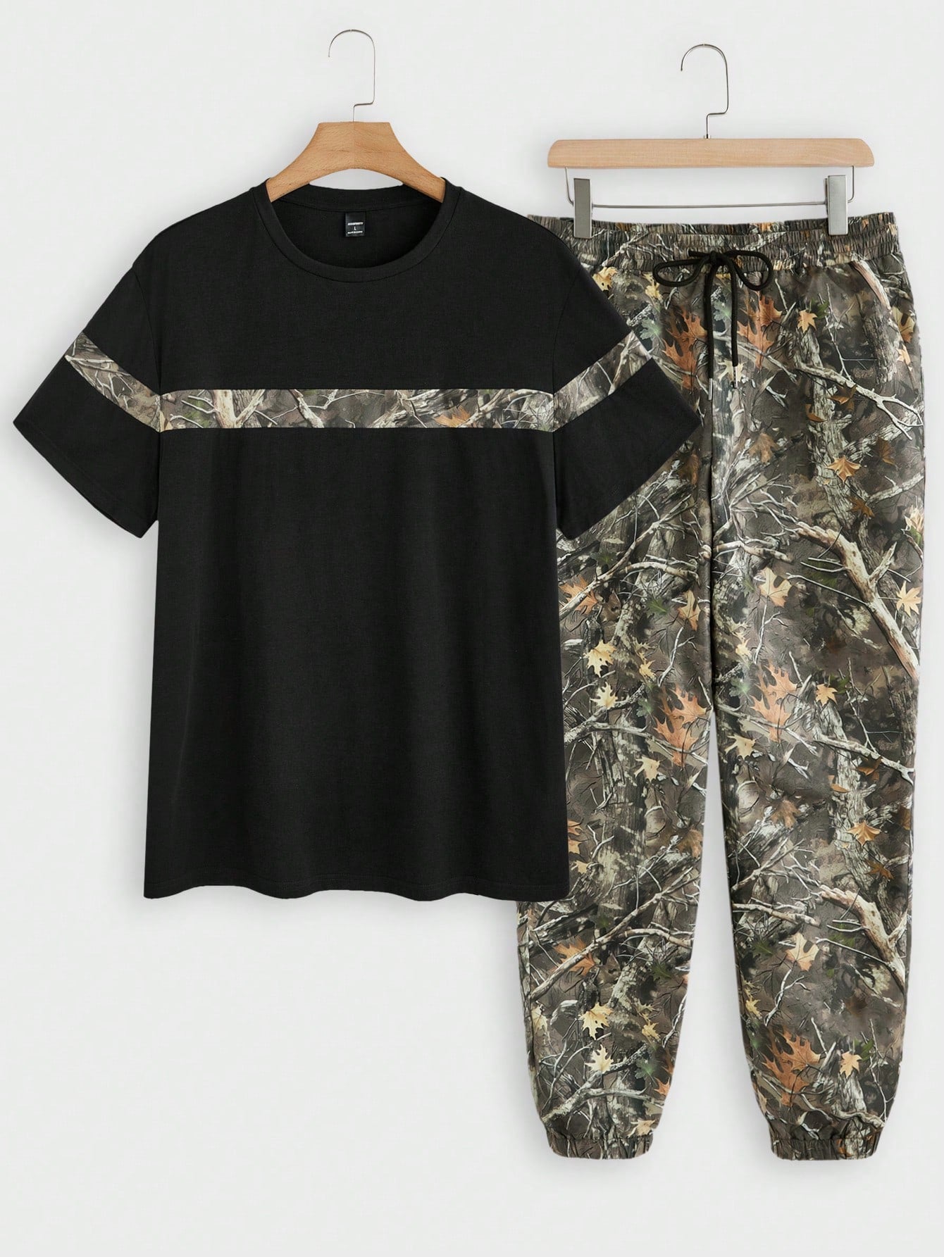 Manfinity VCAY 2pcs Men's Knitted Casual Loose Splicing Short Sleeve T-Shirt And Elastic Waist Straight