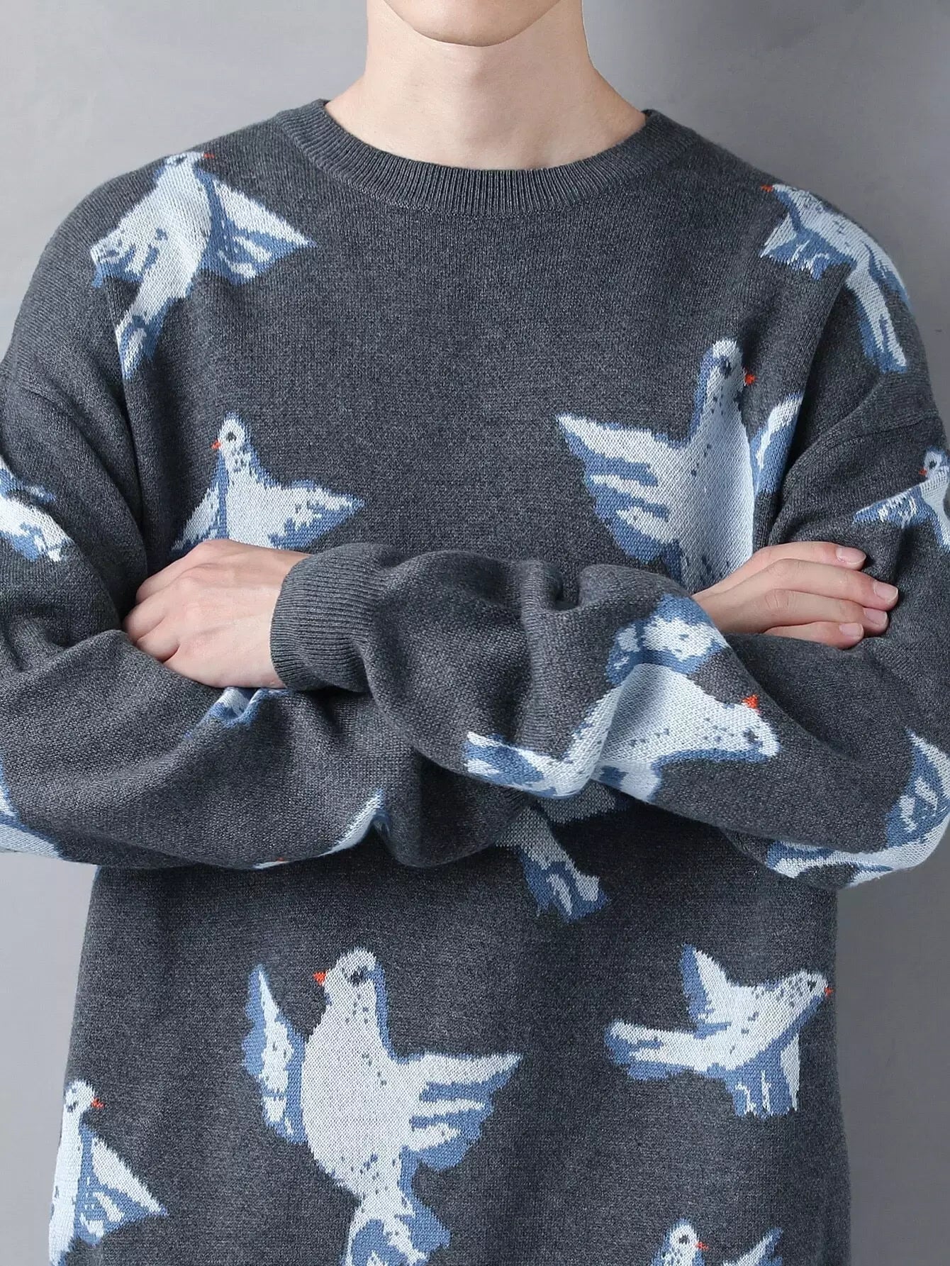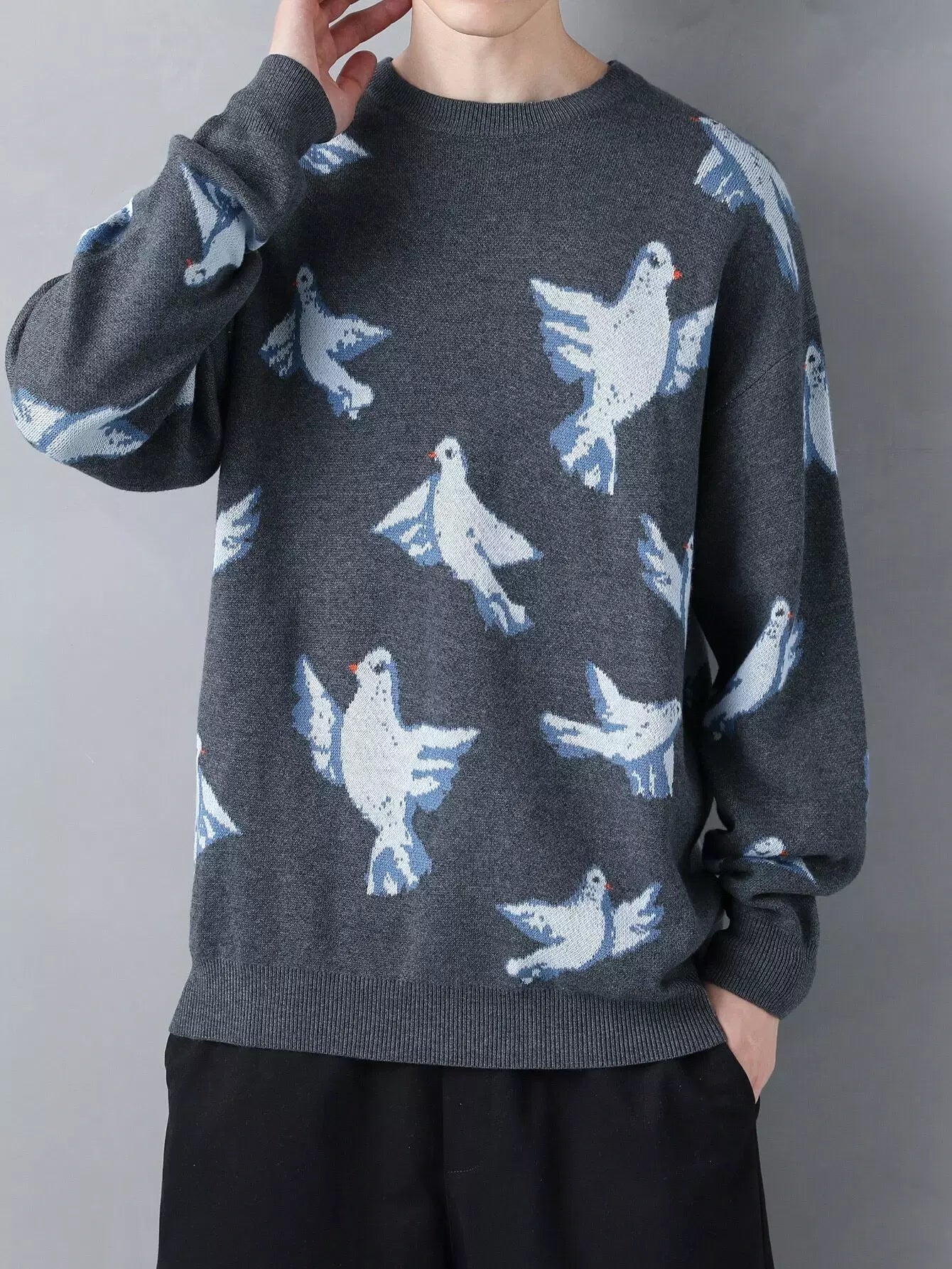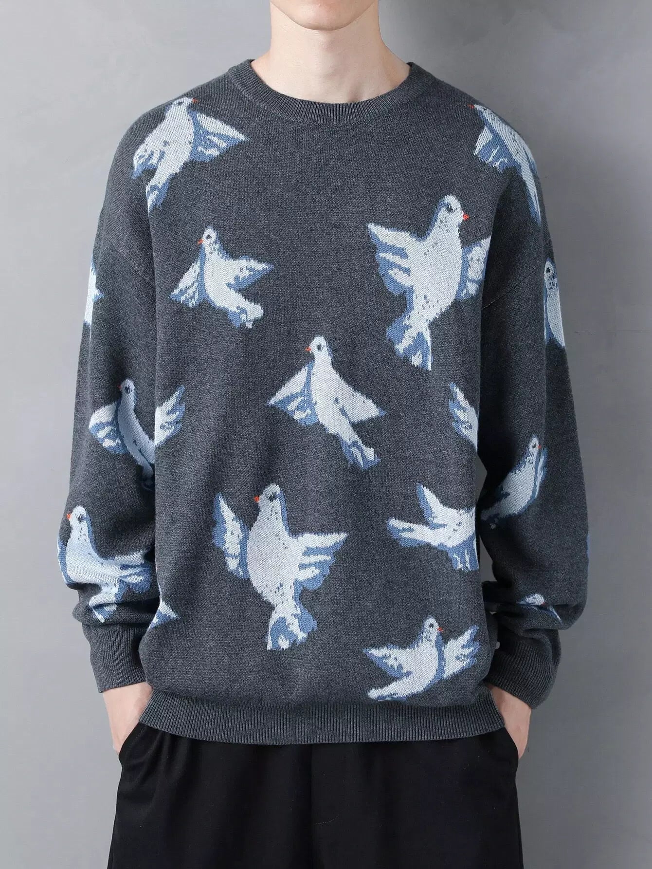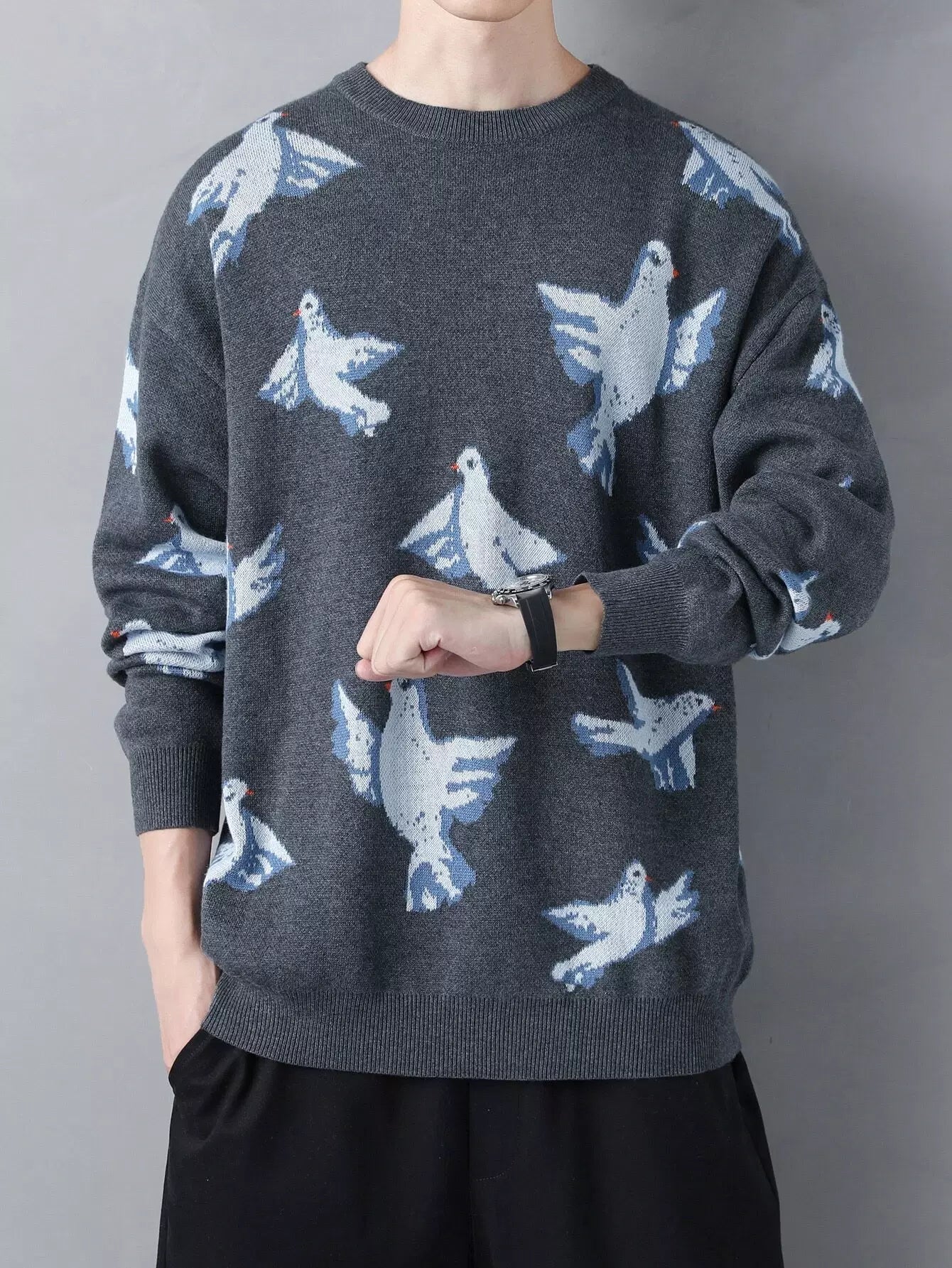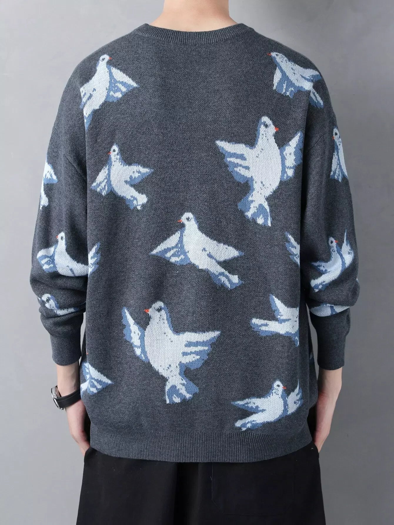 سترة رجالية منسدلة الكتف بنقشة طائر للرجال