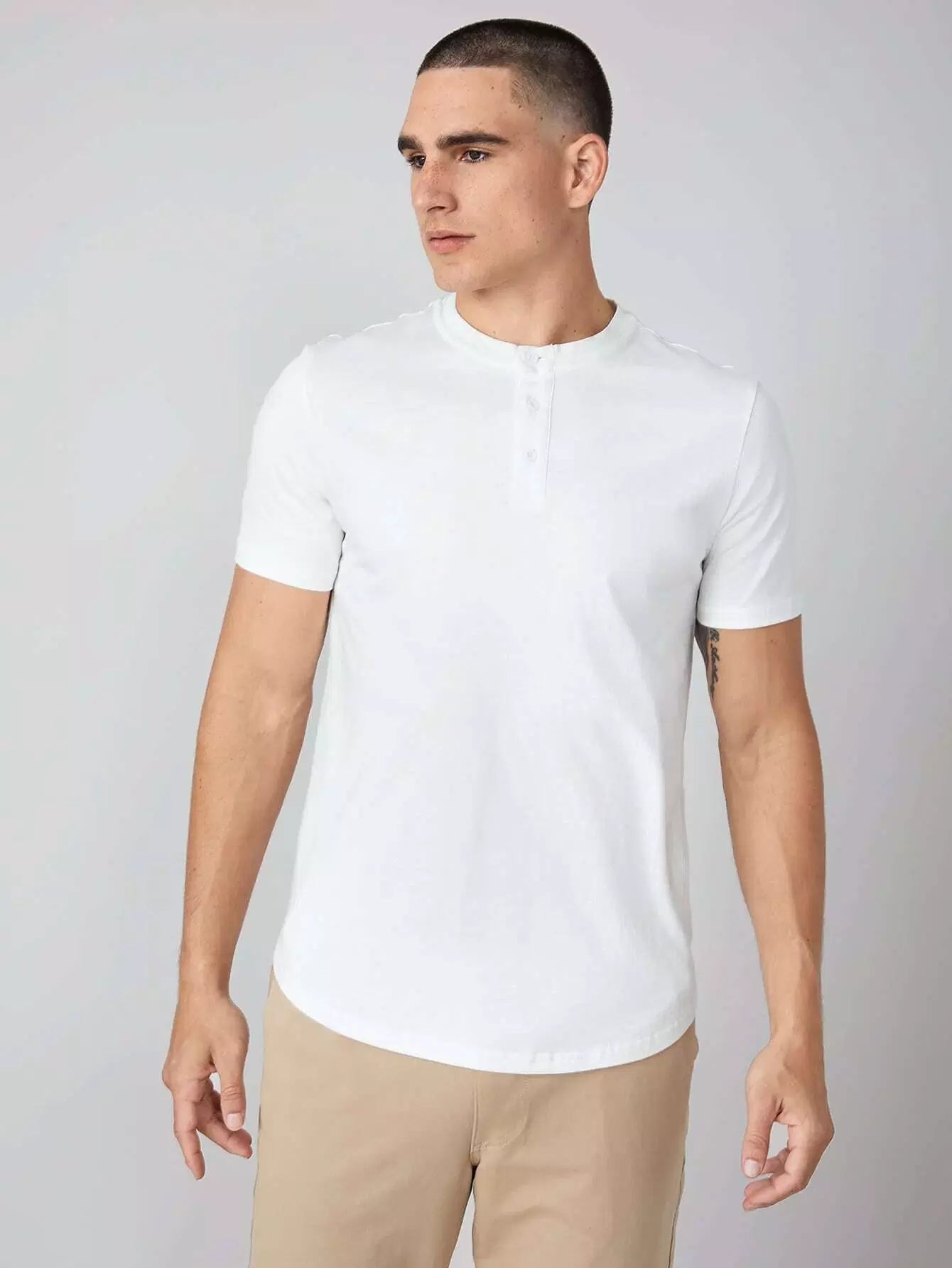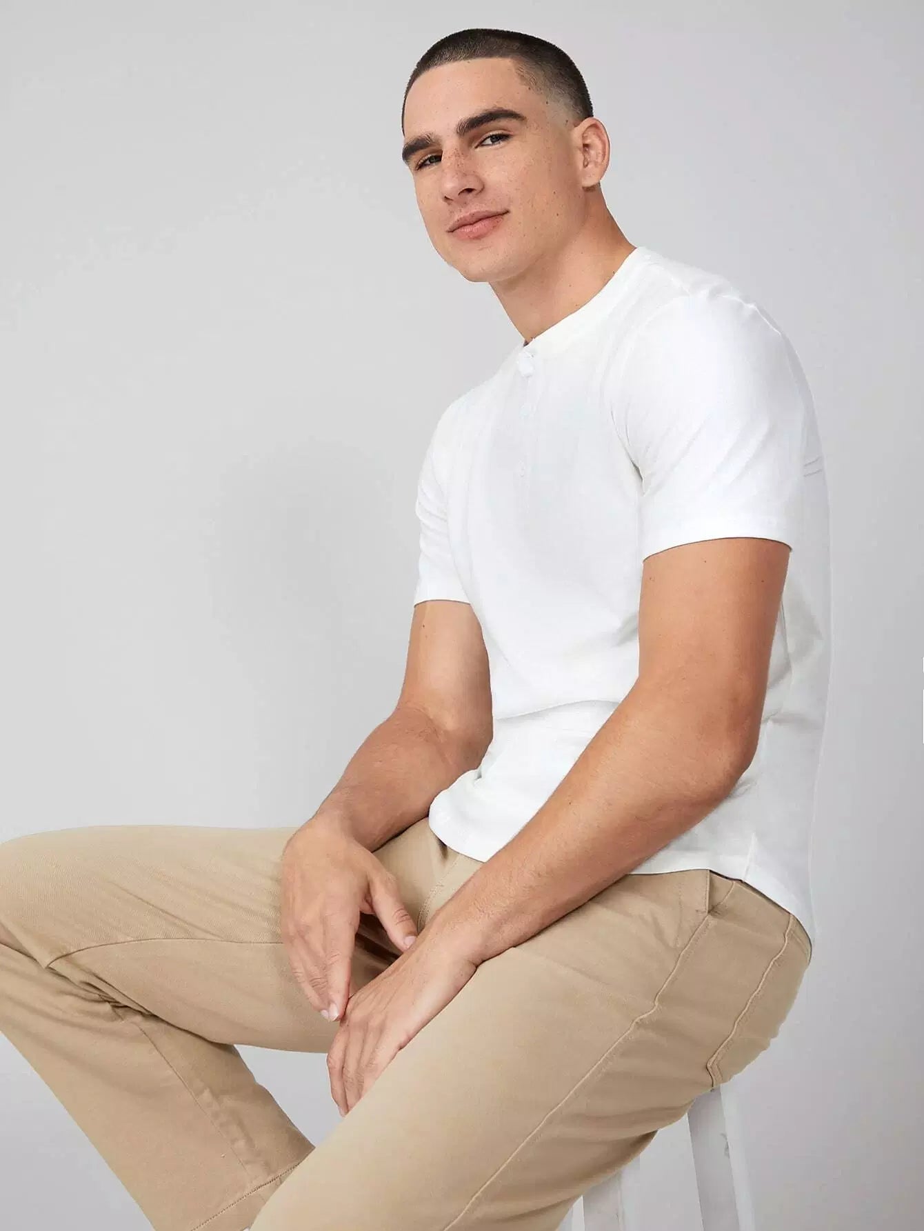 قميص رجالي قطن بياقة مستديرة برقبة دائرية بتفاصيل أزرار