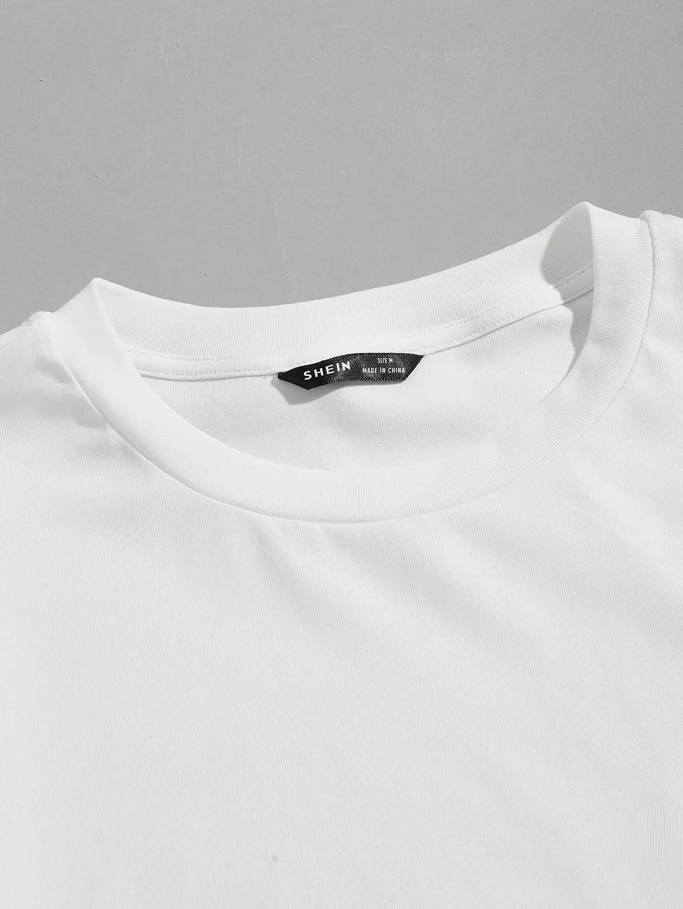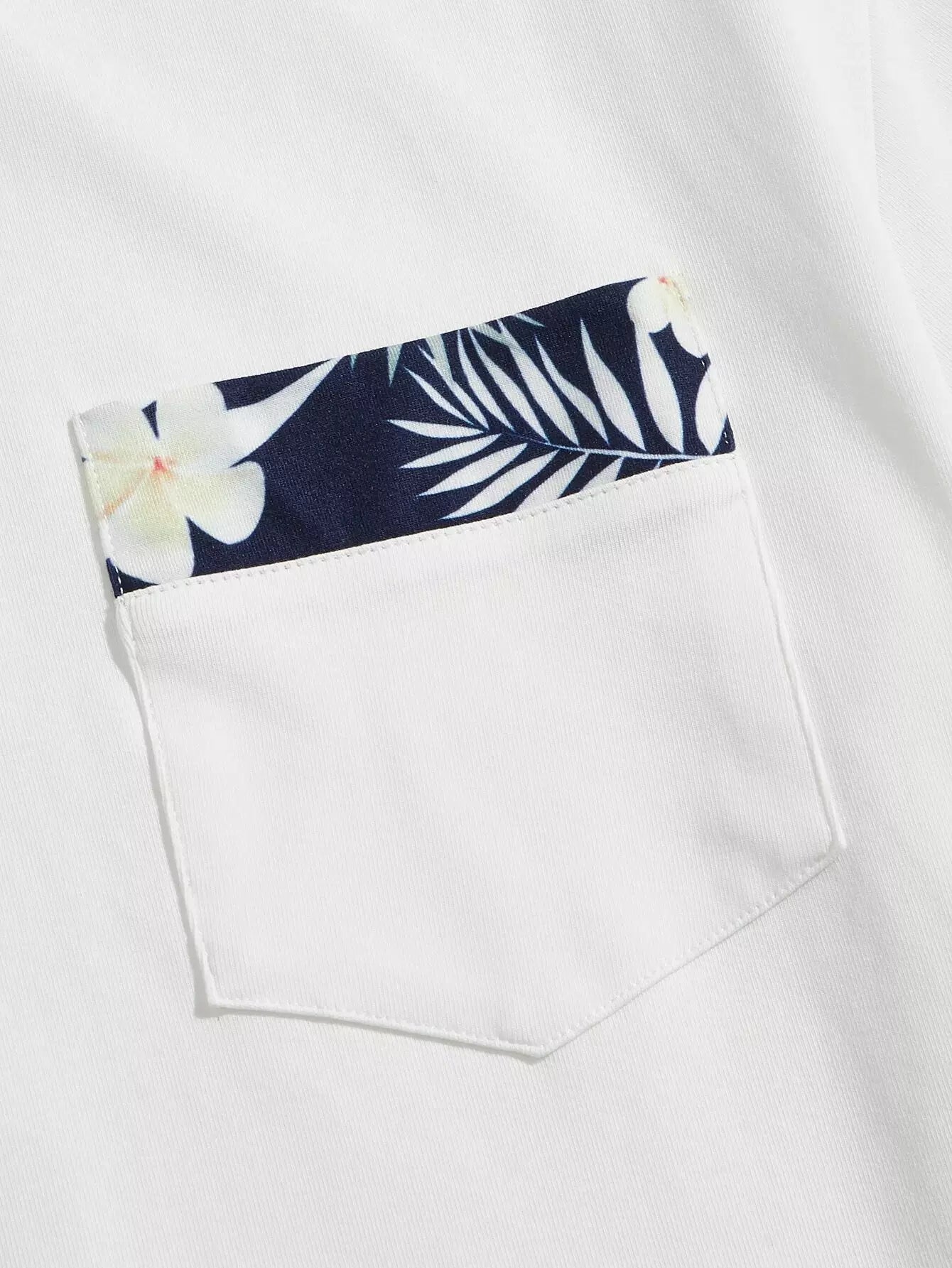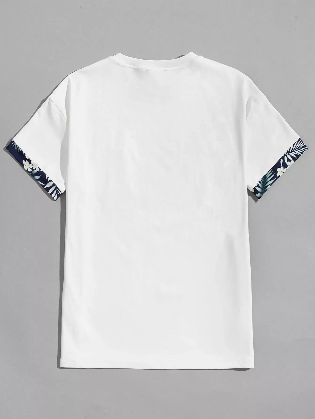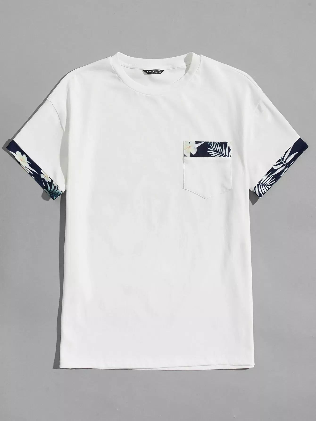 تي شيرت رجالي منسدل الكتف برقعة على شكل جيب استوائي