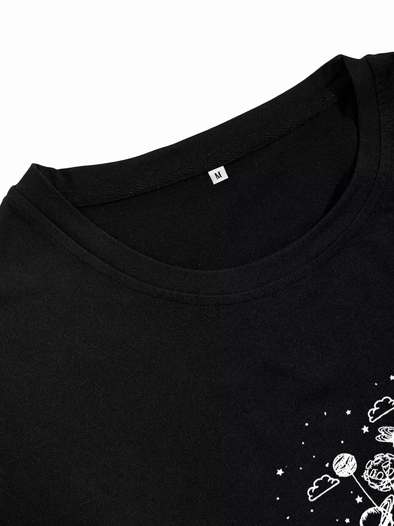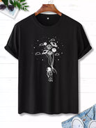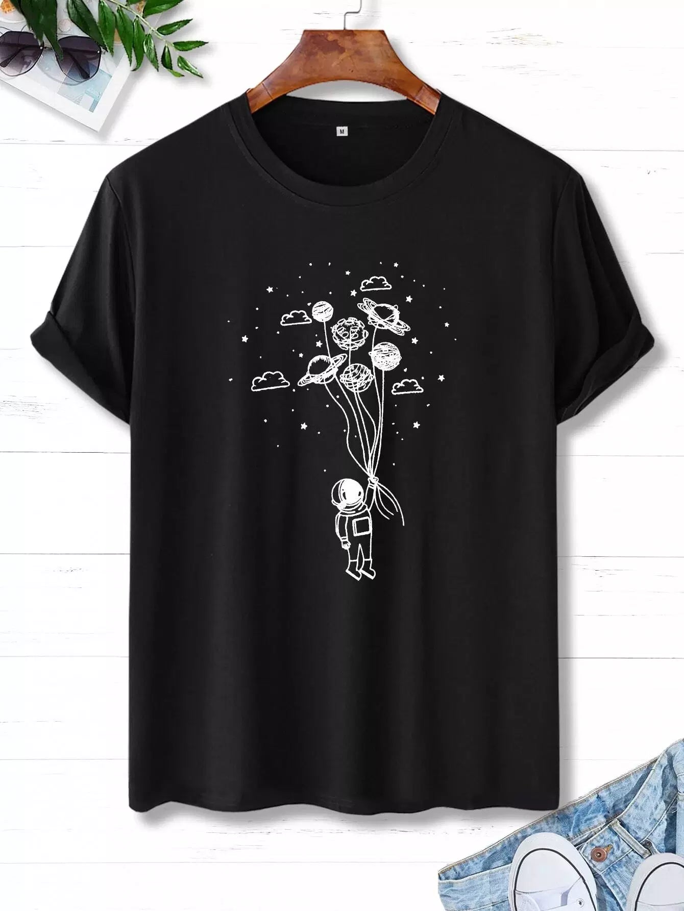 تي شيرت مطبوع عليه شكل ومجرة للرجال