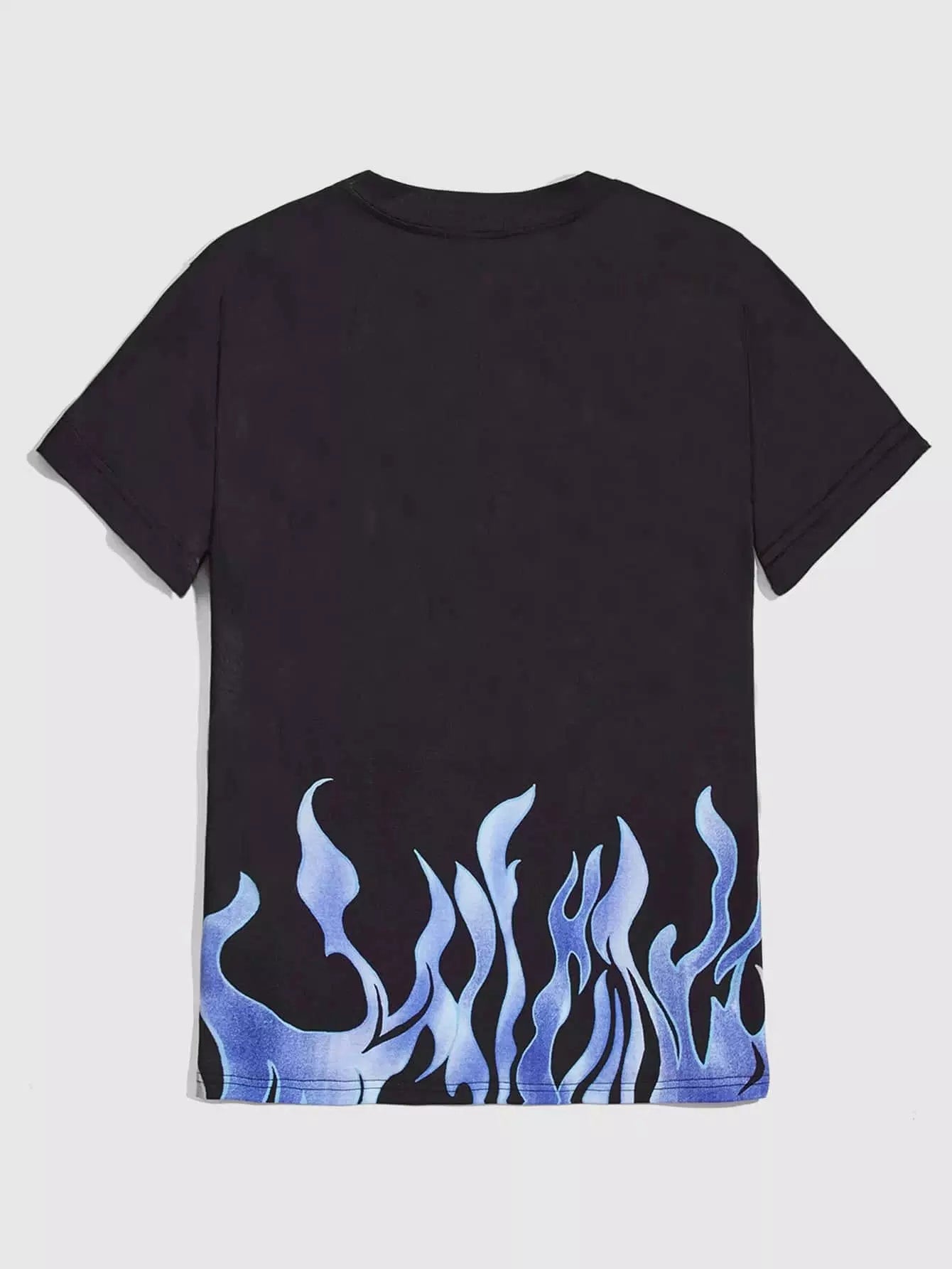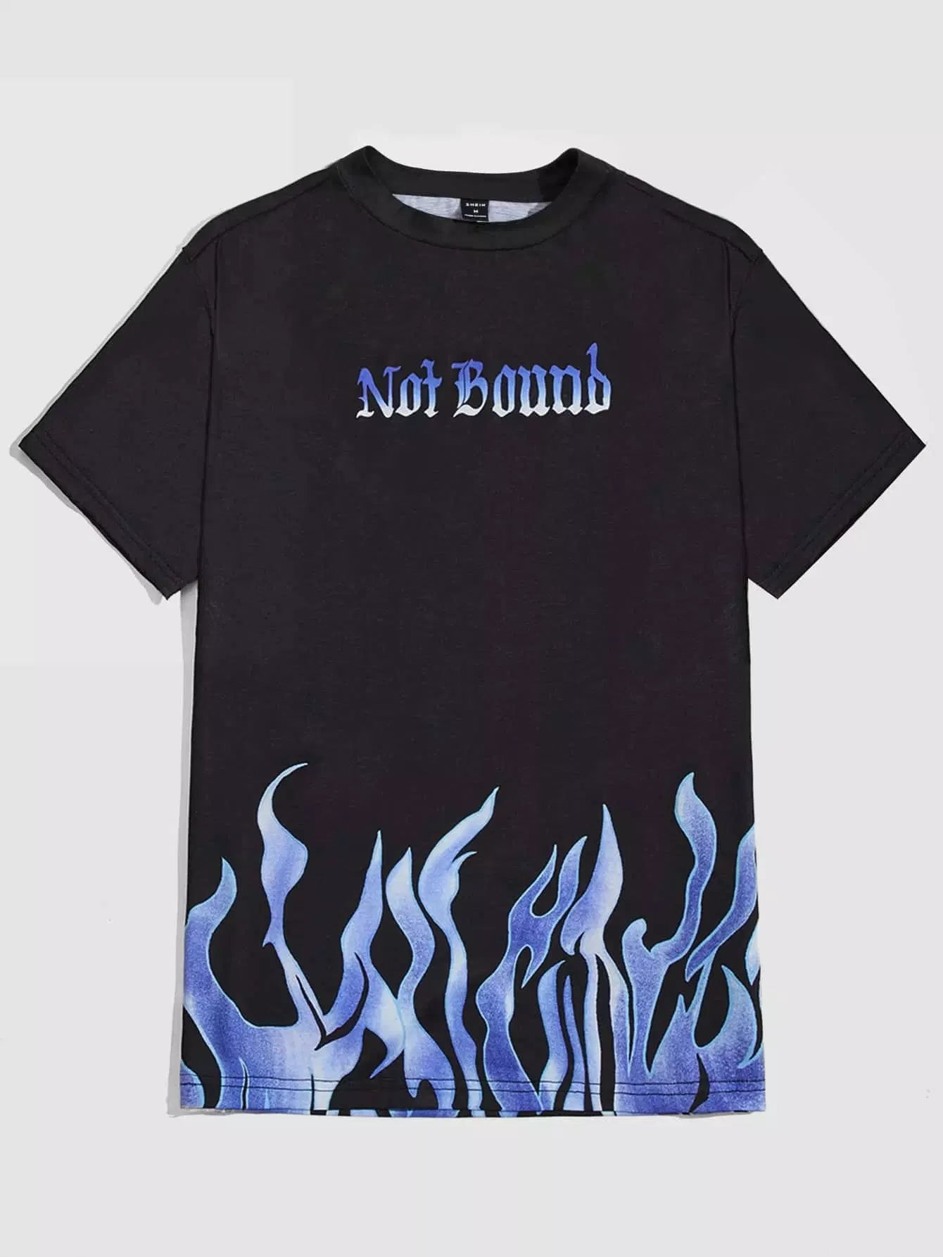 سويت شيرت رجالي منسدل الكتف بتصميم ناري ورسومات حروف