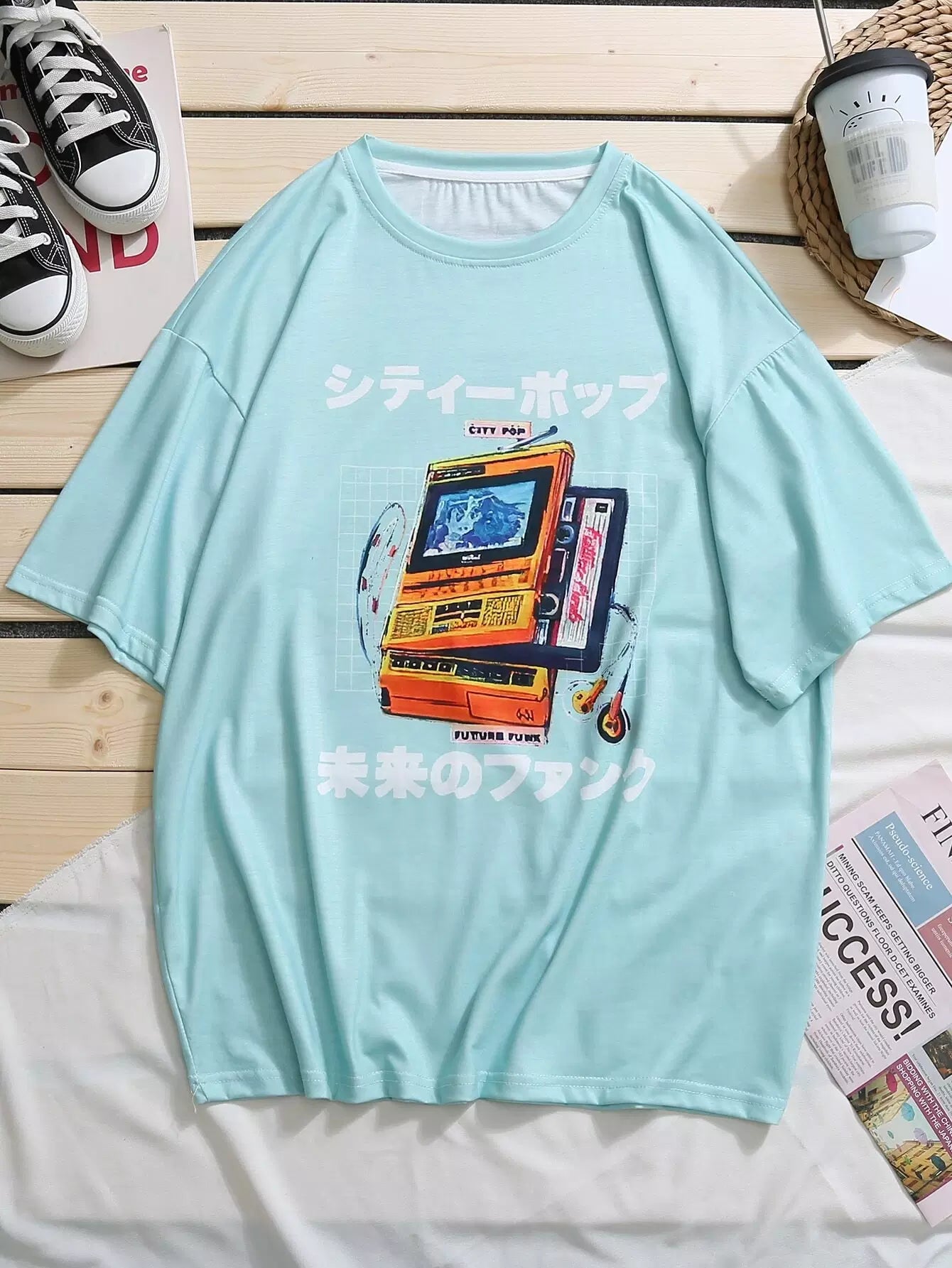 تيشيرت رجالي مطبوع عليه حروف ورسومات يابانية