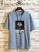 تي شيرت مطبوع عليه حروف ورسومات رجالي