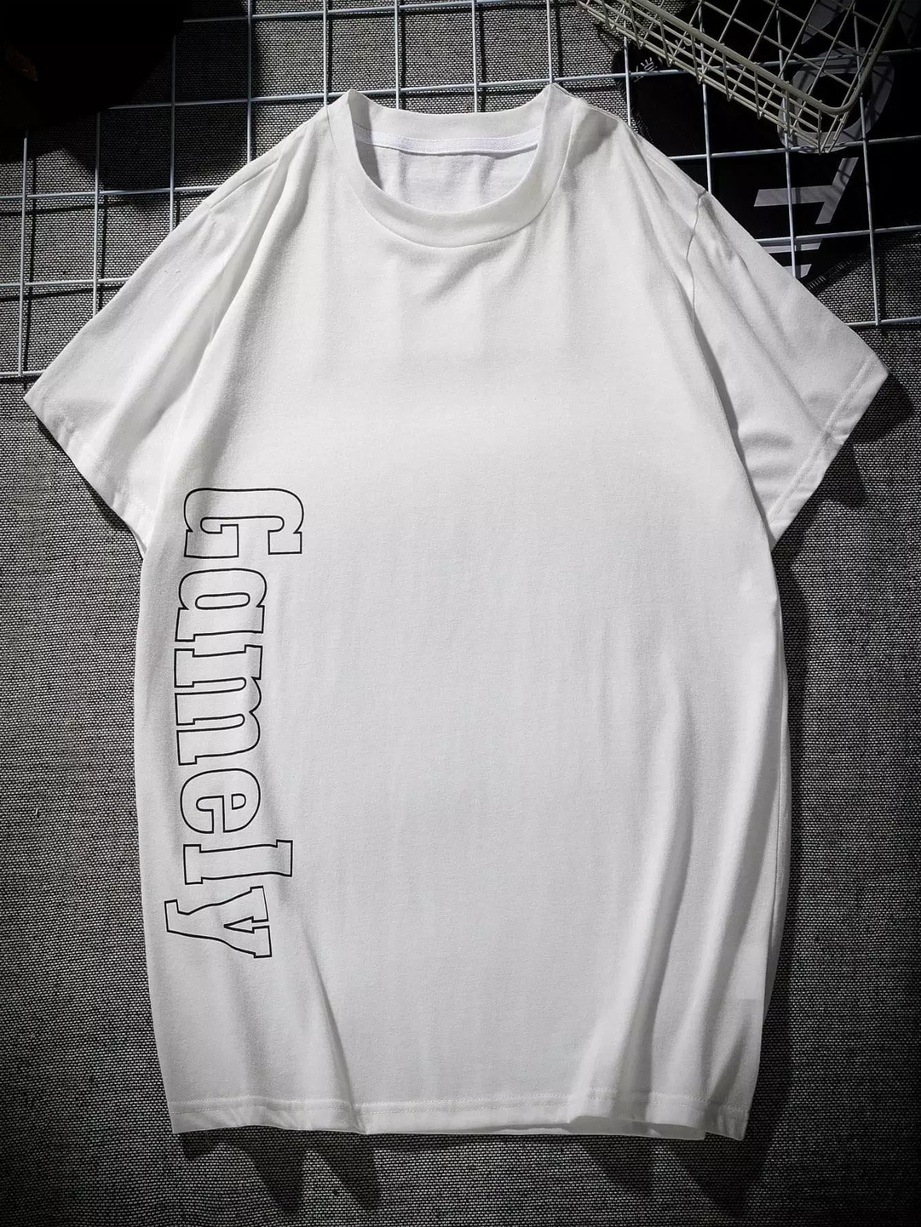 تي شيرت رجالي برقبة دائرية ورسومات بأحرف
