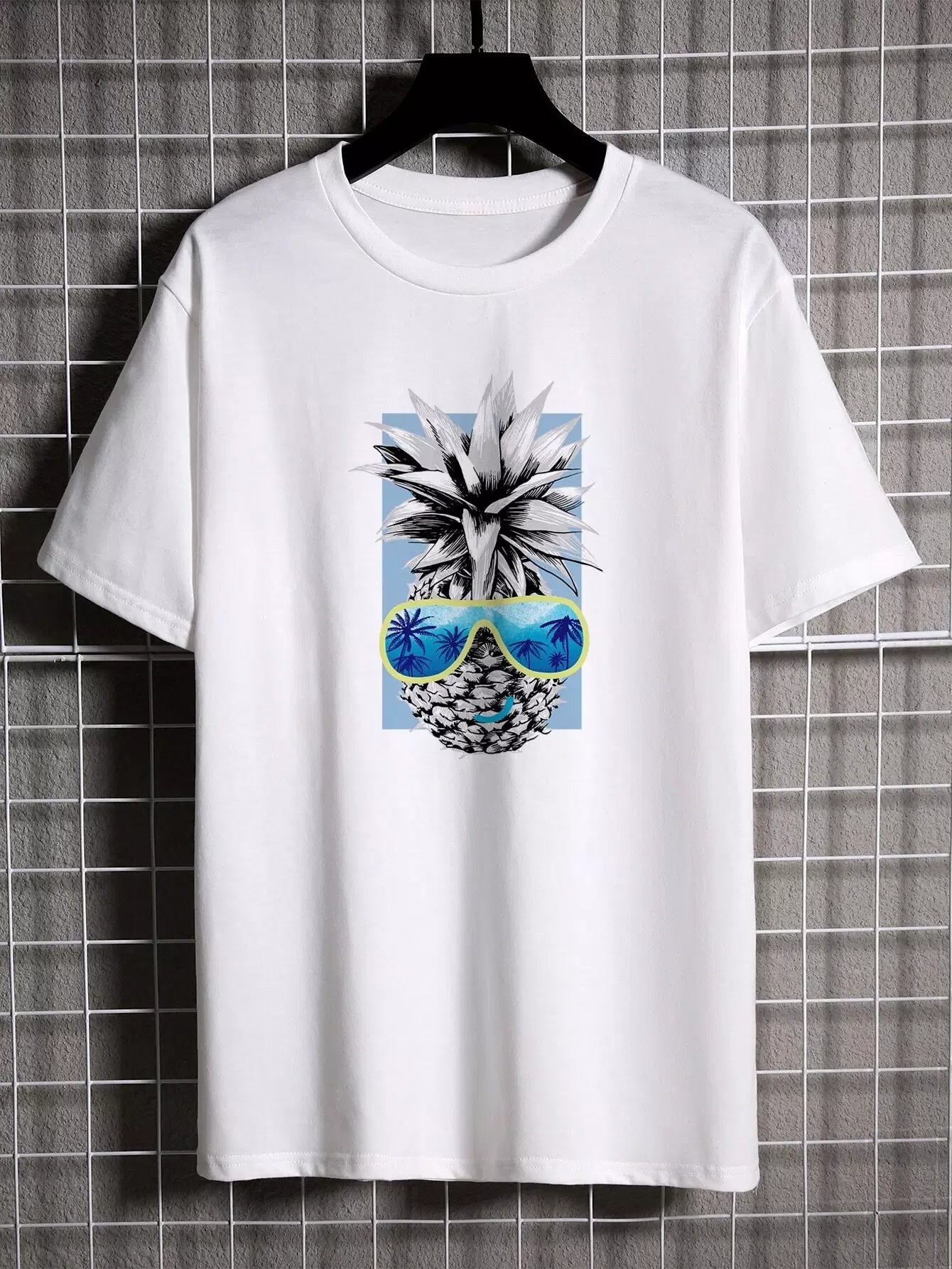 قميص برقبة مستديرة مطبوع عليها أناناس للرجال