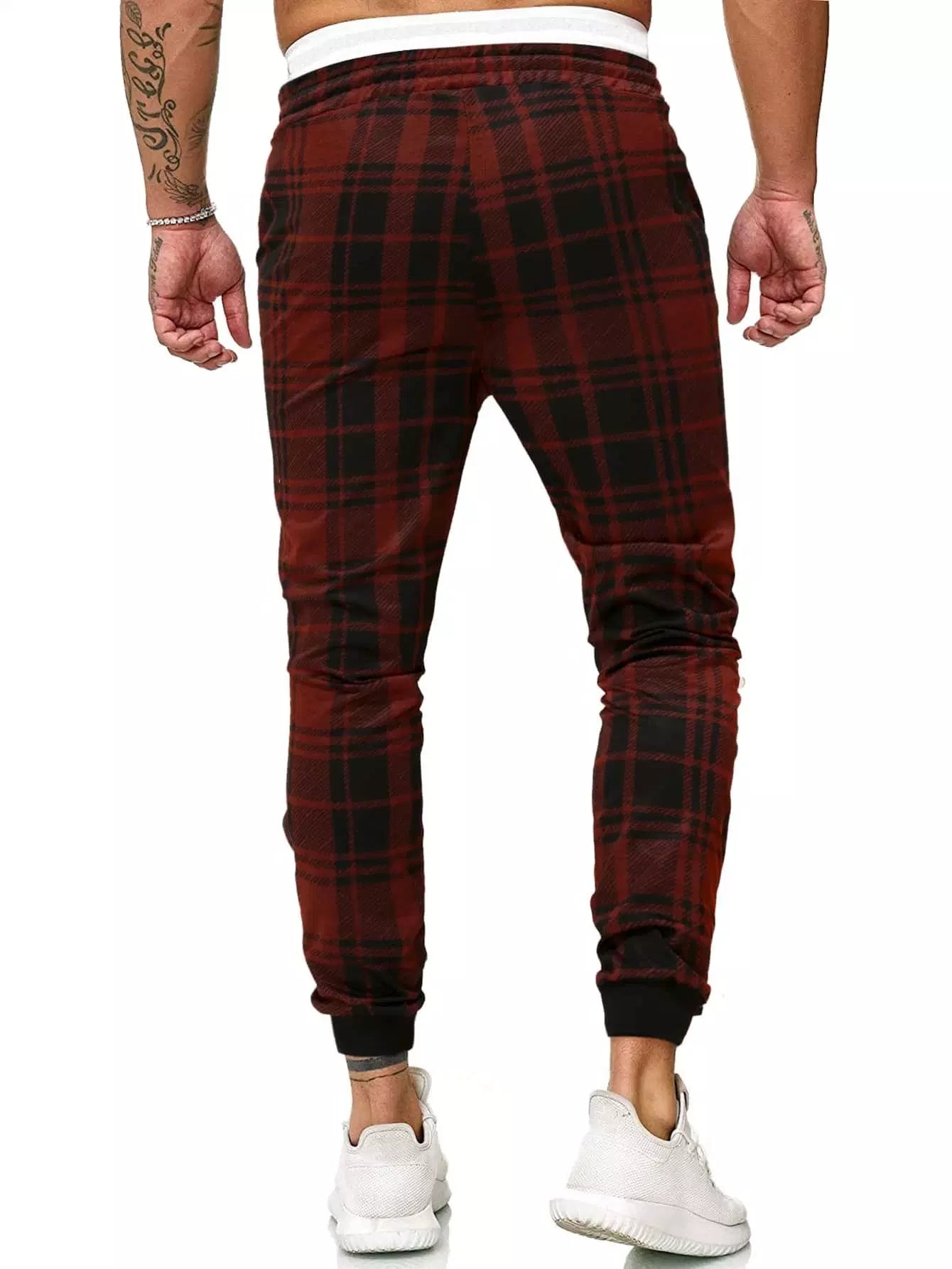 الرجال - بنطال رياضي منقوش بخصر برباط للرجال