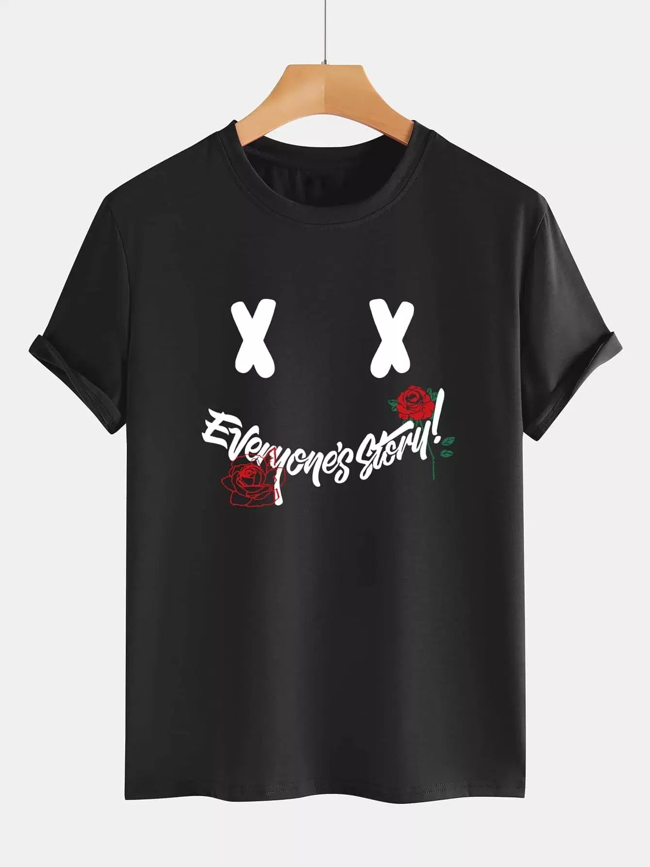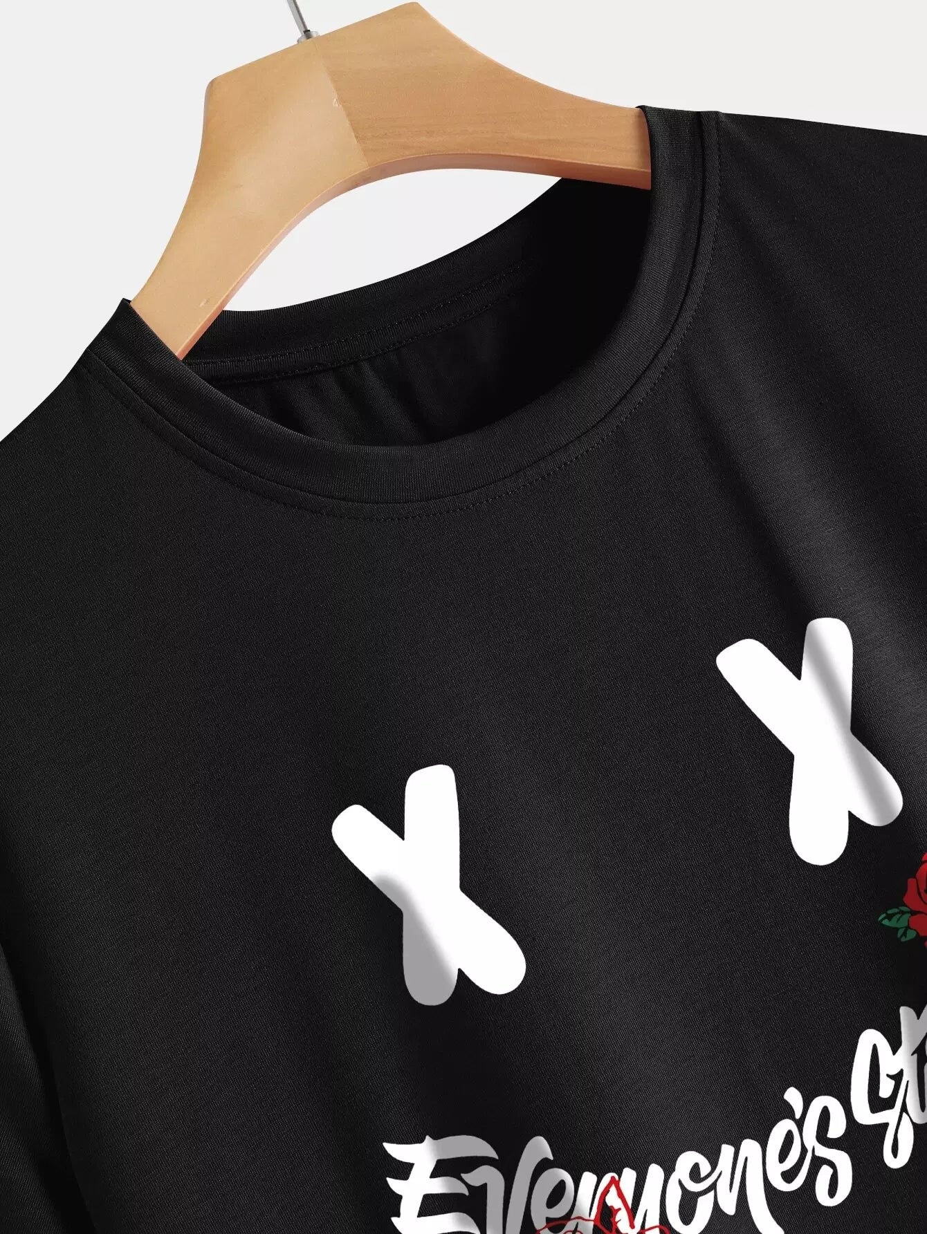 تي شيرت جرافيك وردي ورسومات حروف للرجال