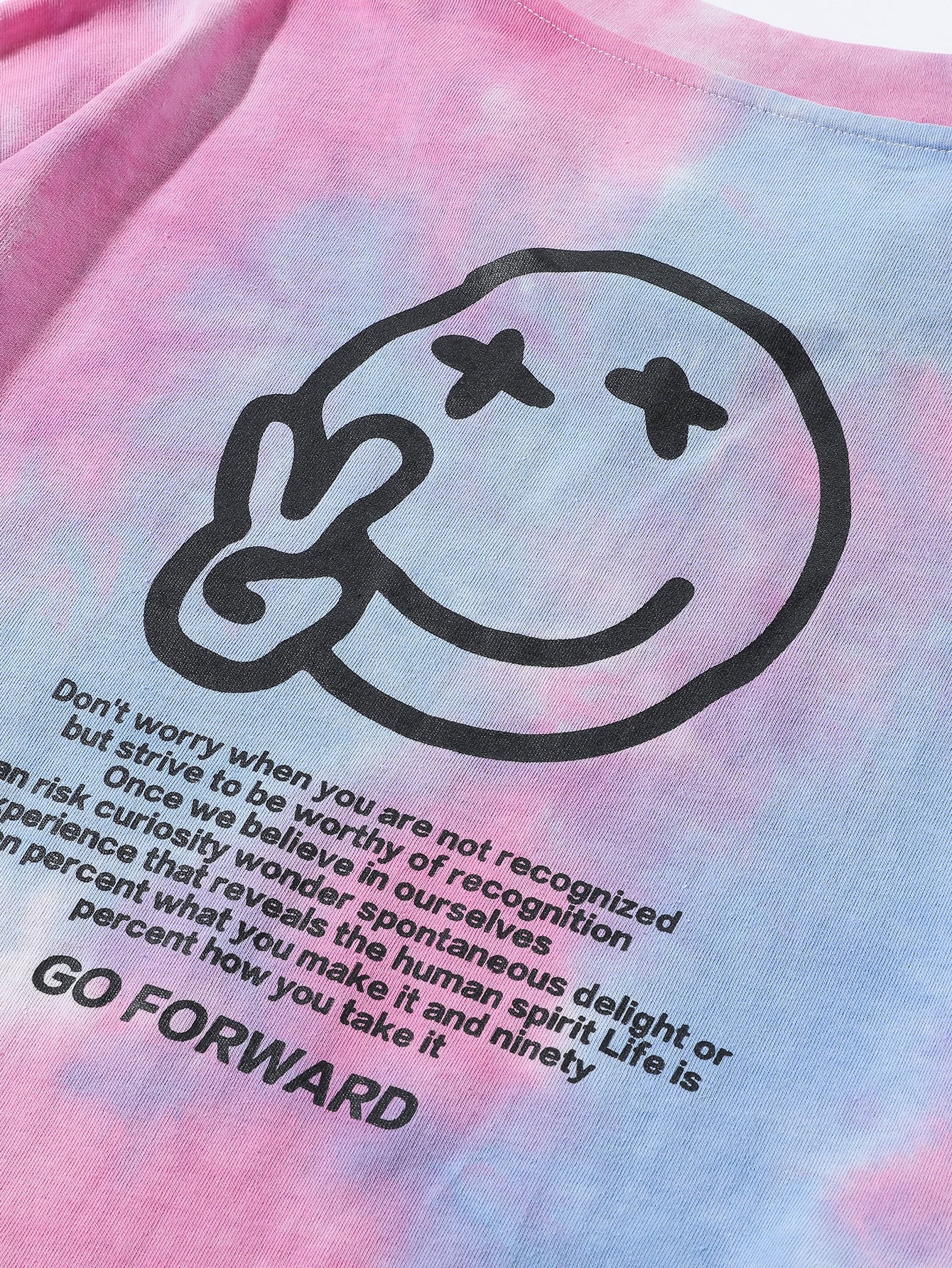 Men Slogan & Cartoon Graphic Tie Dye Tee