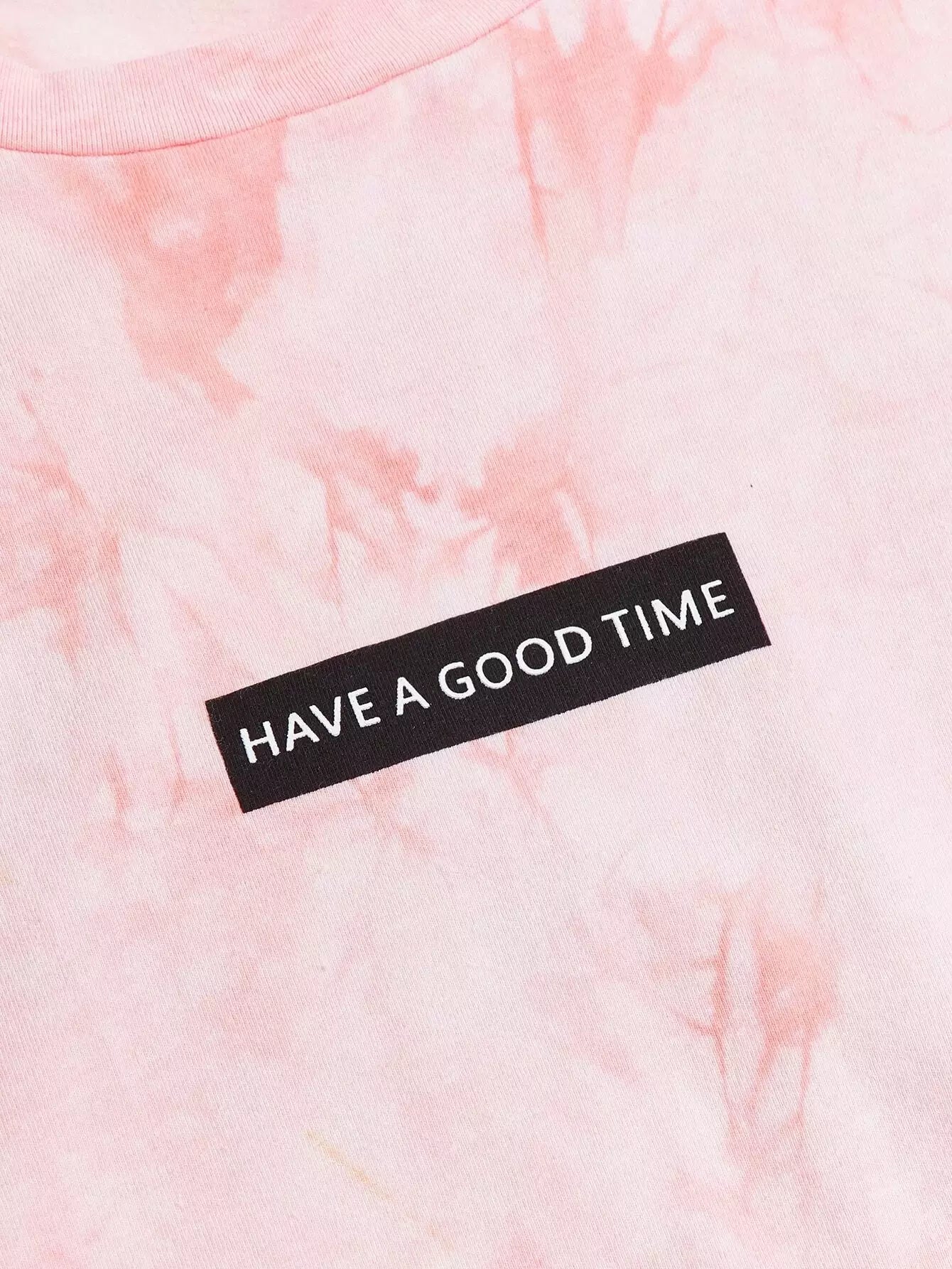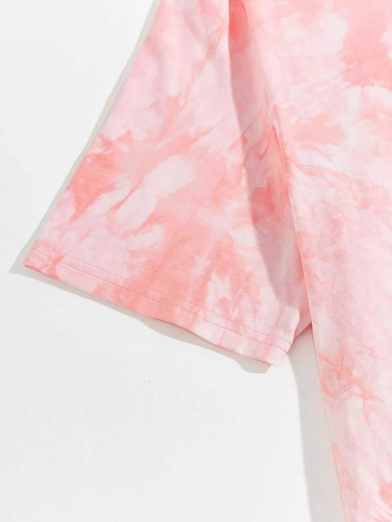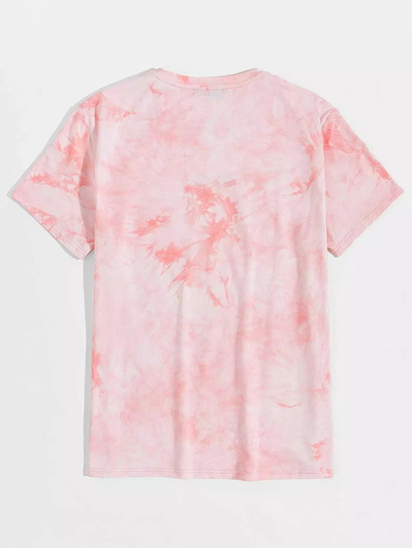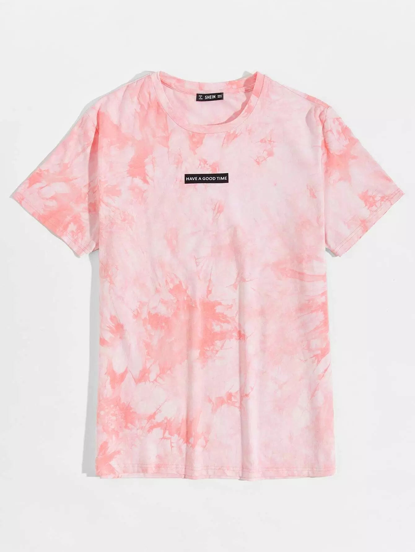 تيشيرت بشعار شعار جرافيك رجالي مصبوغ بربطة عنق مصبوغة