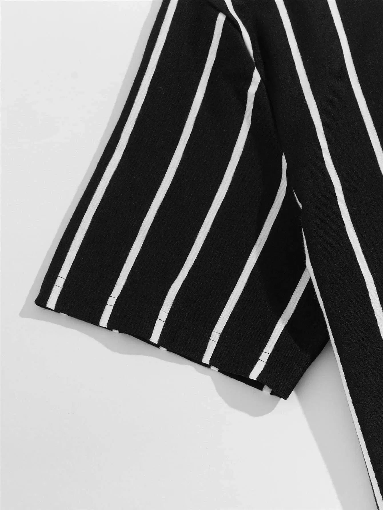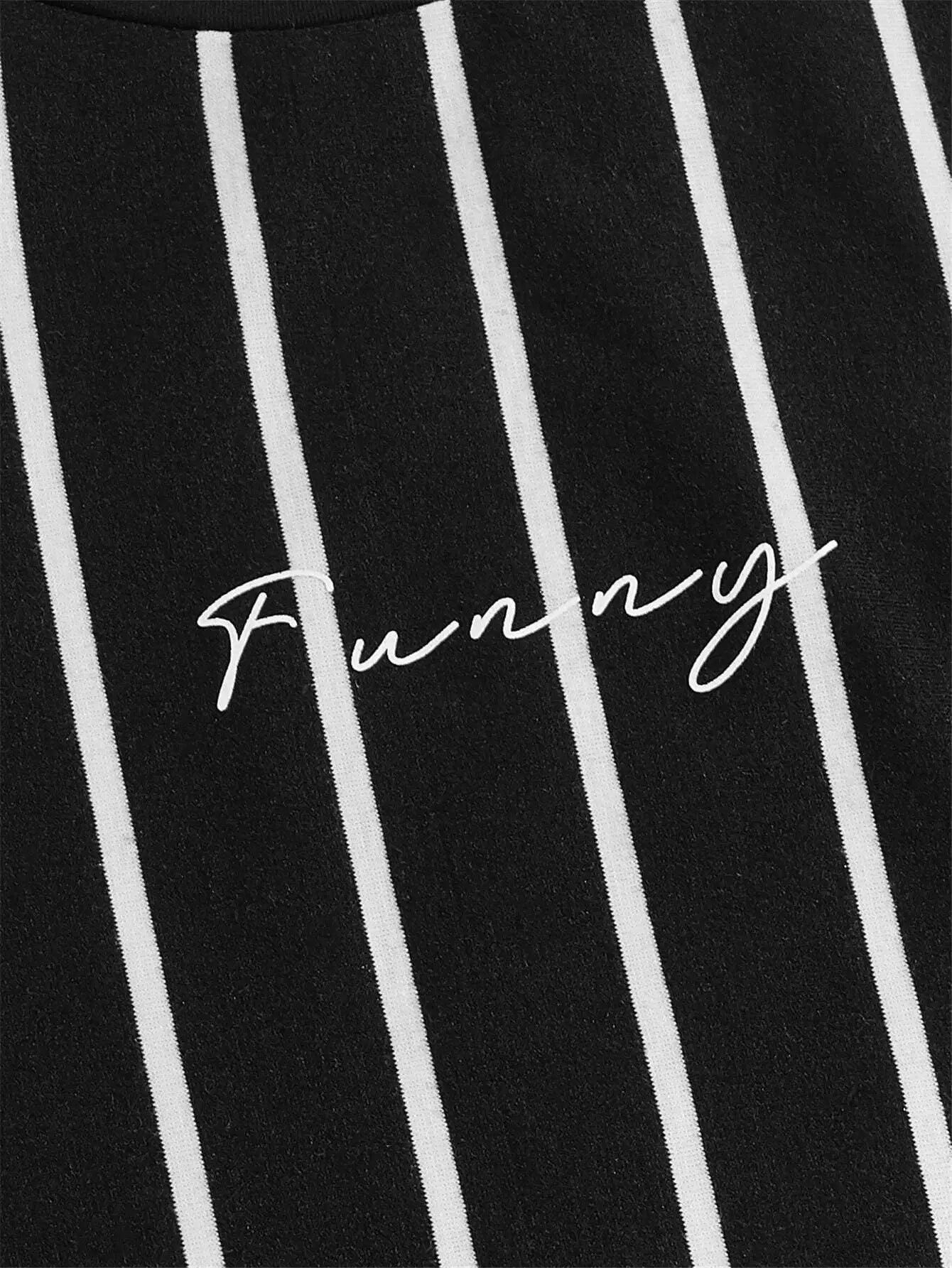 تي شيرت رجالي مخطط ورسومات حروف للرجال