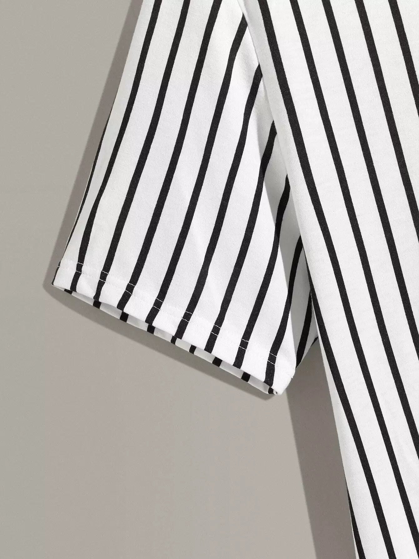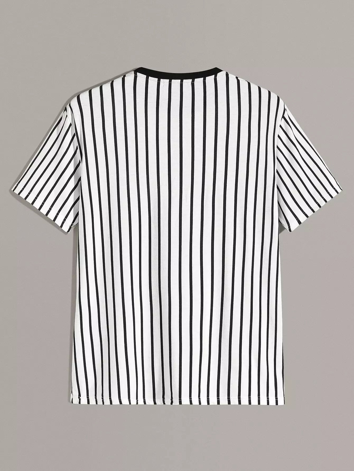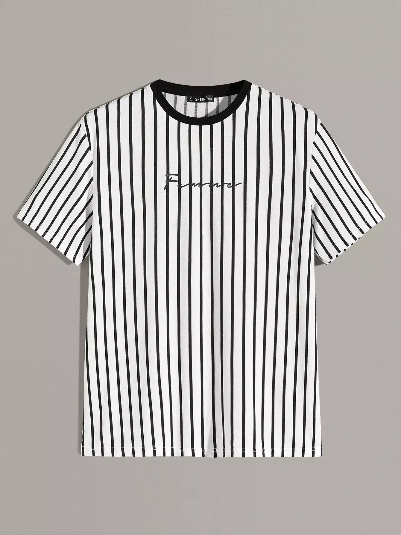 تي شيرت رجالي مخطط عمودي ورسومات حروف للرجال