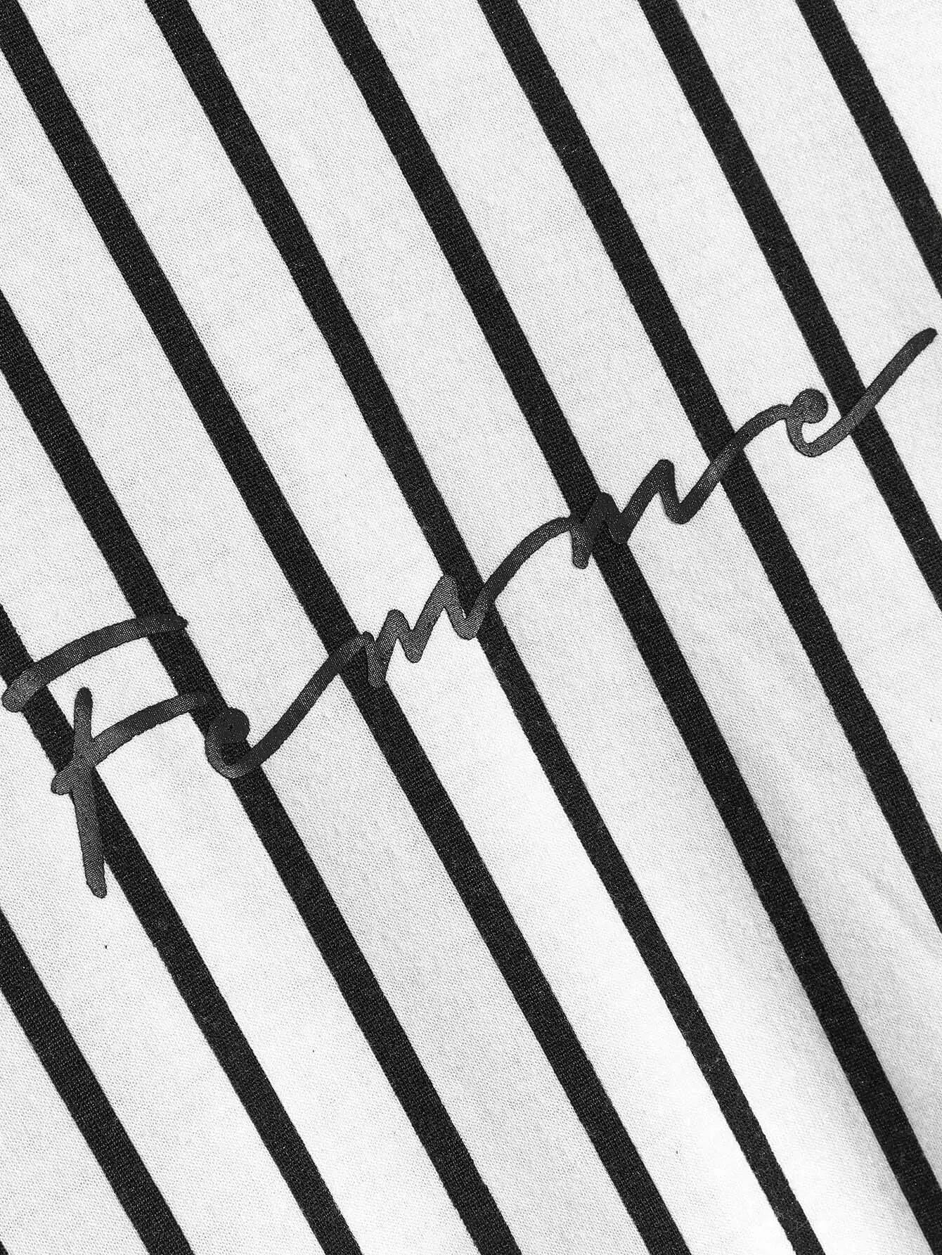 الرجال - تي شيرت رجالي برسومات مخططة عموديًا وأحرف
