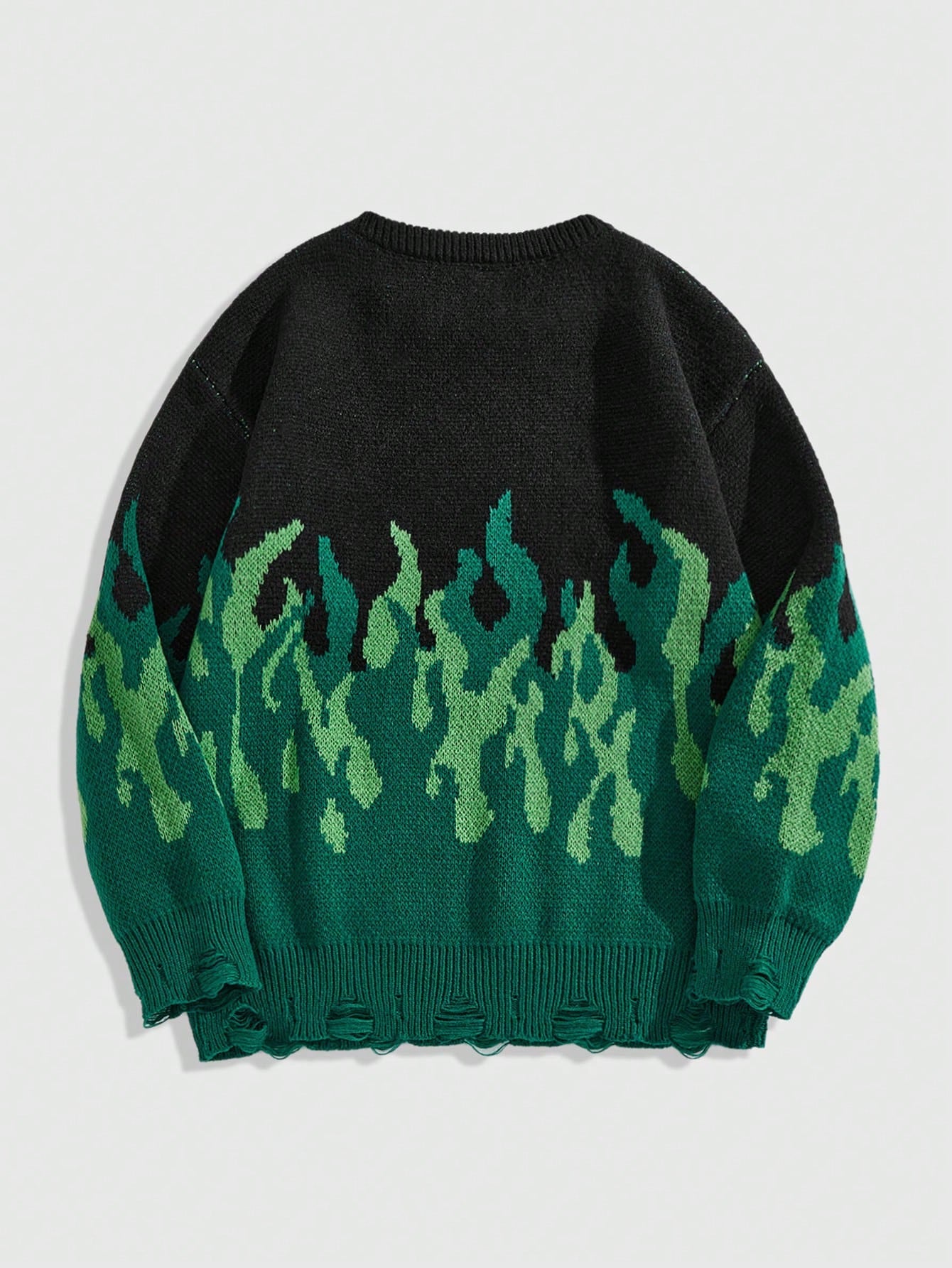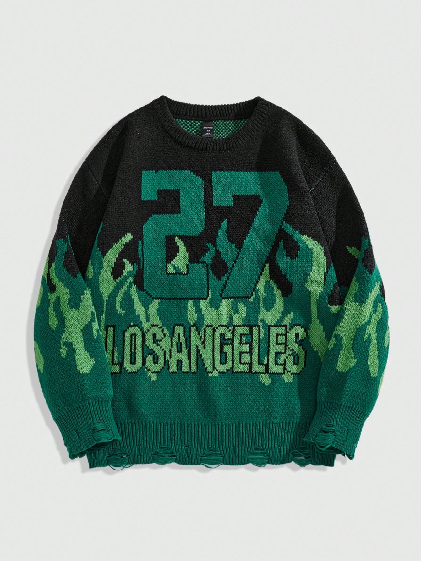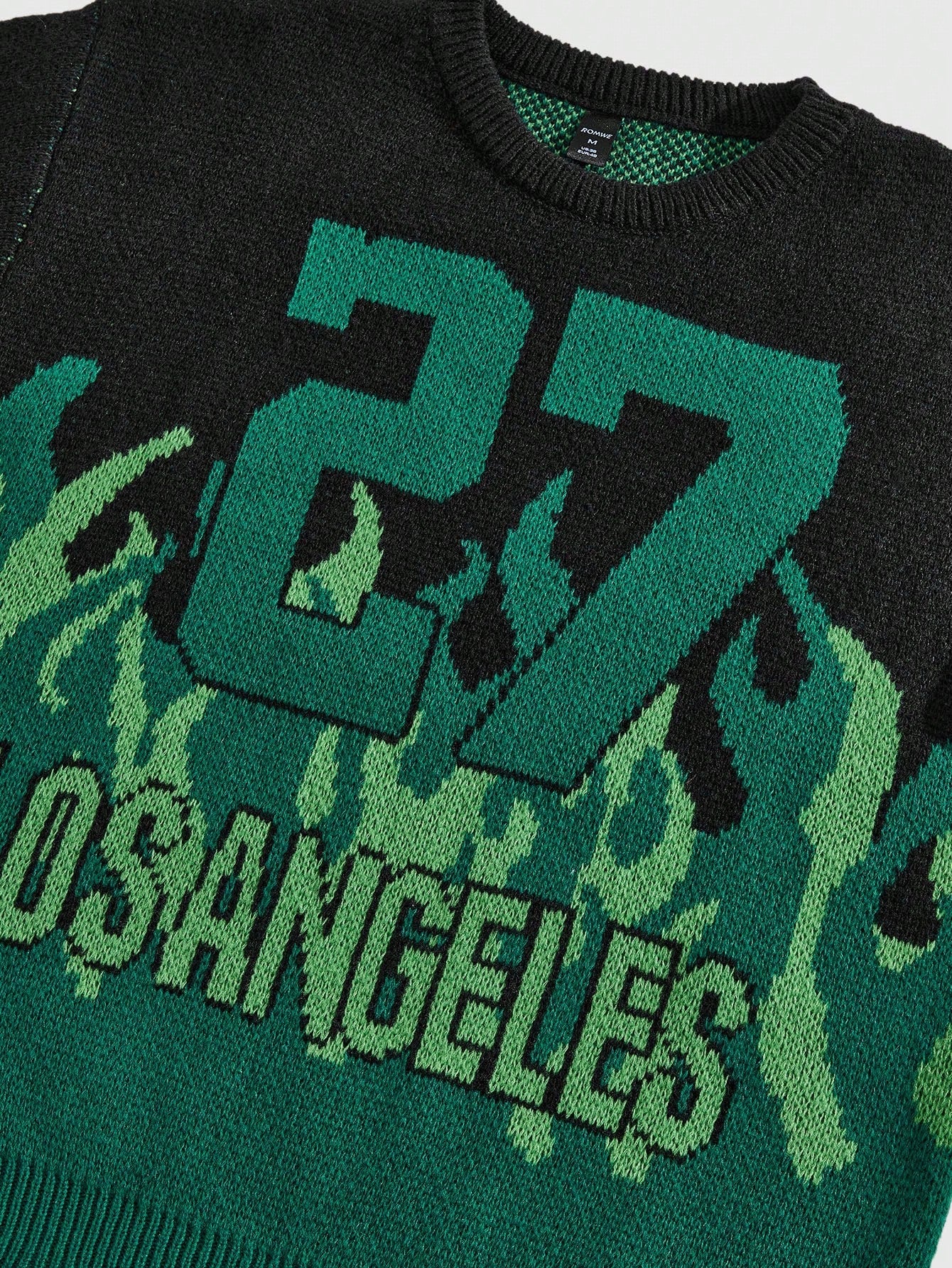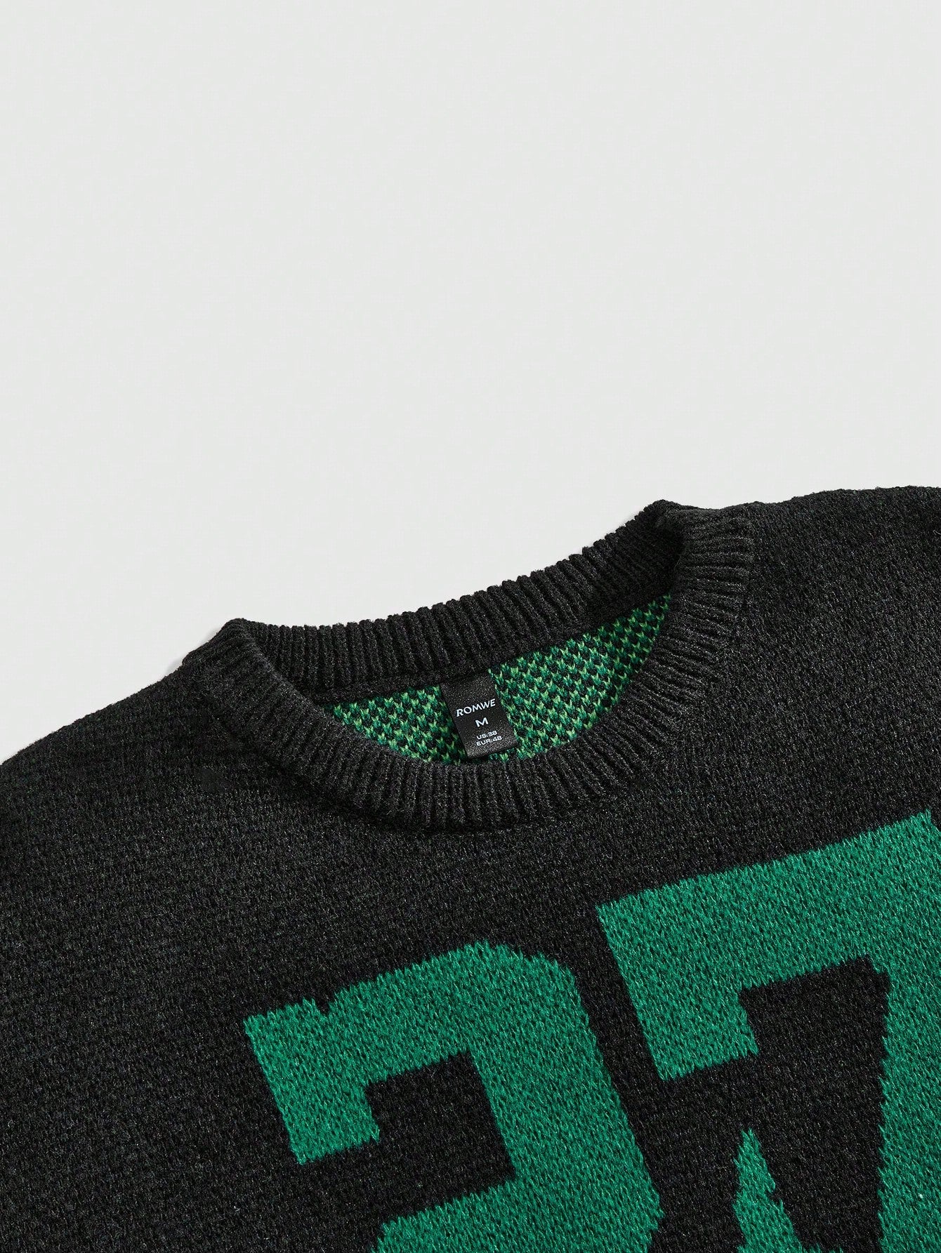 ROMWE MEN Men's Numeric Jacquard Crew Neck Long Sleeve Sweater, Casual Everyday Wear