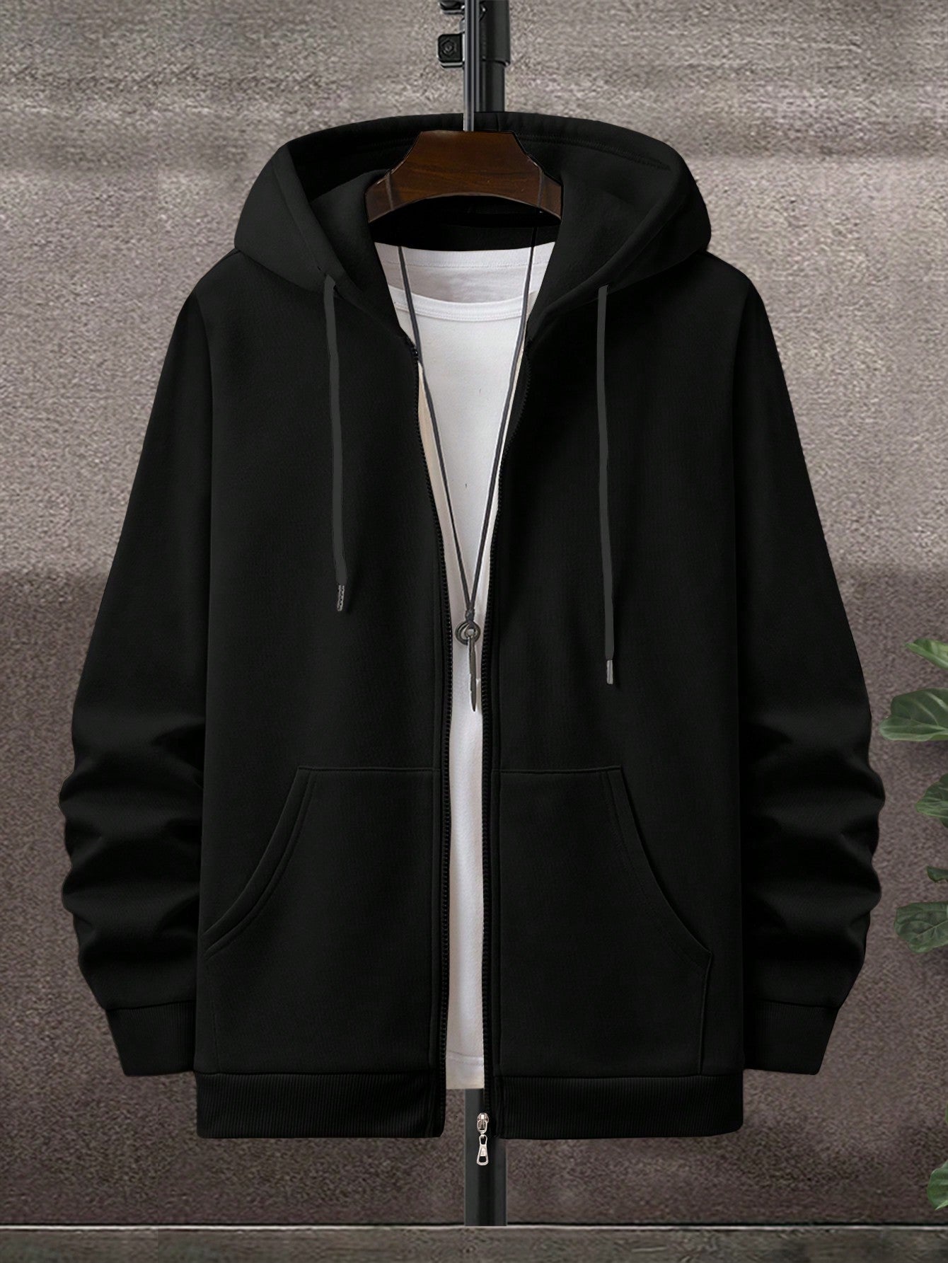 هودي رجالي من RueChic بسحاب ورباط مبطن حرارياً بدون تيشيرت