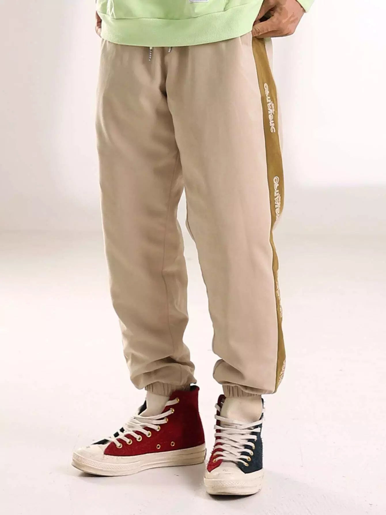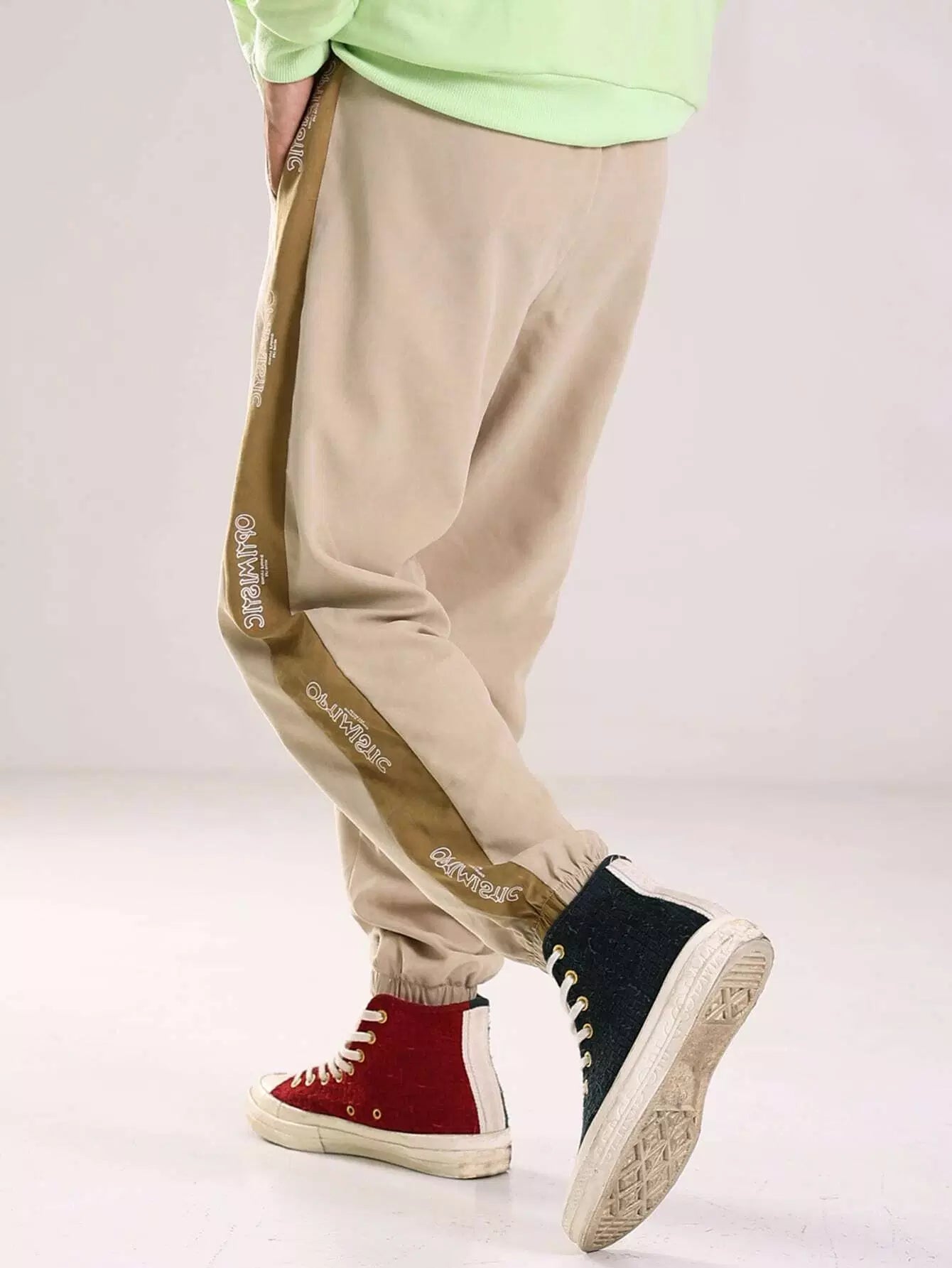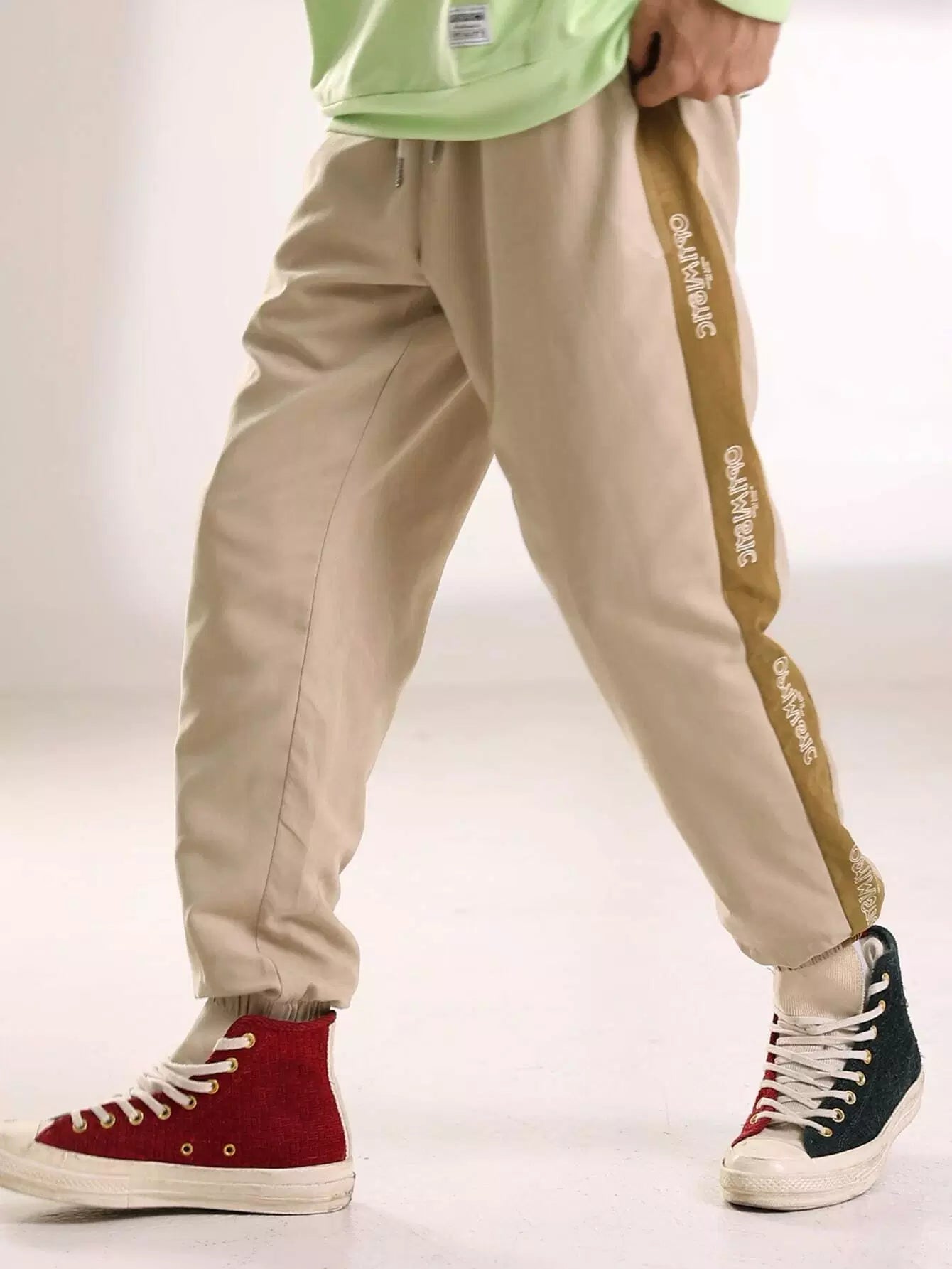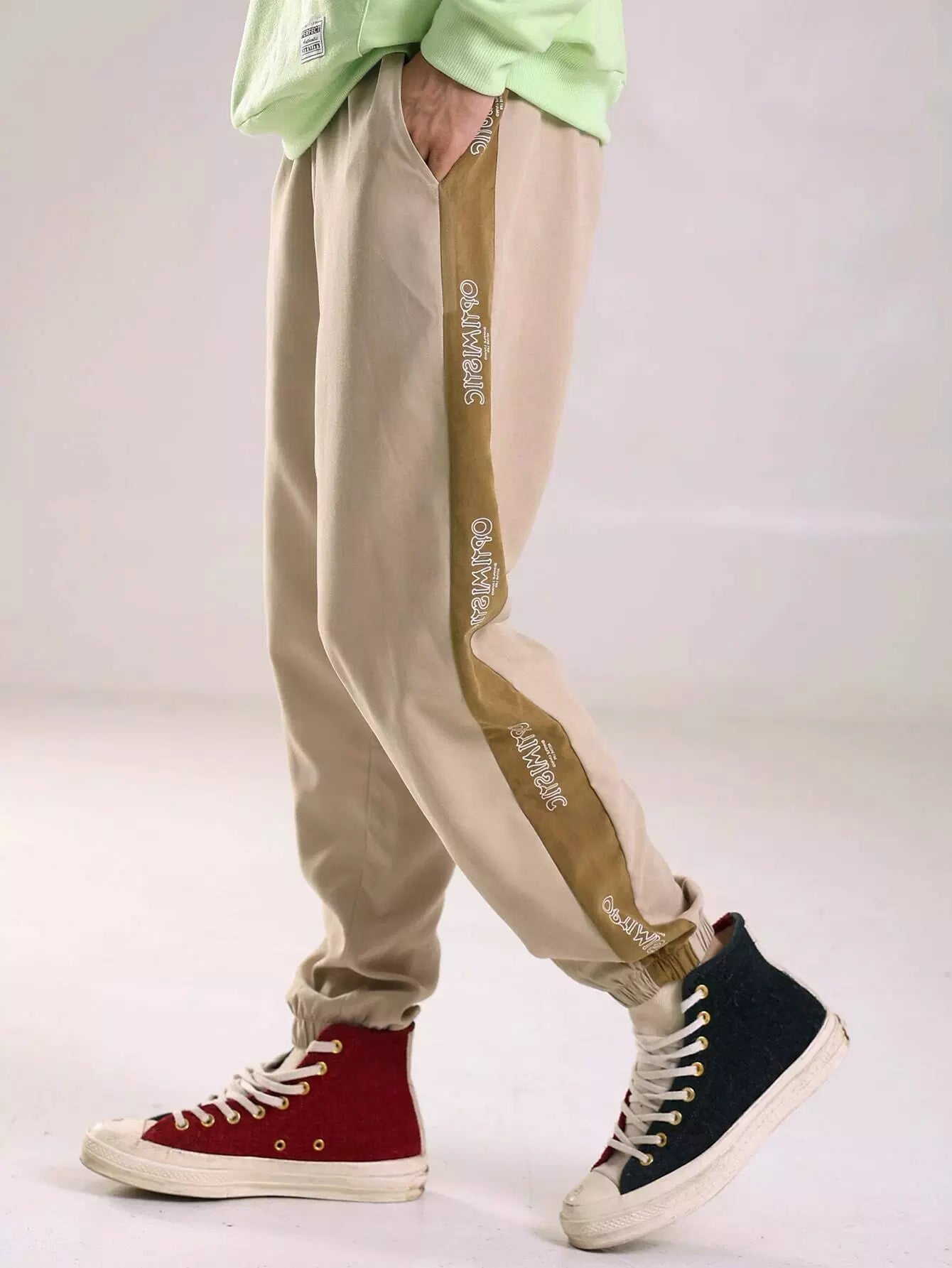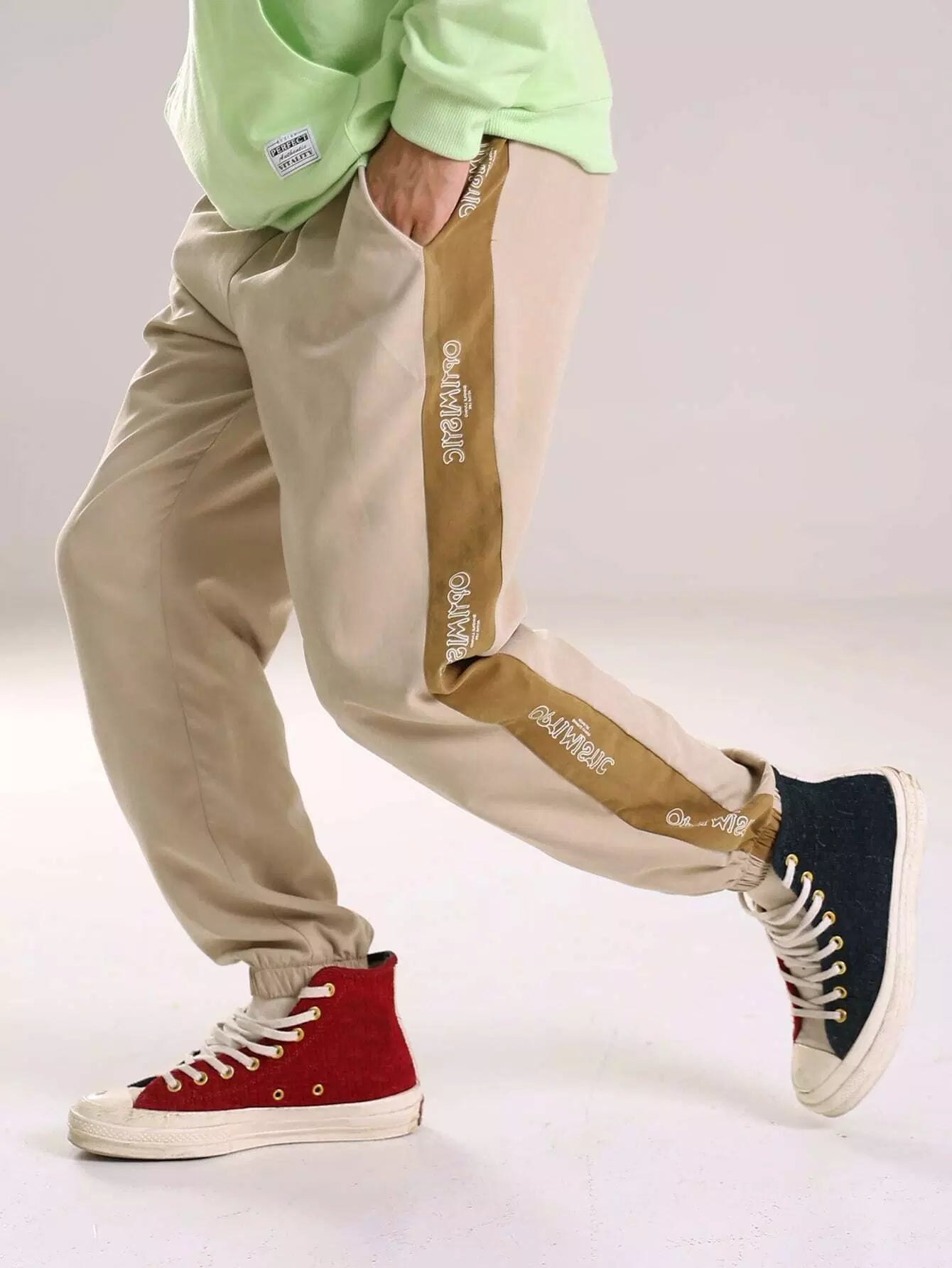 بنطلون رجالي بخطوط جانبية متباينة ورسومات بأحرف