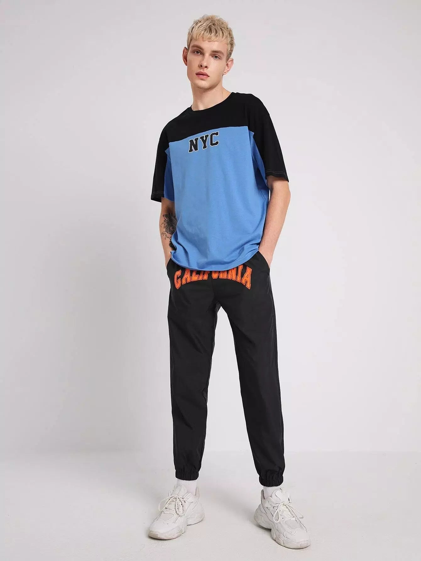 بنطلون رجالي بجيوب مائلة ورسومات بأحرف