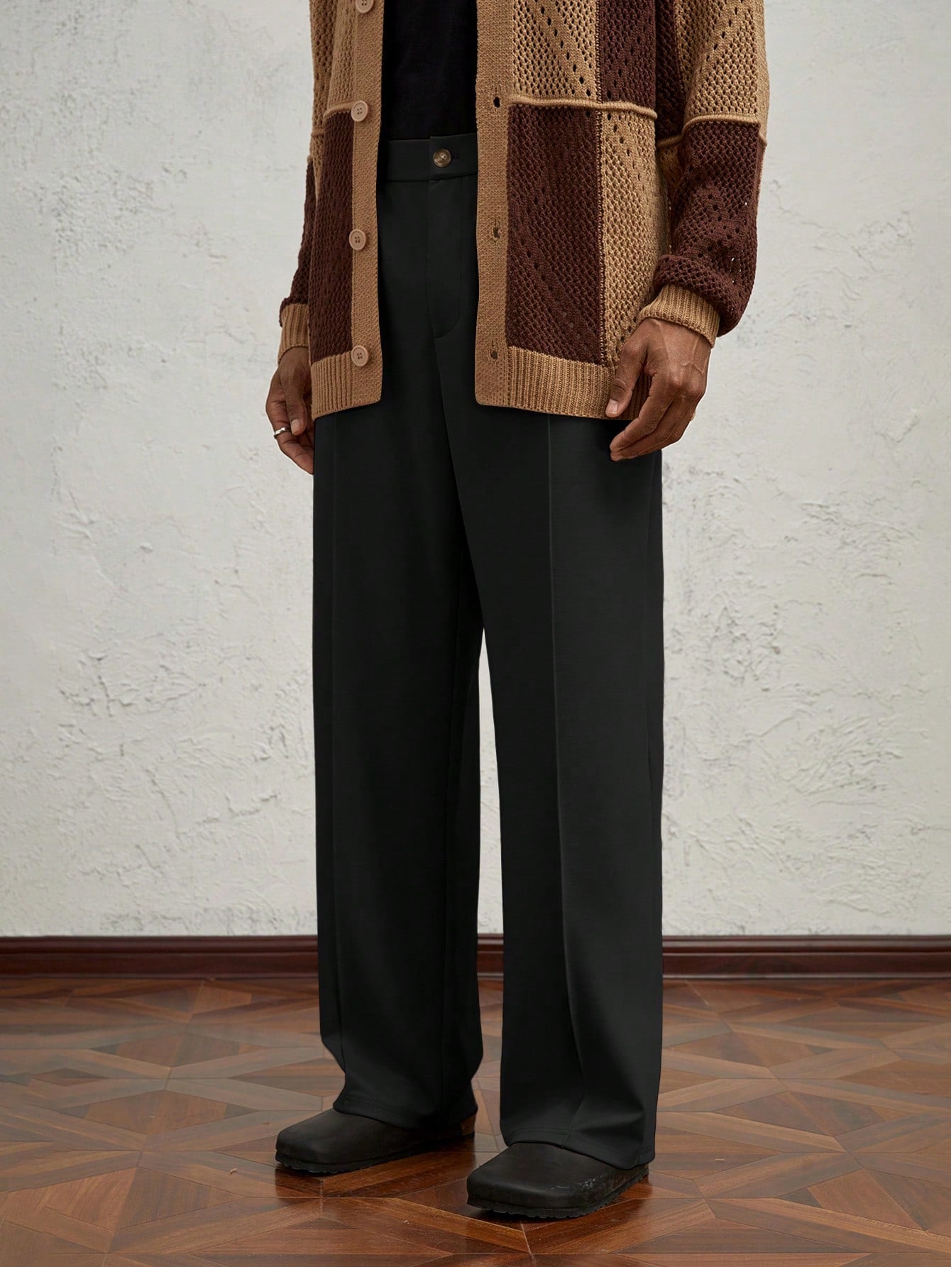 men AKNOTIC Business Casual Men's Knit Slim Fit Casual Long Straight Leg Pants
