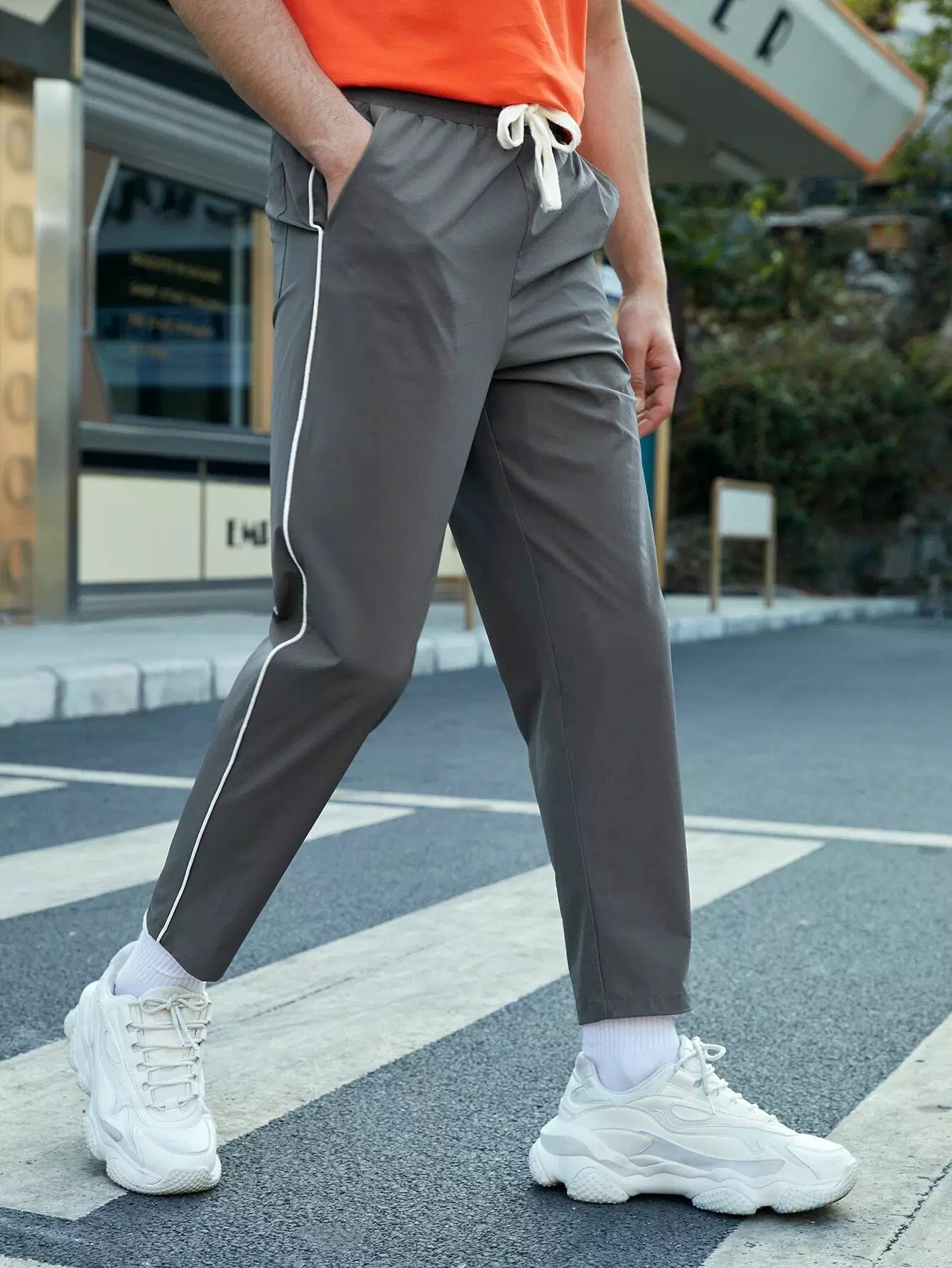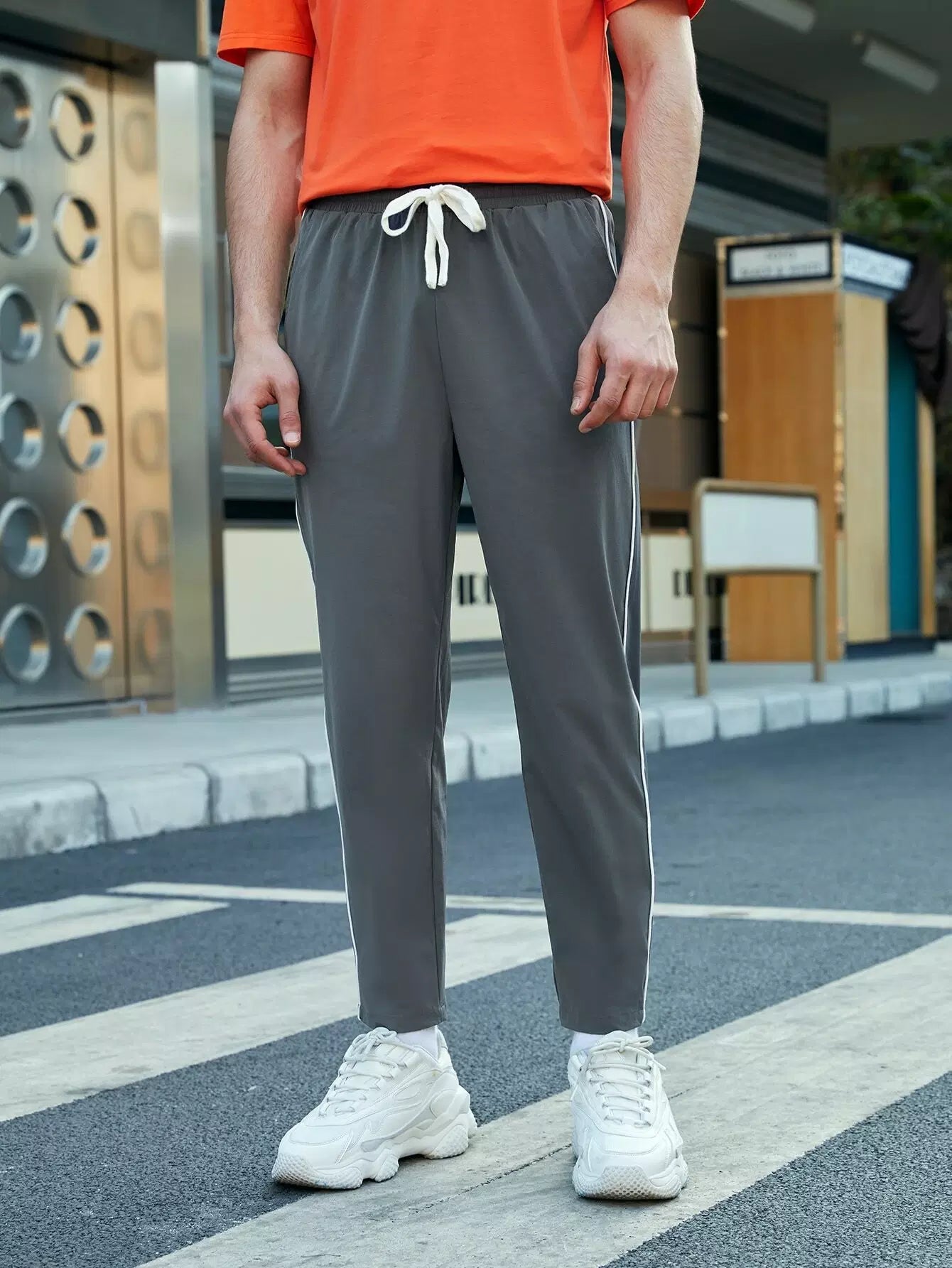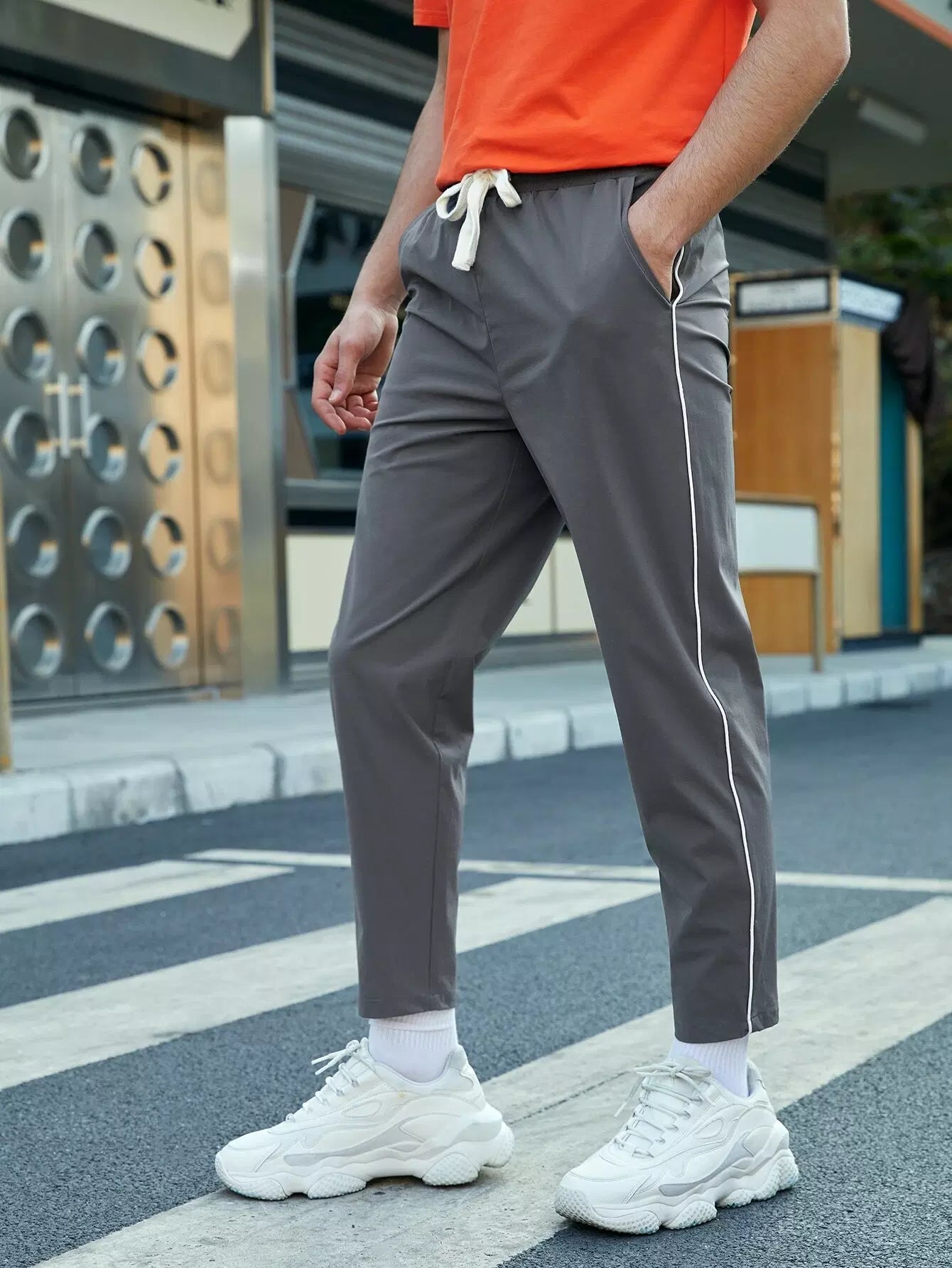 بنطلون رجالي برباط خصر برباط على الخصر بلون مغاير