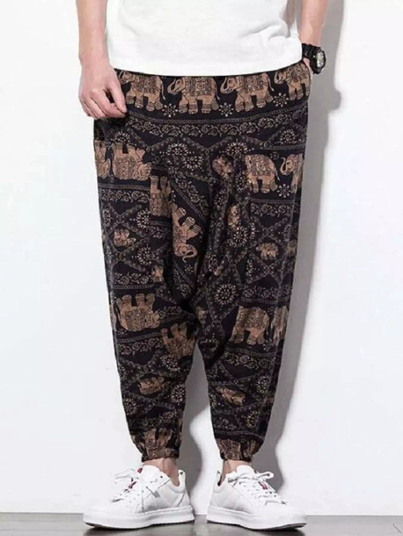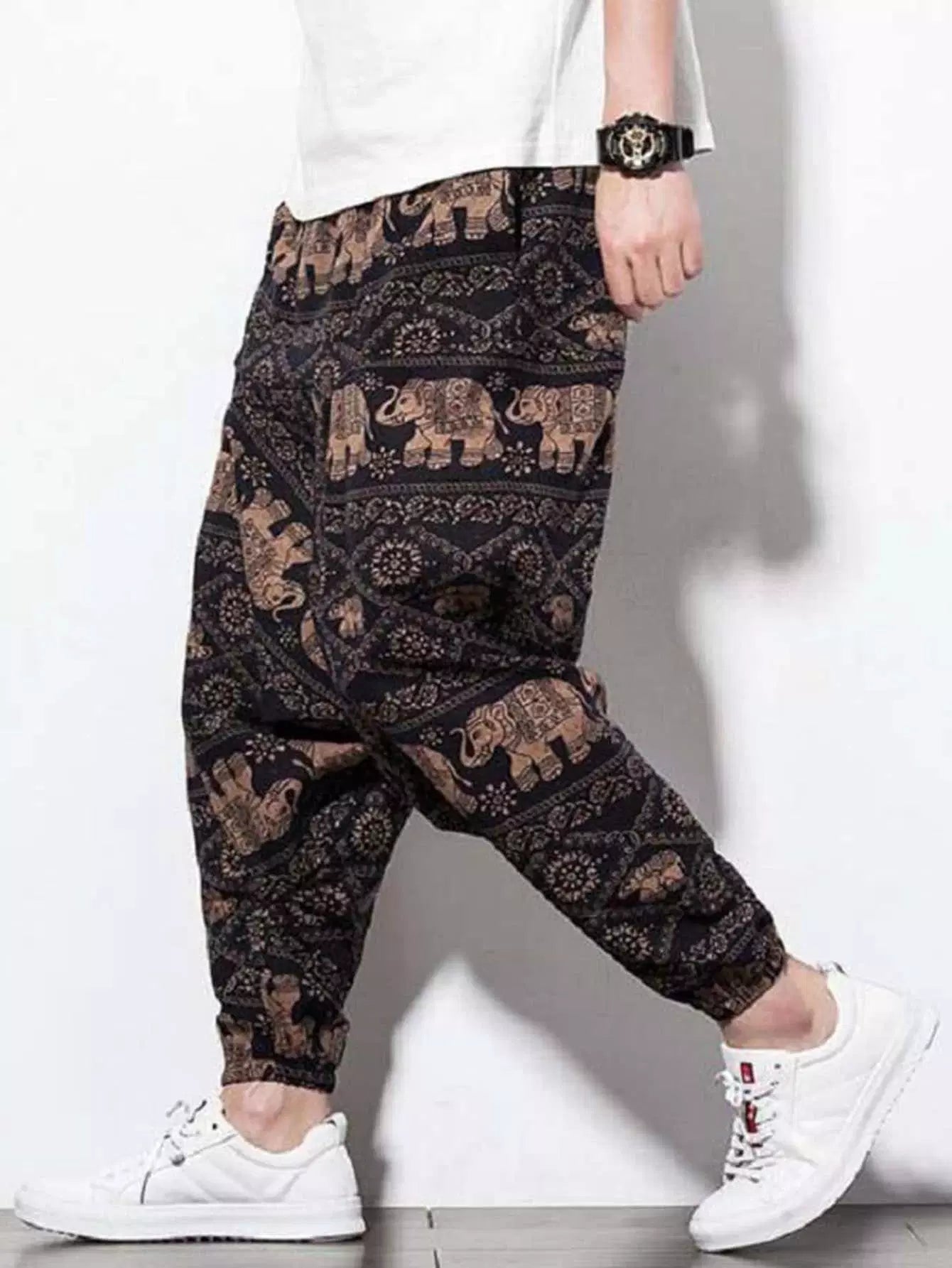 بنطلون رجالي بطبعة جيو منسدل منسدل الساقين