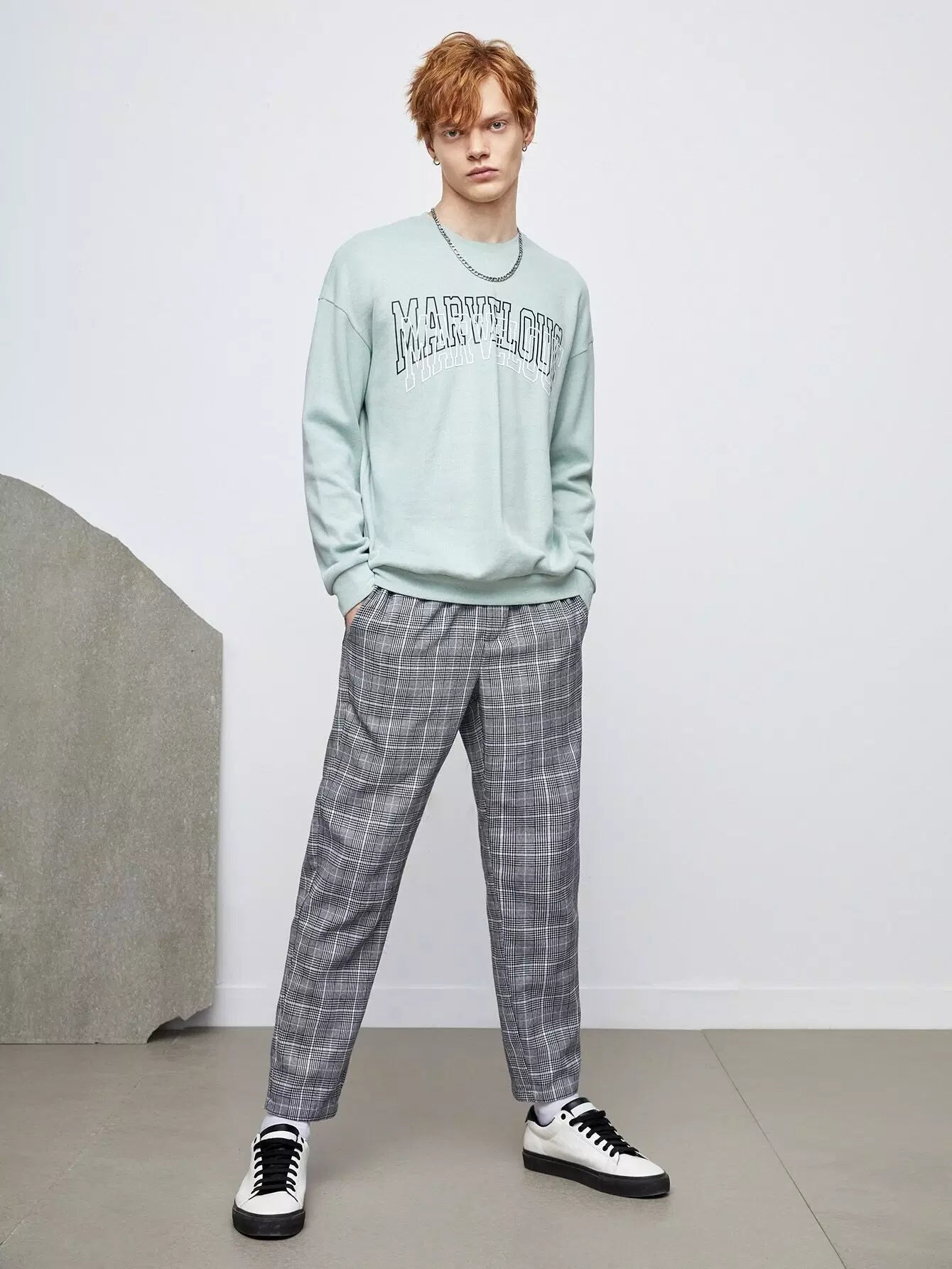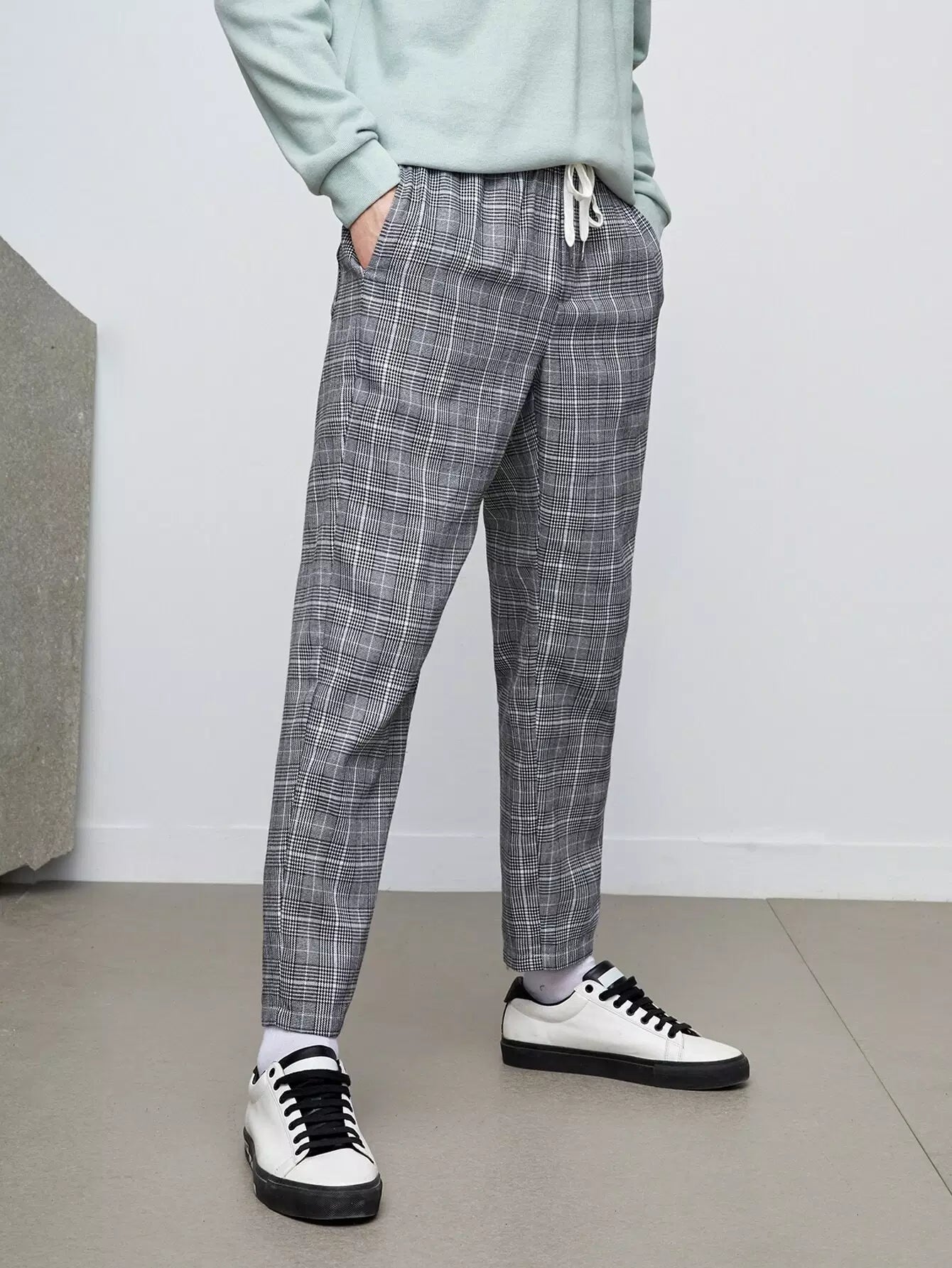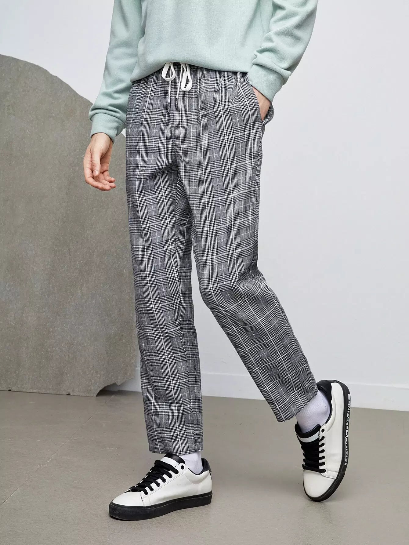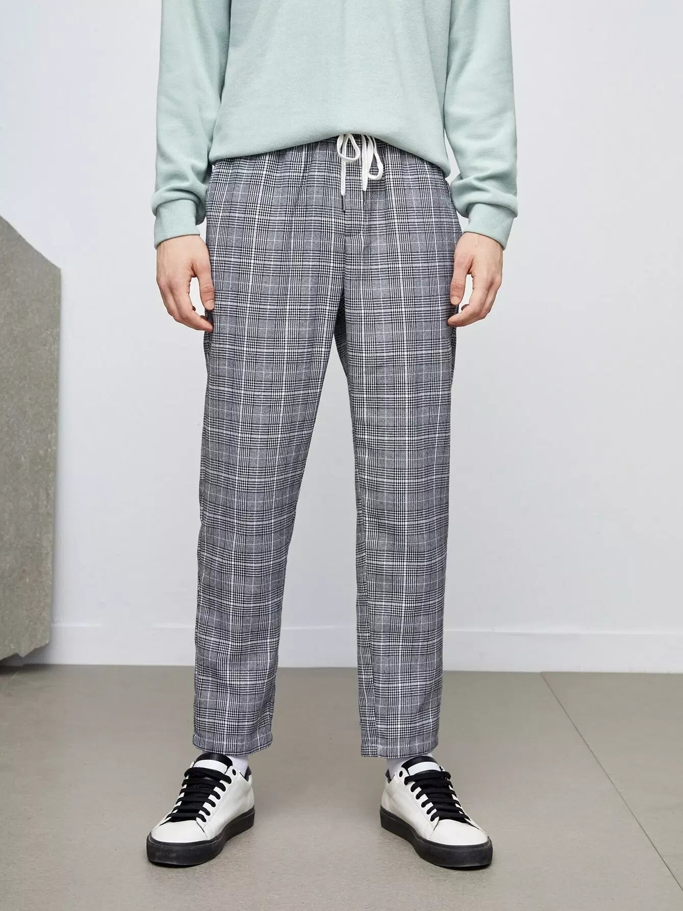 بنطلون رجالي منقوش بجيب مائل منقوش برباط خصر مائل