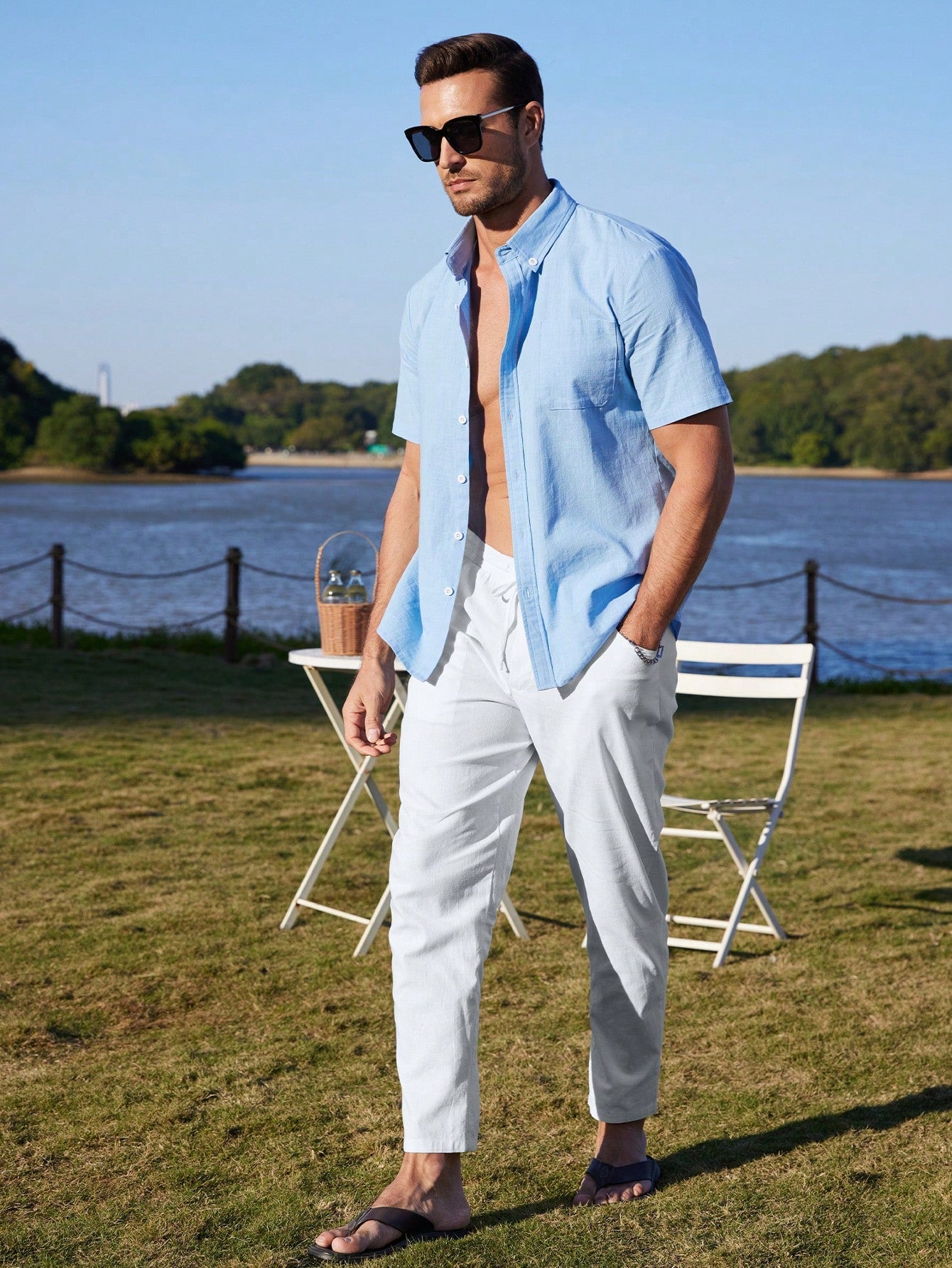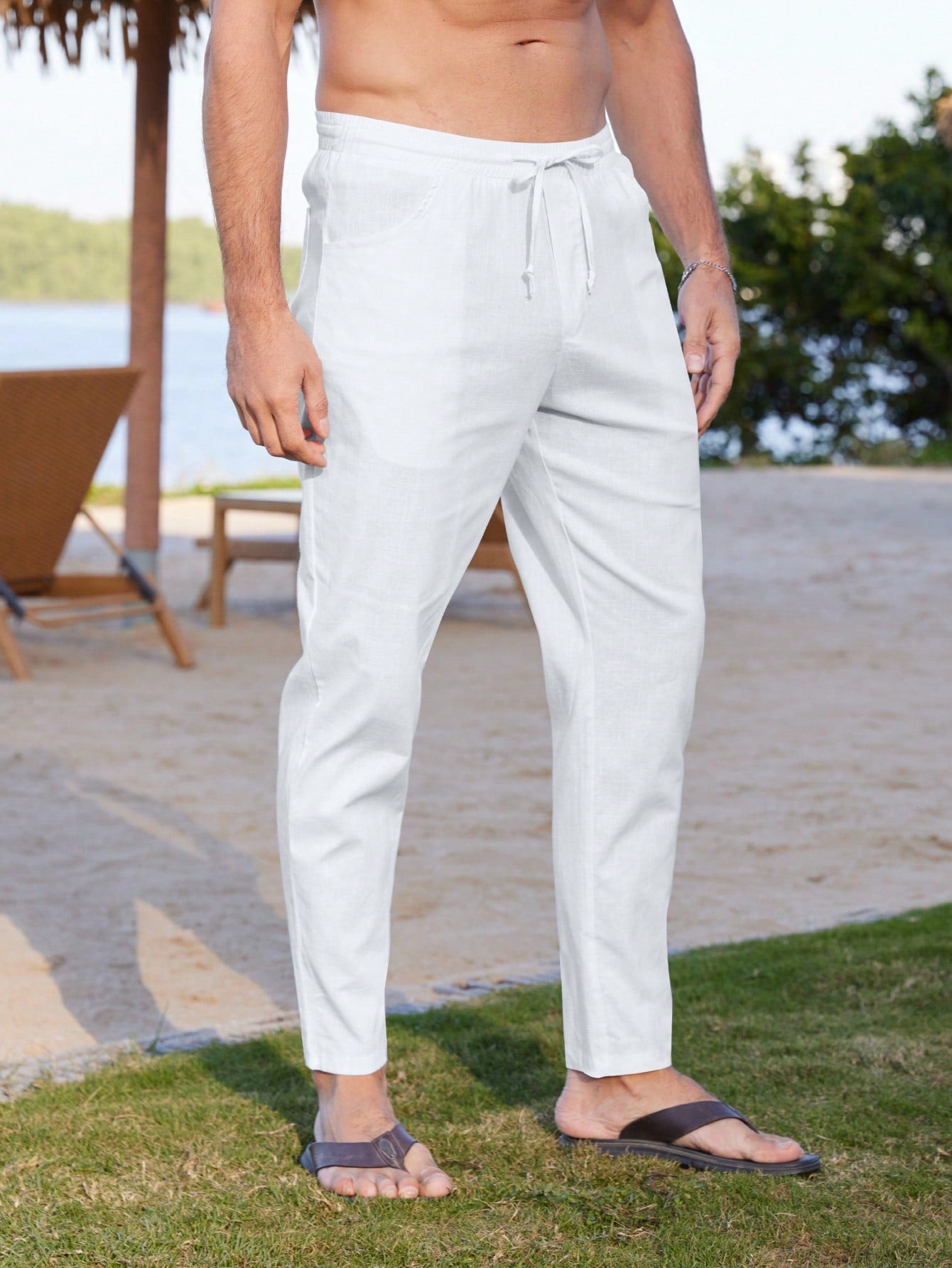 بنطلون رجالي فضفاض برباط قصير - بنطلون كاجوال مناسب لجميع الفصول