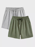 شورت رياضي قصير بخصر مربوط للرجال 2 قطعة