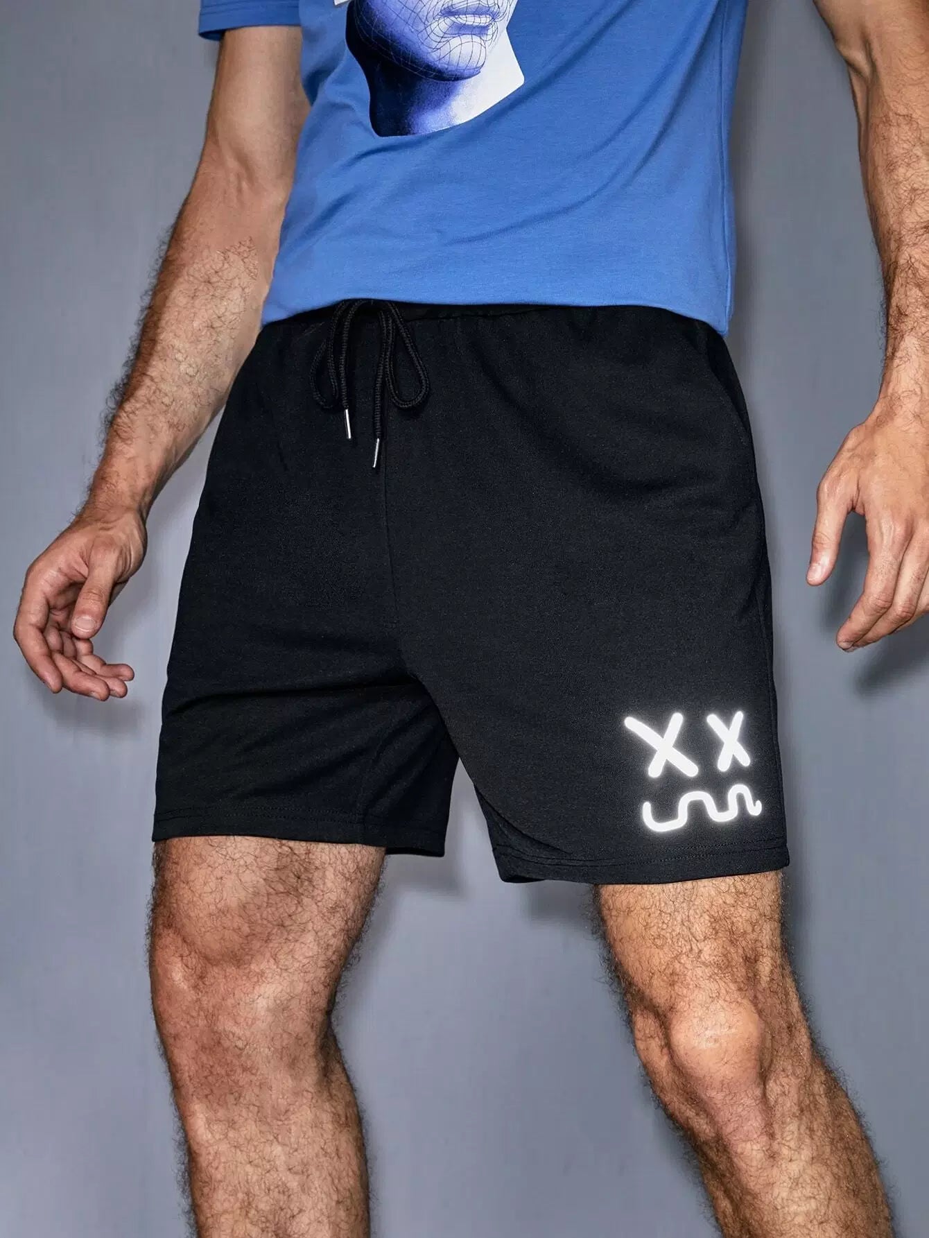 شورت رياضي رجالي برباط خصر عاكس برسومات كرتونية عاكسة للرجال