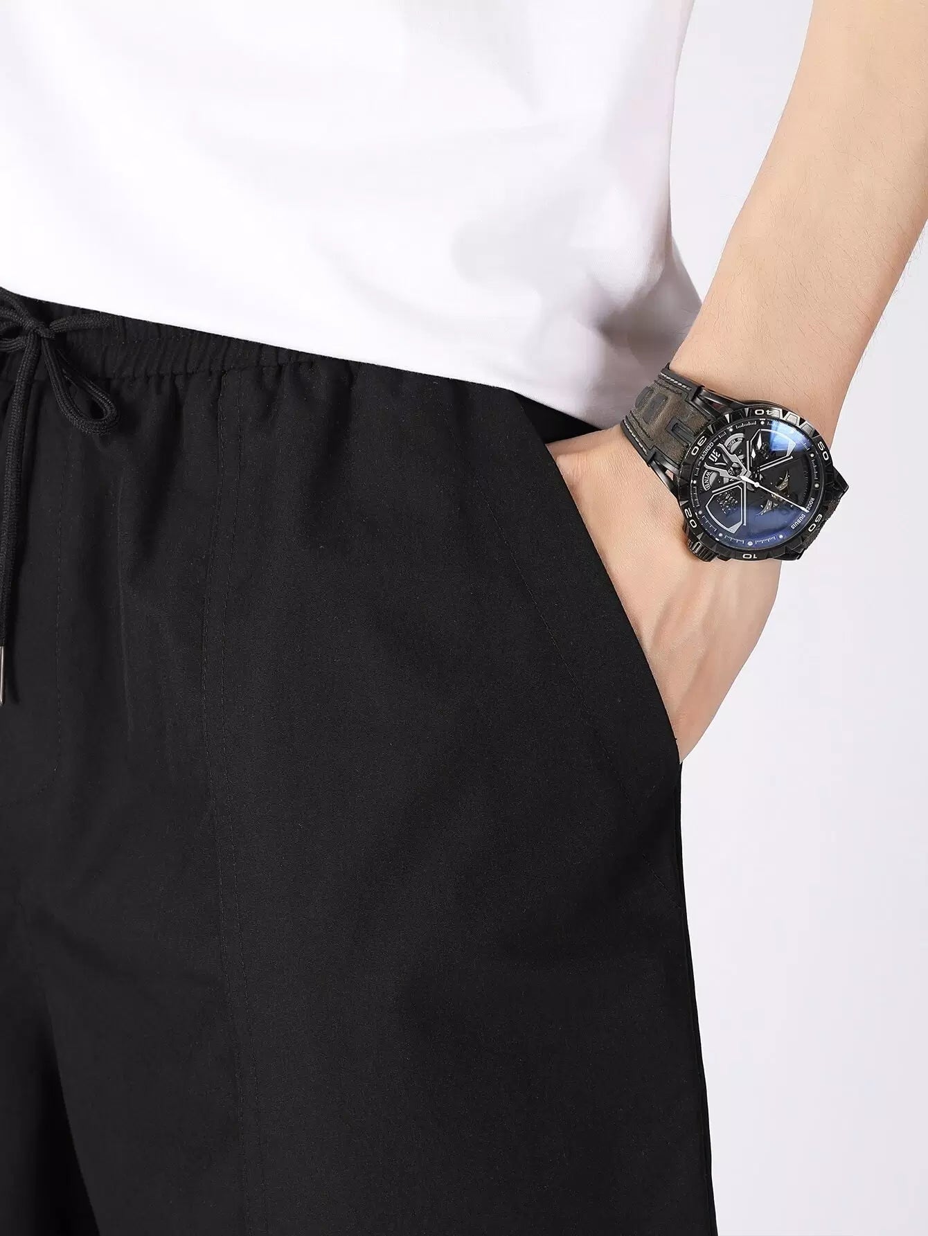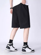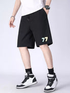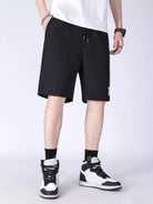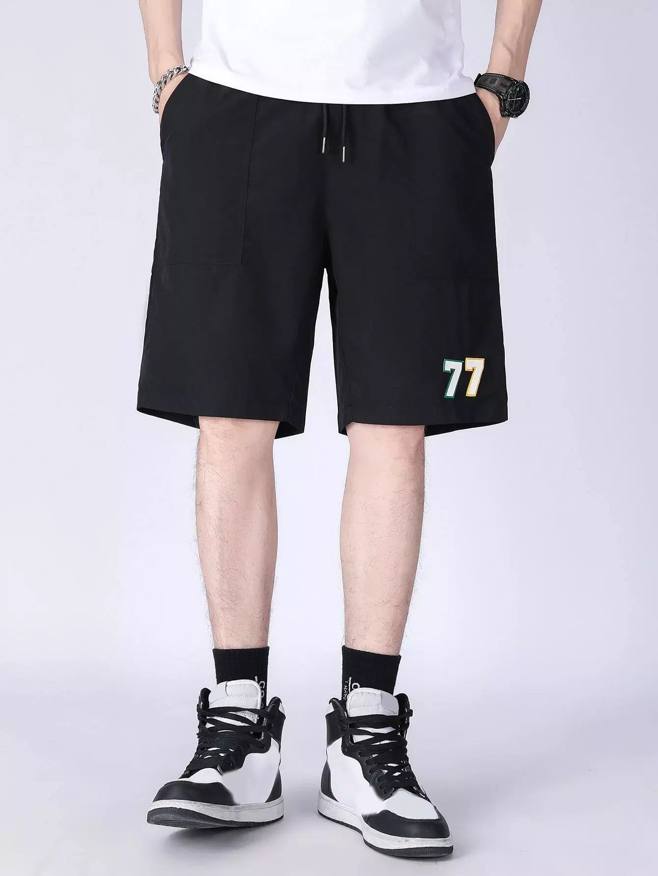 شورت رجالي بتفاصيل مرقعة ورباط على الخصر