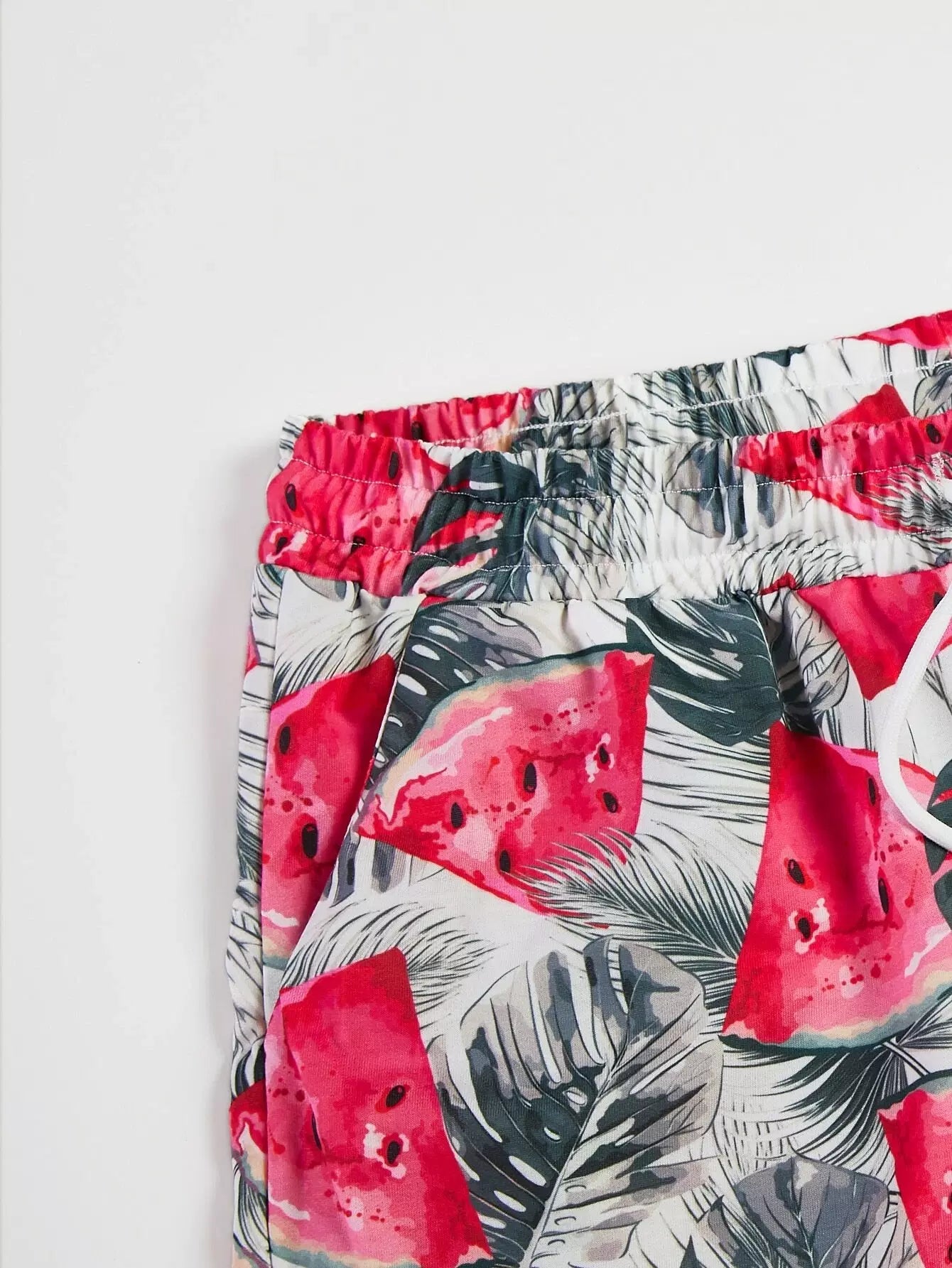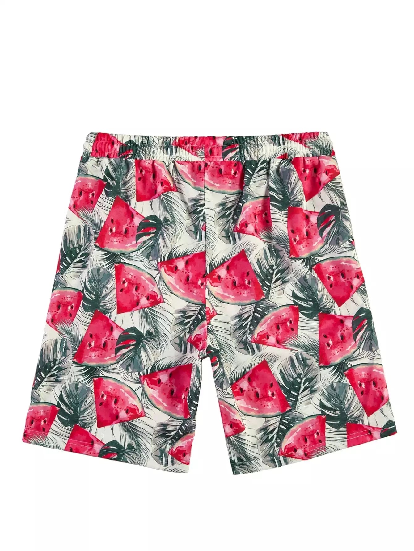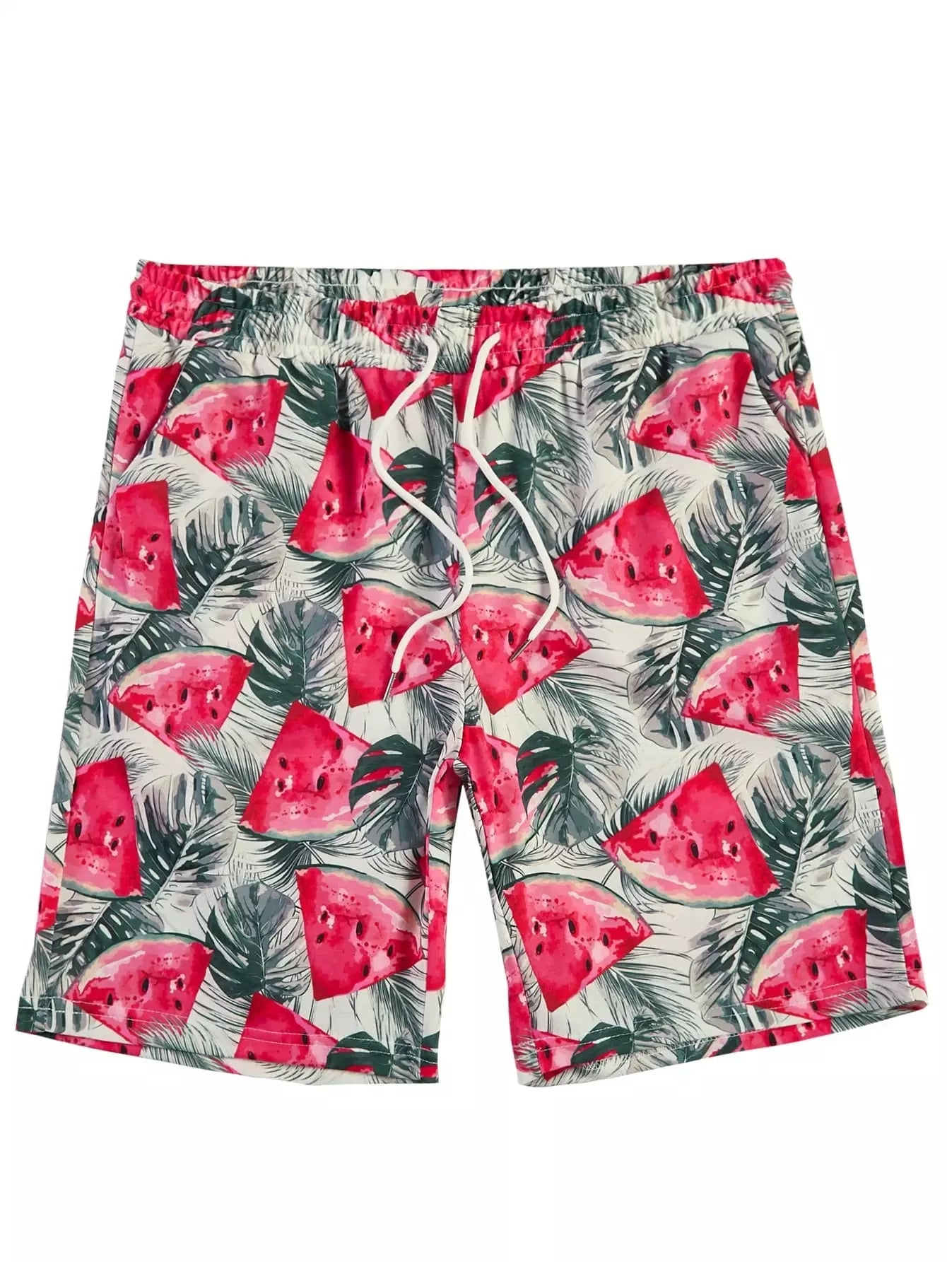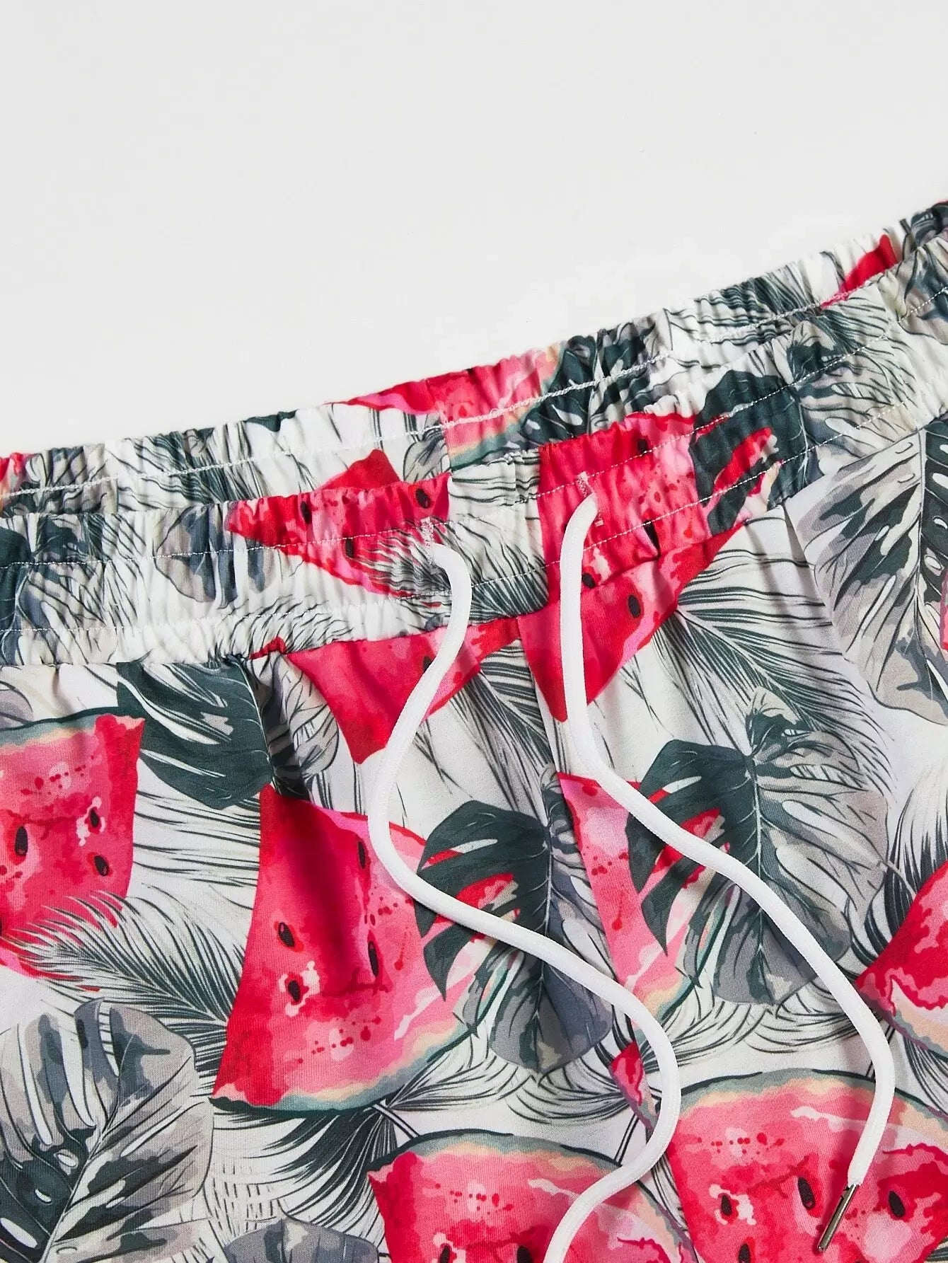 شورت رجالي بطبعة البطيخ والمناطق الاستوائية برباط على الخصر