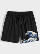 شورت رياضي رجالي بطبعة أمواج مطبوع برباط على الخصر