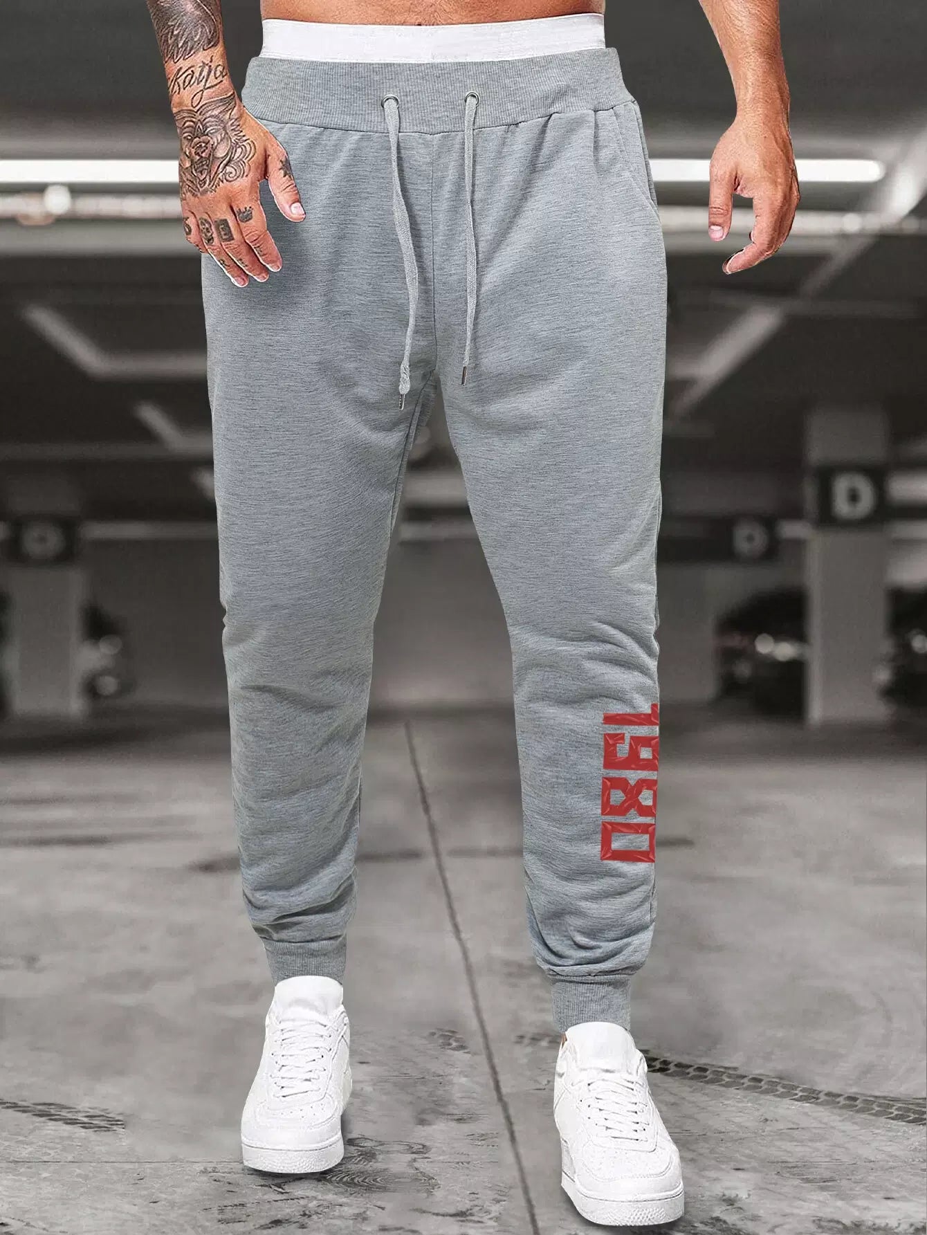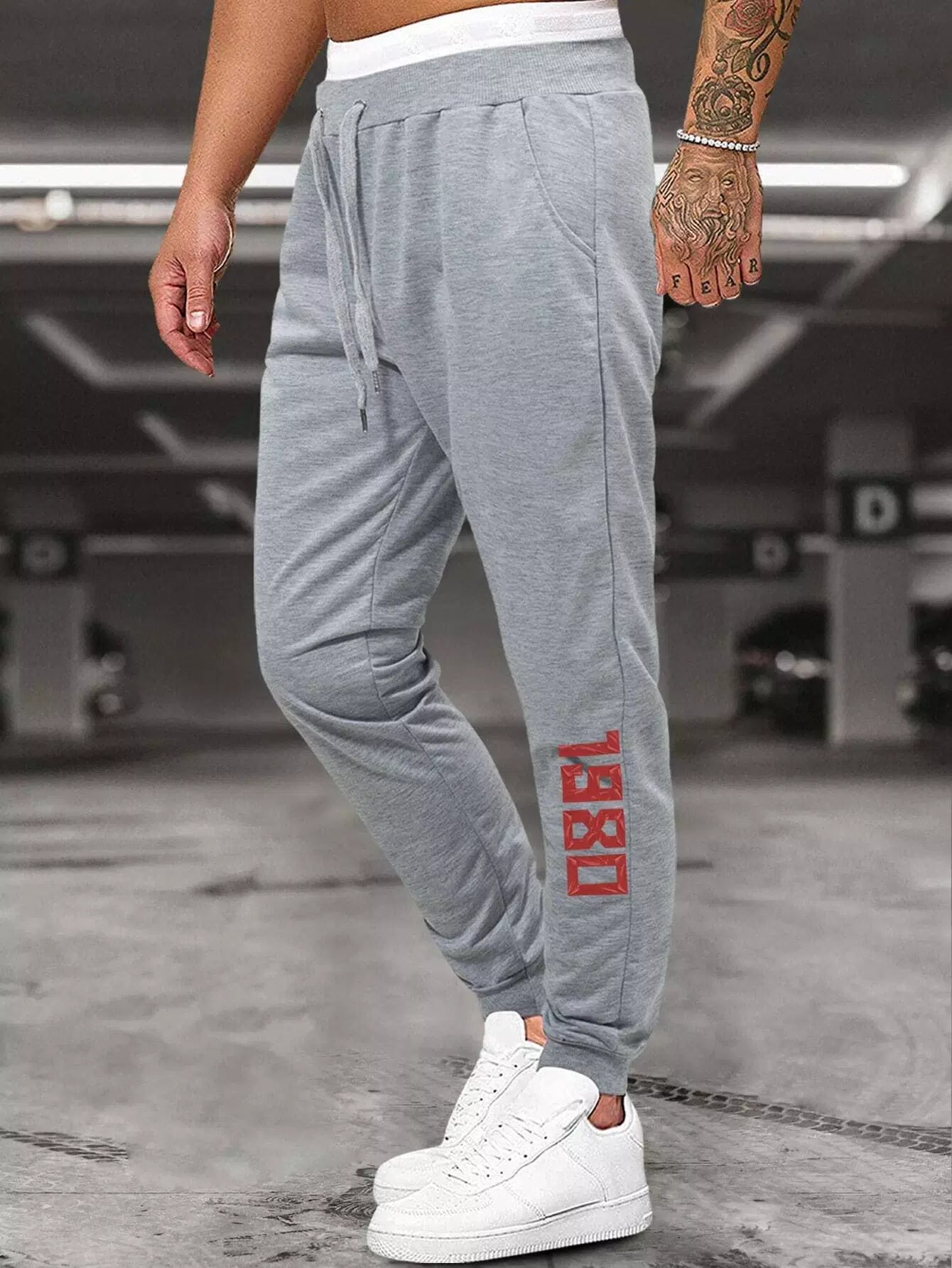 الرجال - بنطال رياضي بخصر برباط جرافيك للرجال