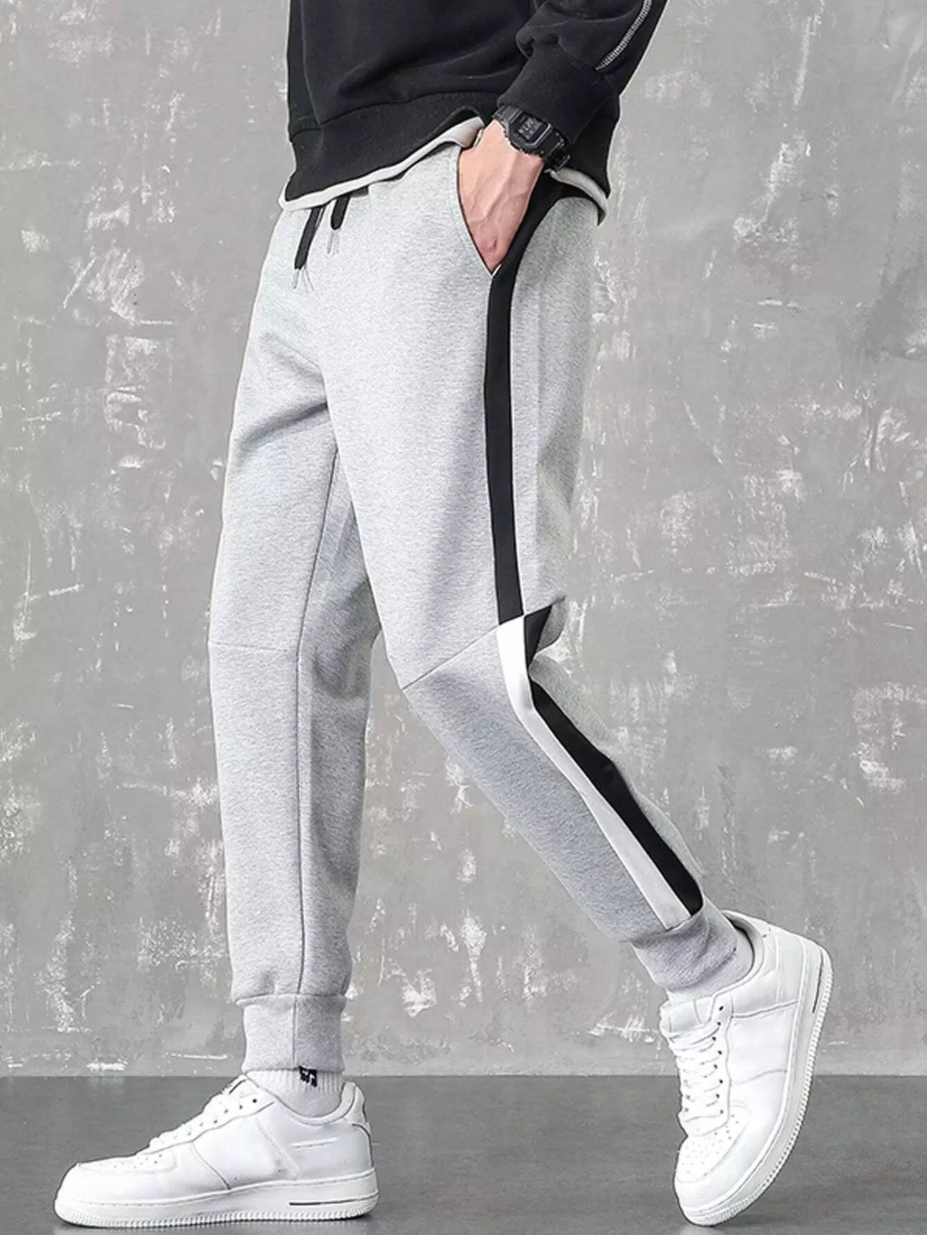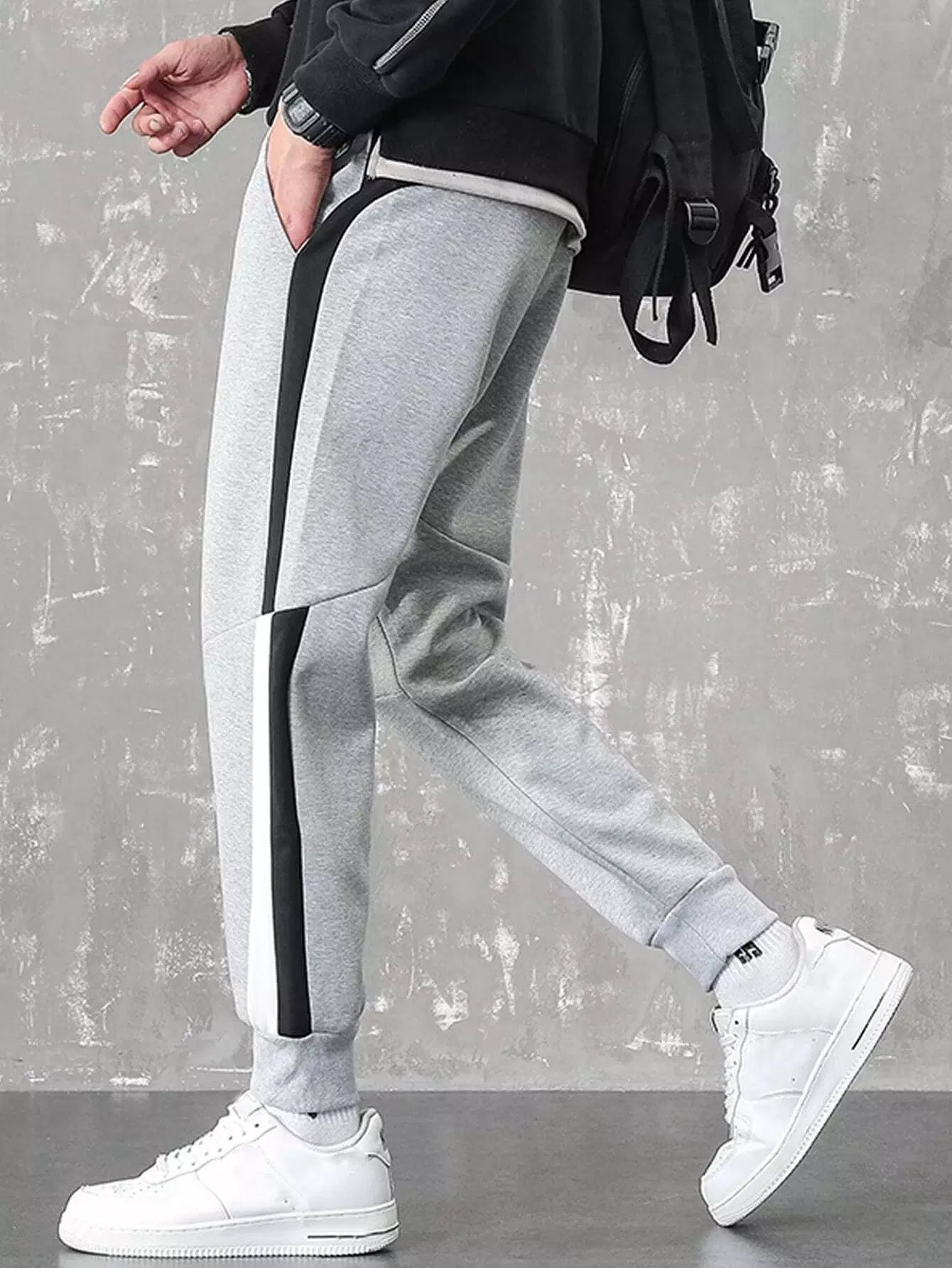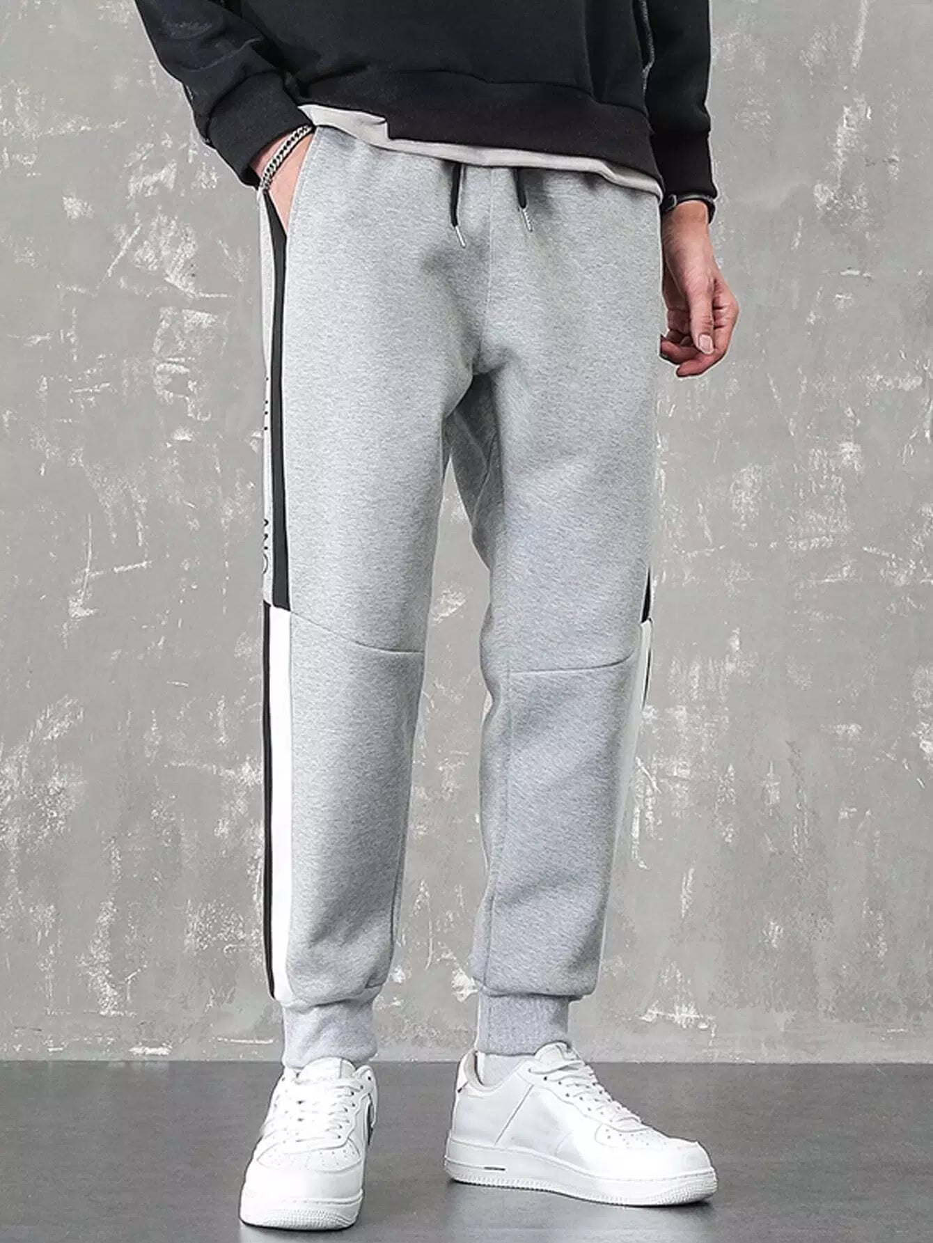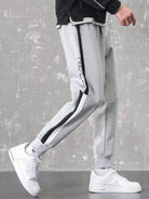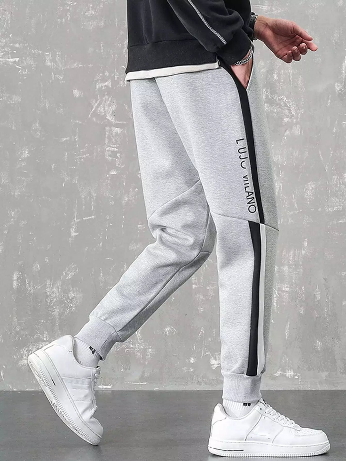 بنطال رياضي رجالي برباط على الخصر مزين بحروف جرافيكية