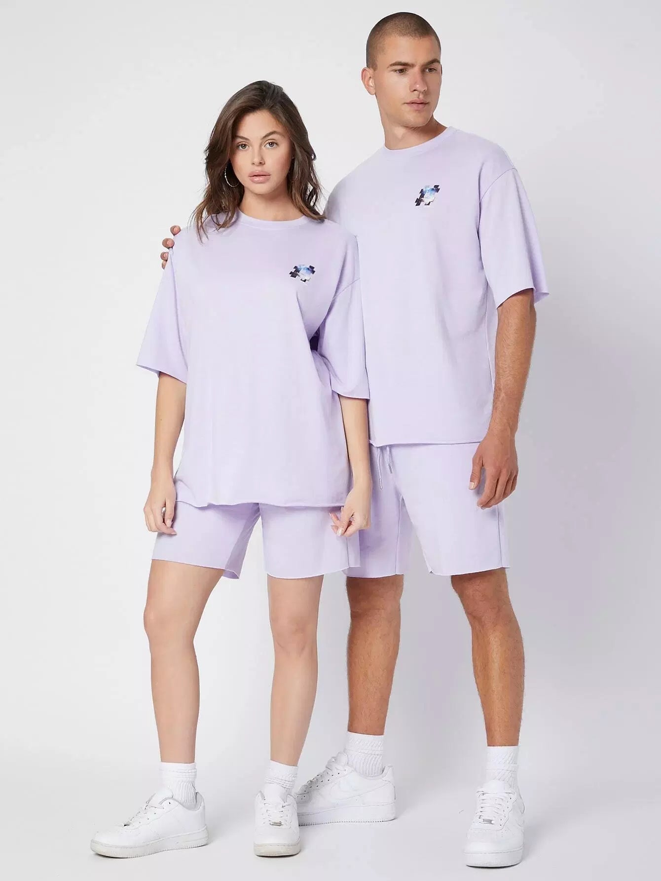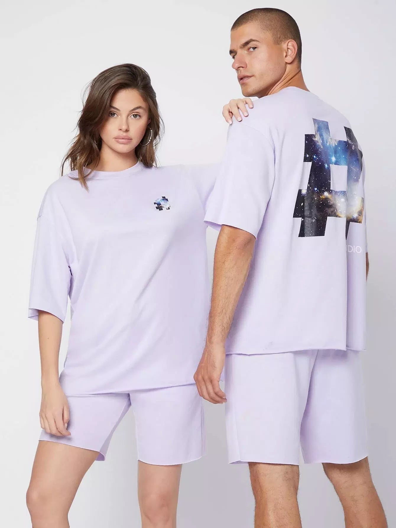 طقم مكون من بلوزة واحدة وشورت واحد بطبعة جرافيكية من المجرة